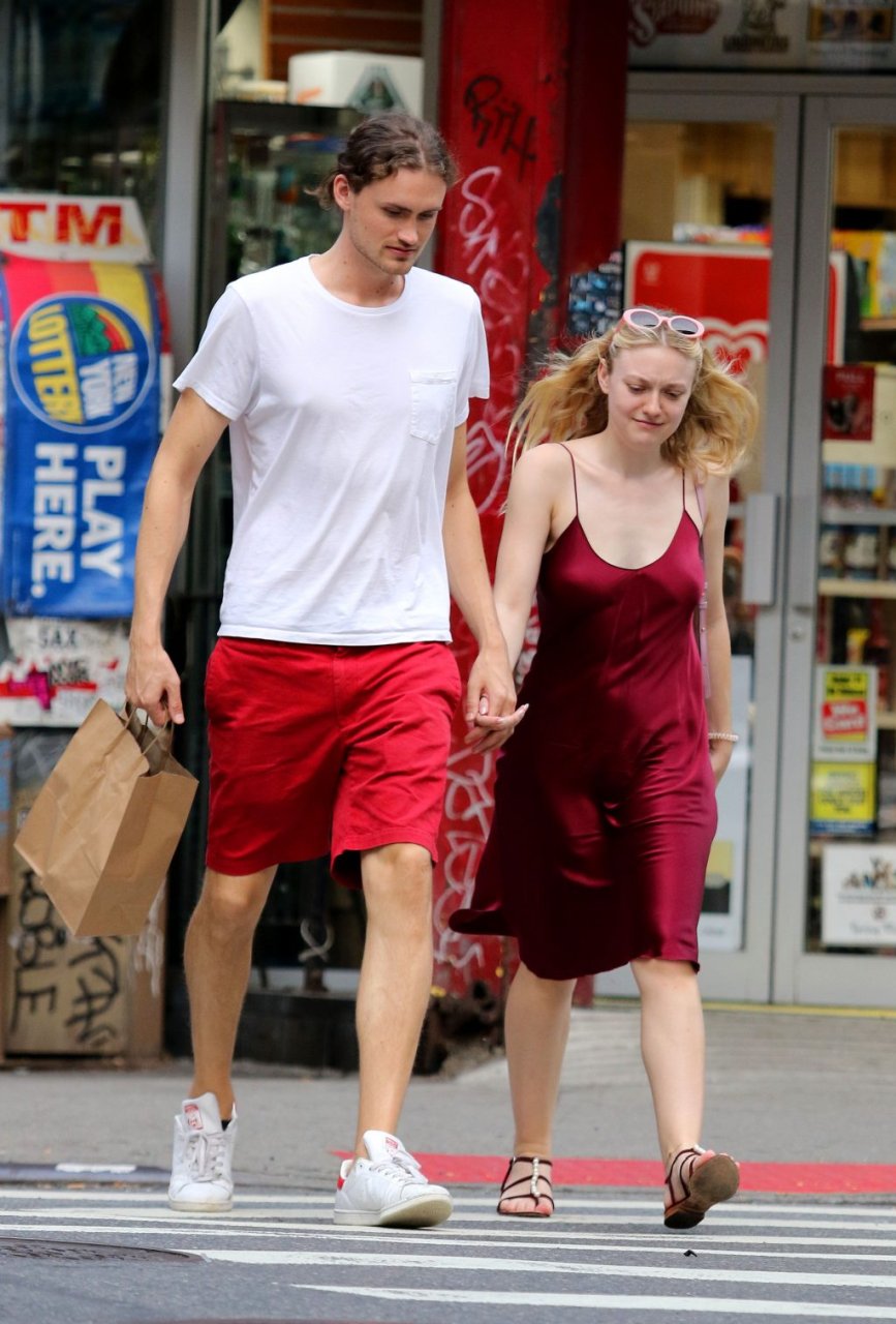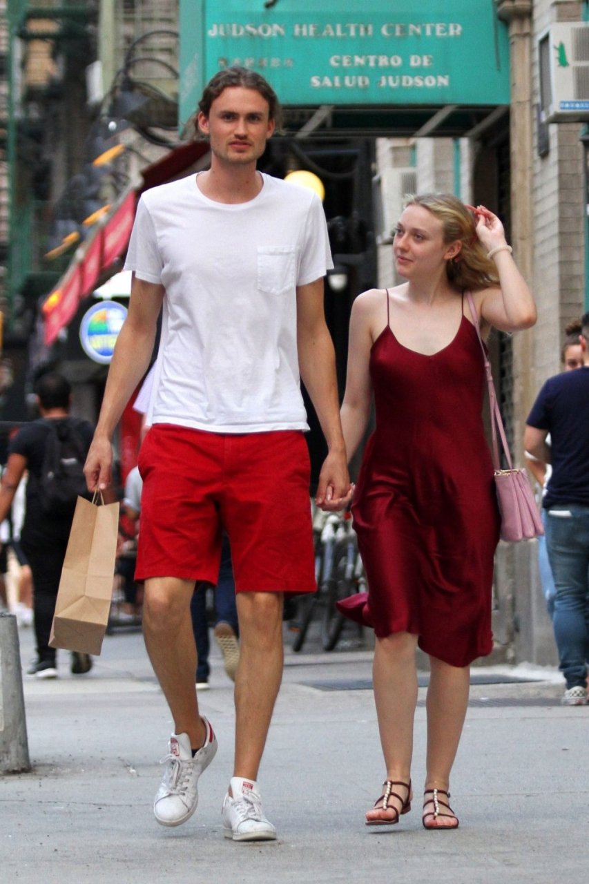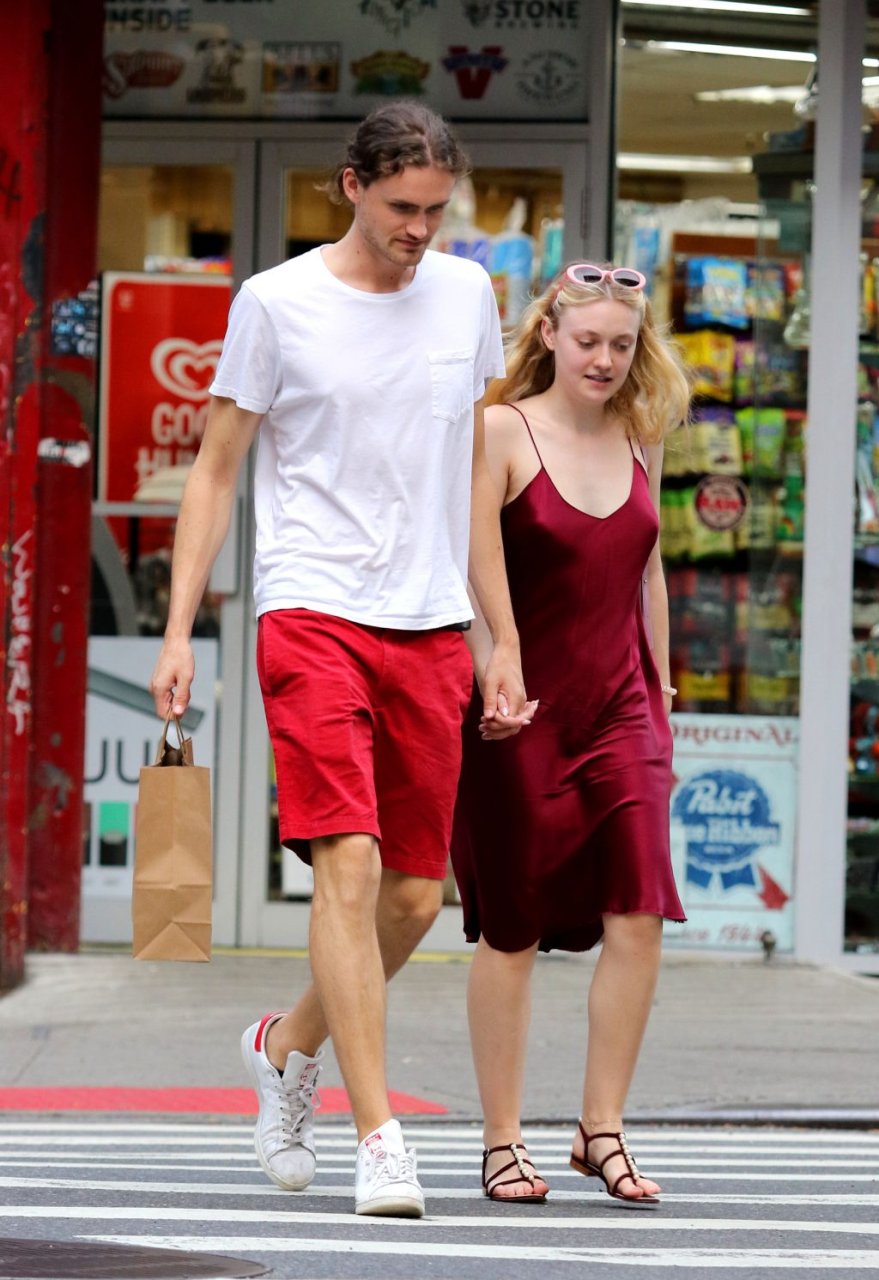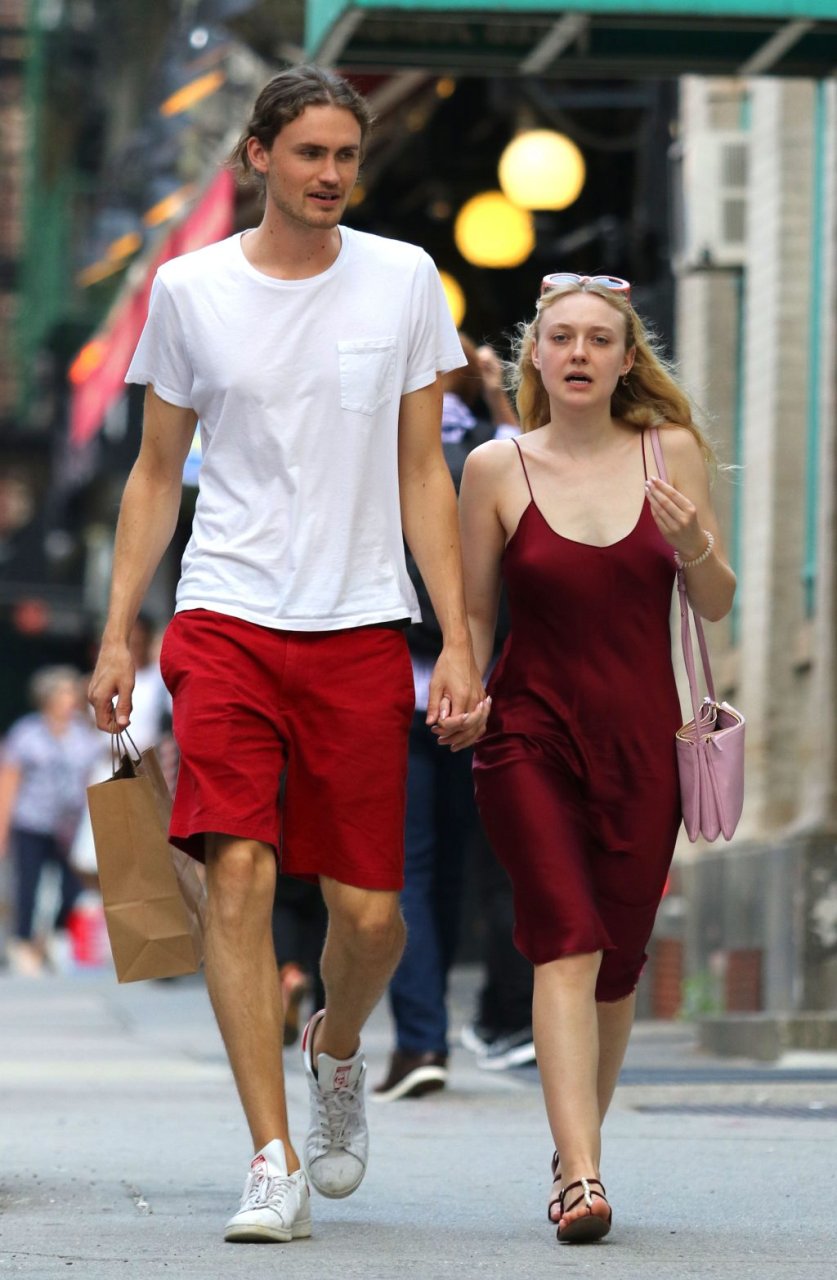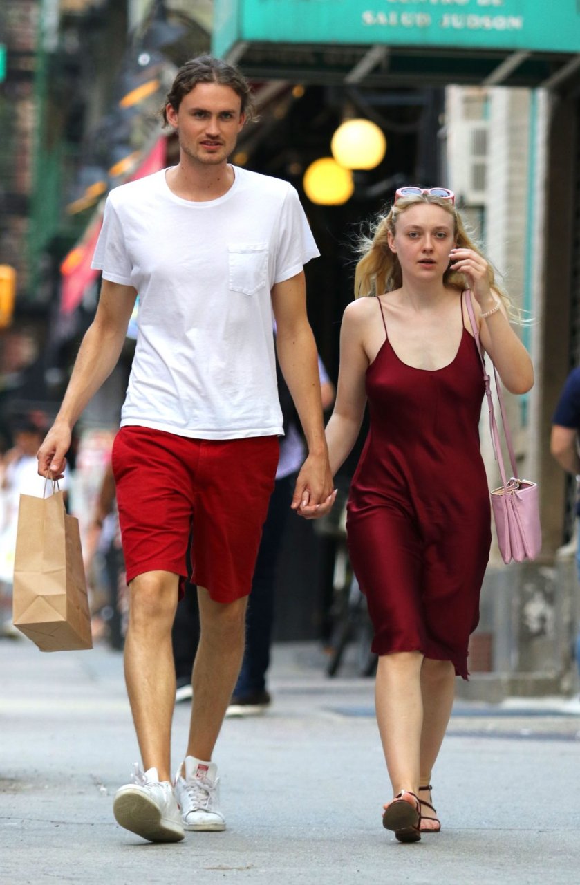 Актриса Дакота Фаннинг и её парень Генри Фрай держатся за руки во время романтической прогулки после ужина в районе Сохо в Манхэттене, 27.08.2018.