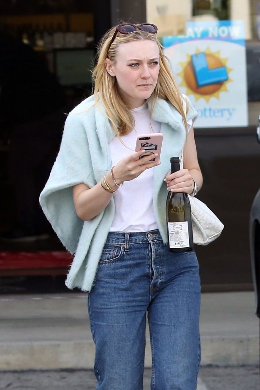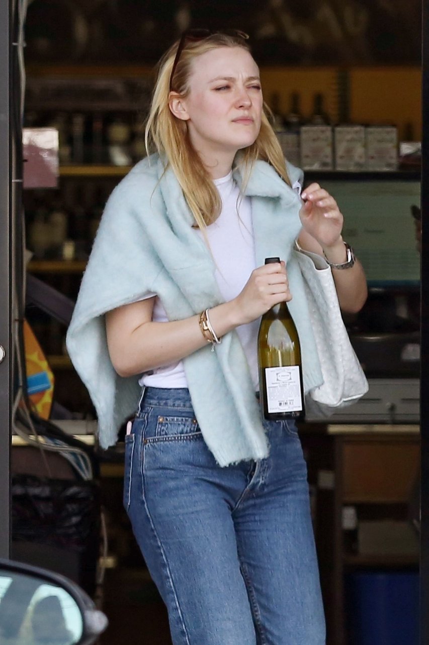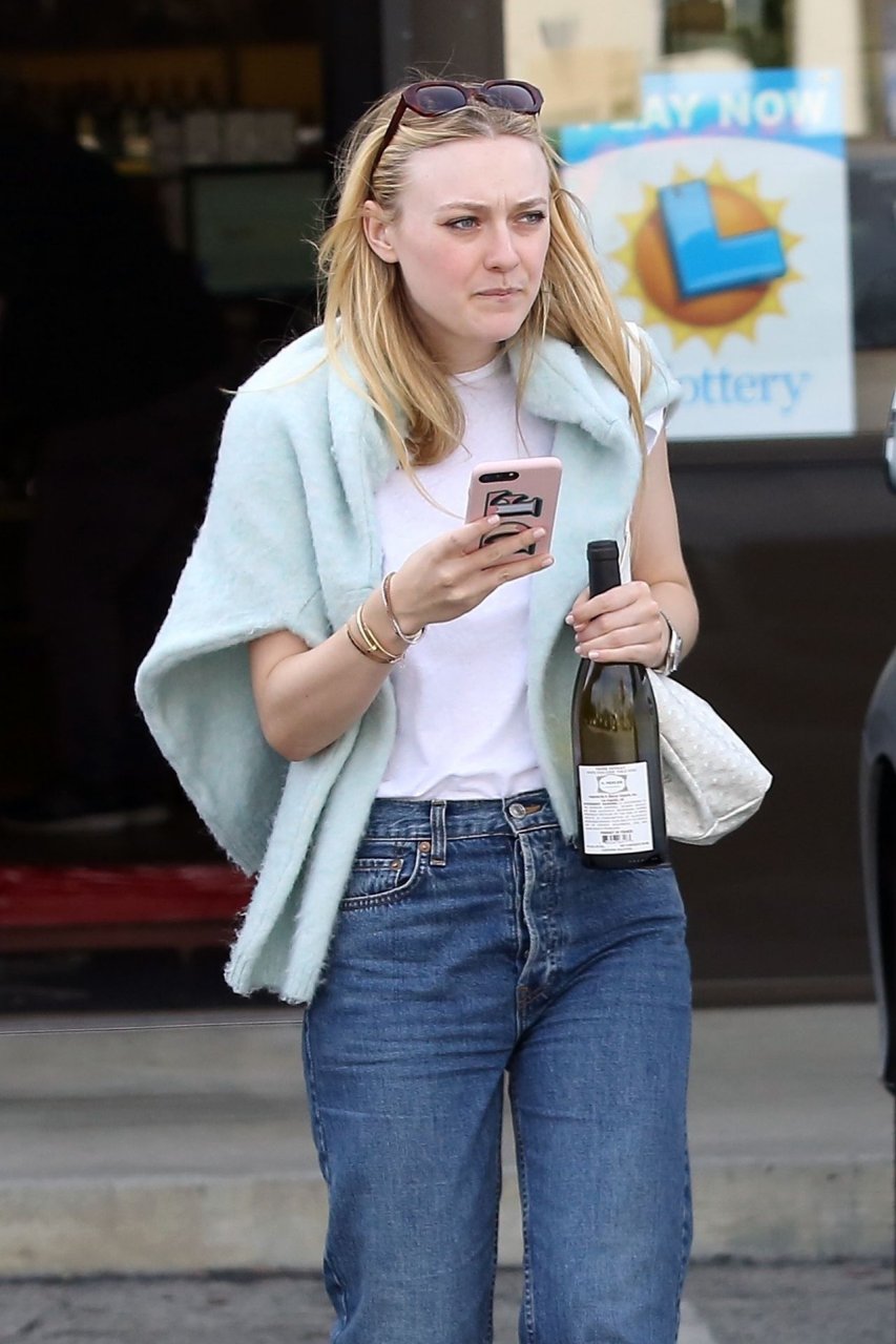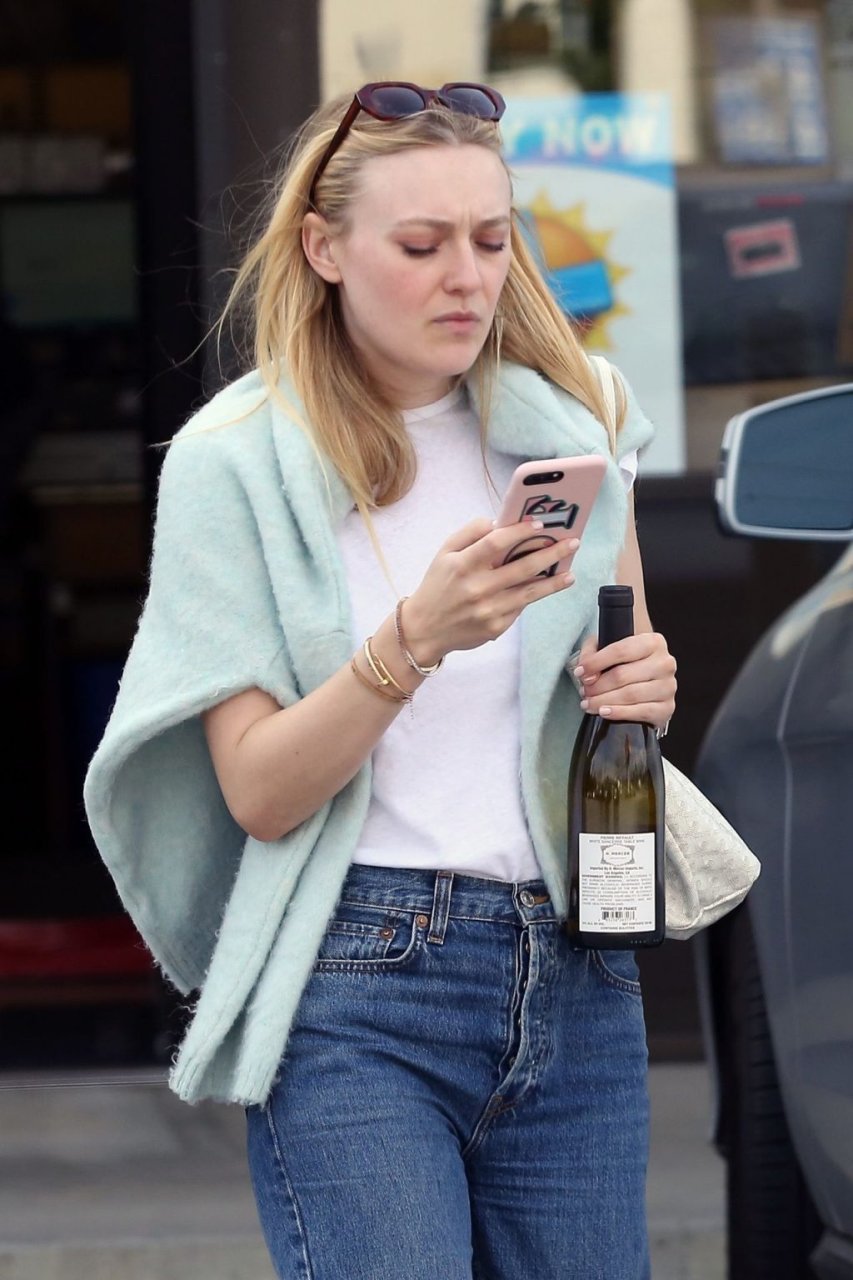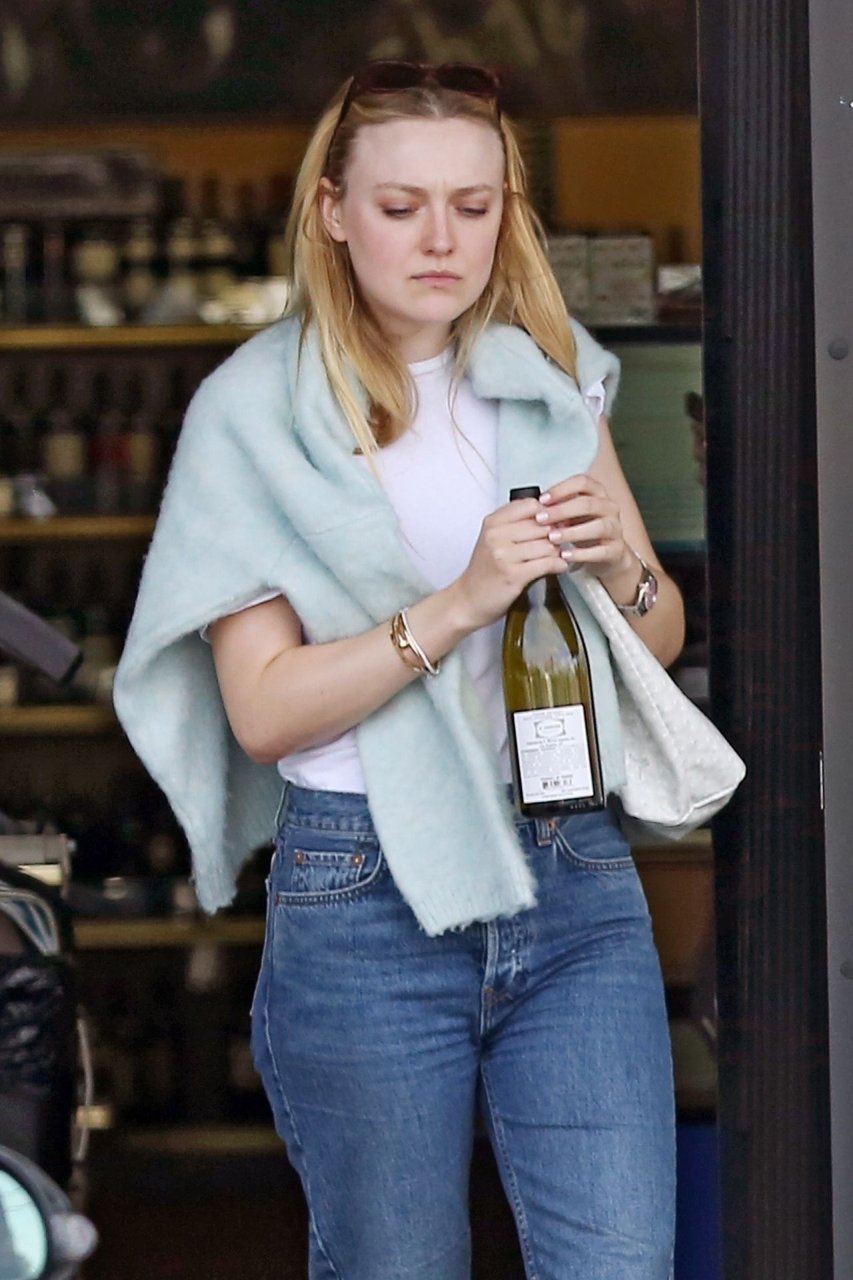 Актриса Дакота Фаннинг замечена с подрядчиком на объекте недвижимости в Толука-Лейк, 03.04.2019. Актриса останавливается, чтобы выпить немного вина, прежде чем отправиться домой. Возможно, стоит устроить праздничный тост?