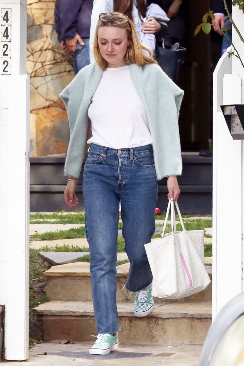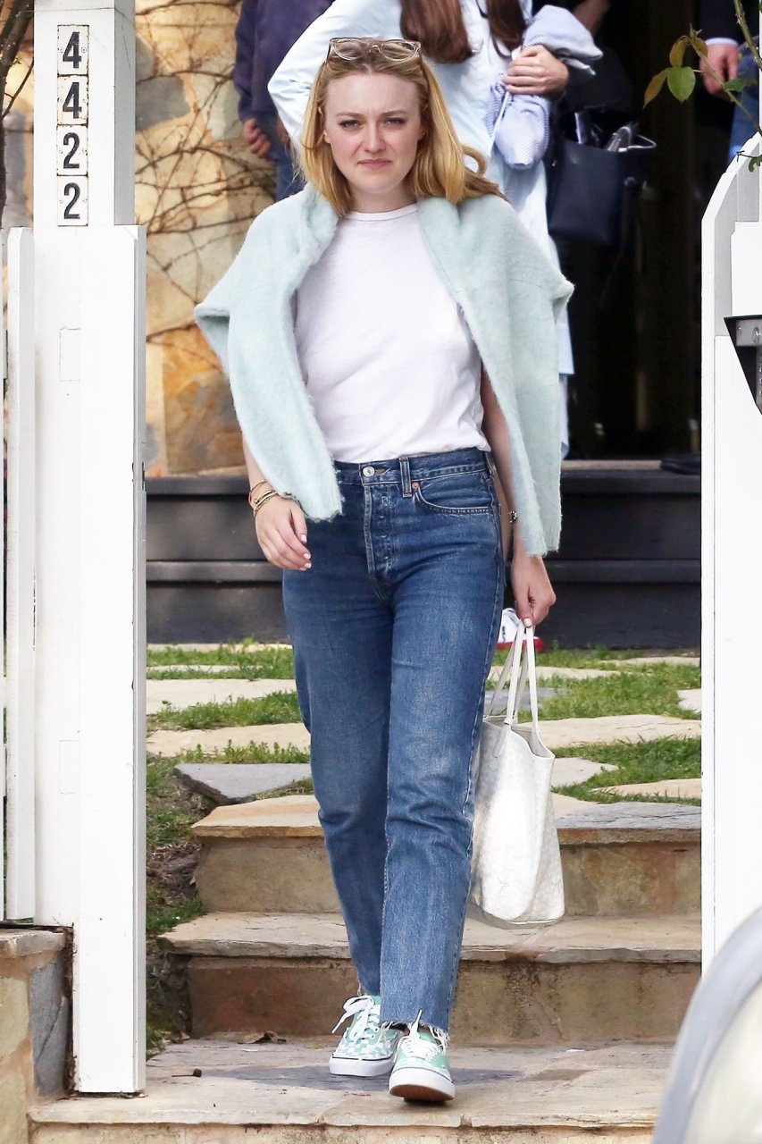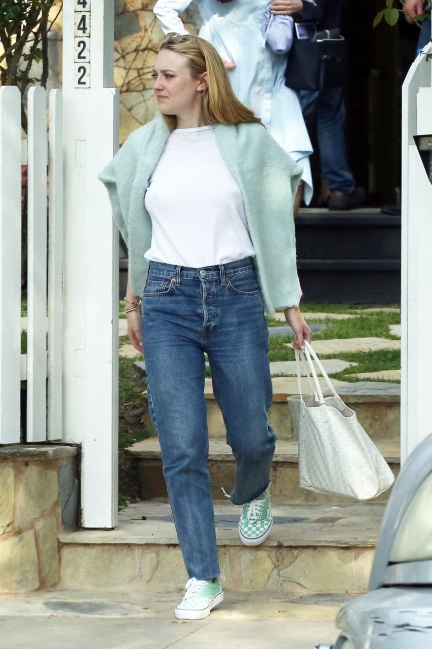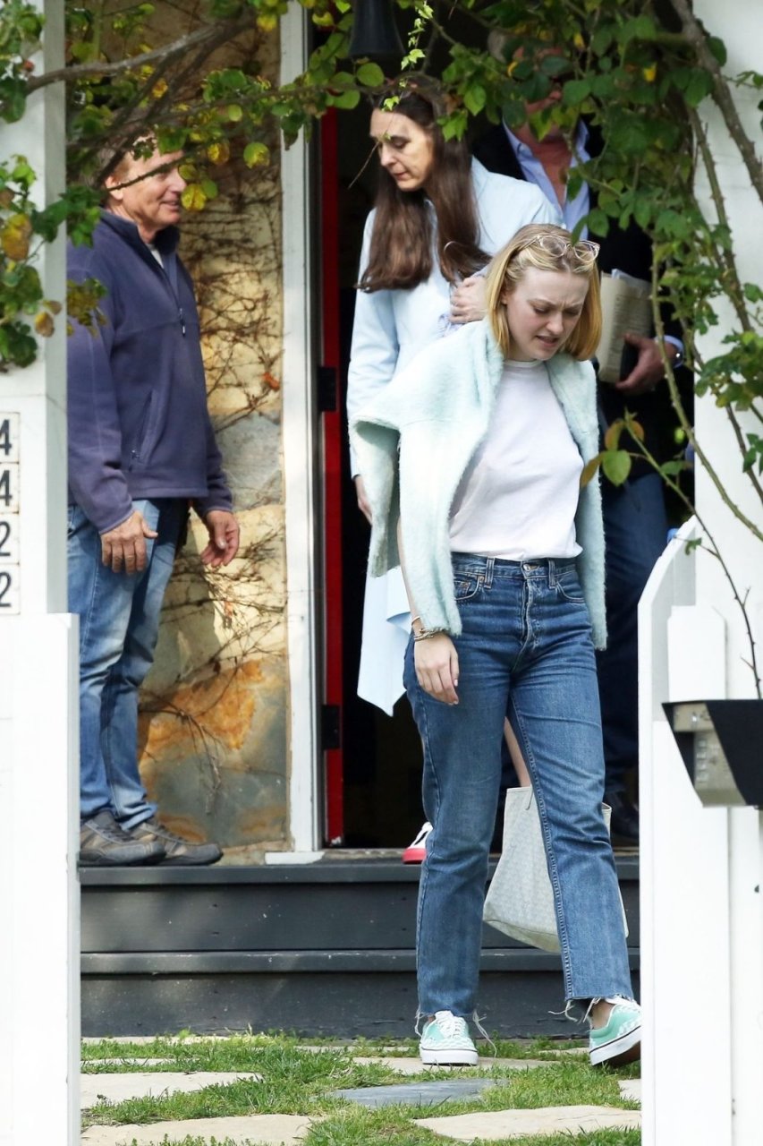 Актриса Дакота Фаннинг замечена с подрядчиком на объекте недвижимости в Толука-Лейк, 03.04.2019. Актриса останавливается, чтобы выпить немного вина, прежде чем отправиться домой. Возможно, стоит устроить праздничный тост?