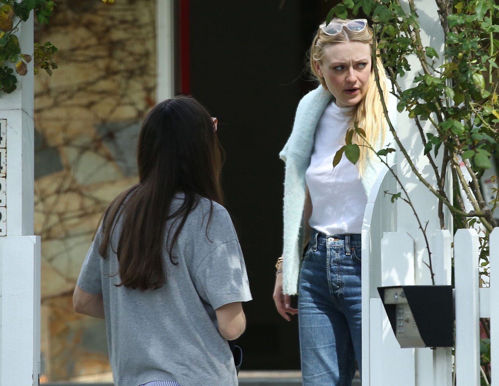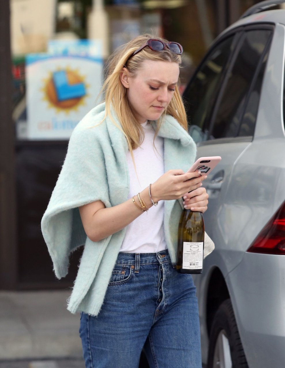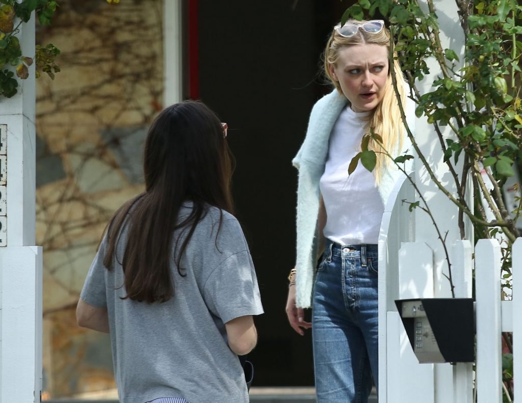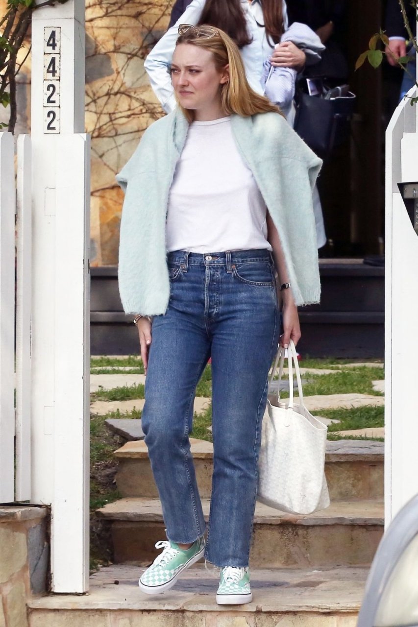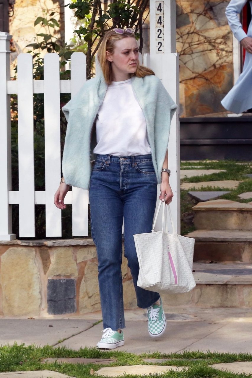 Актриса Дакота Фаннинг замечена с подрядчиком на объекте недвижимости в Толука-Лейк, 03.04.2019. Актриса останавливается, чтобы выпить немного вина, прежде чем отправиться домой. Возможно, стоит устроить праздничный тост?