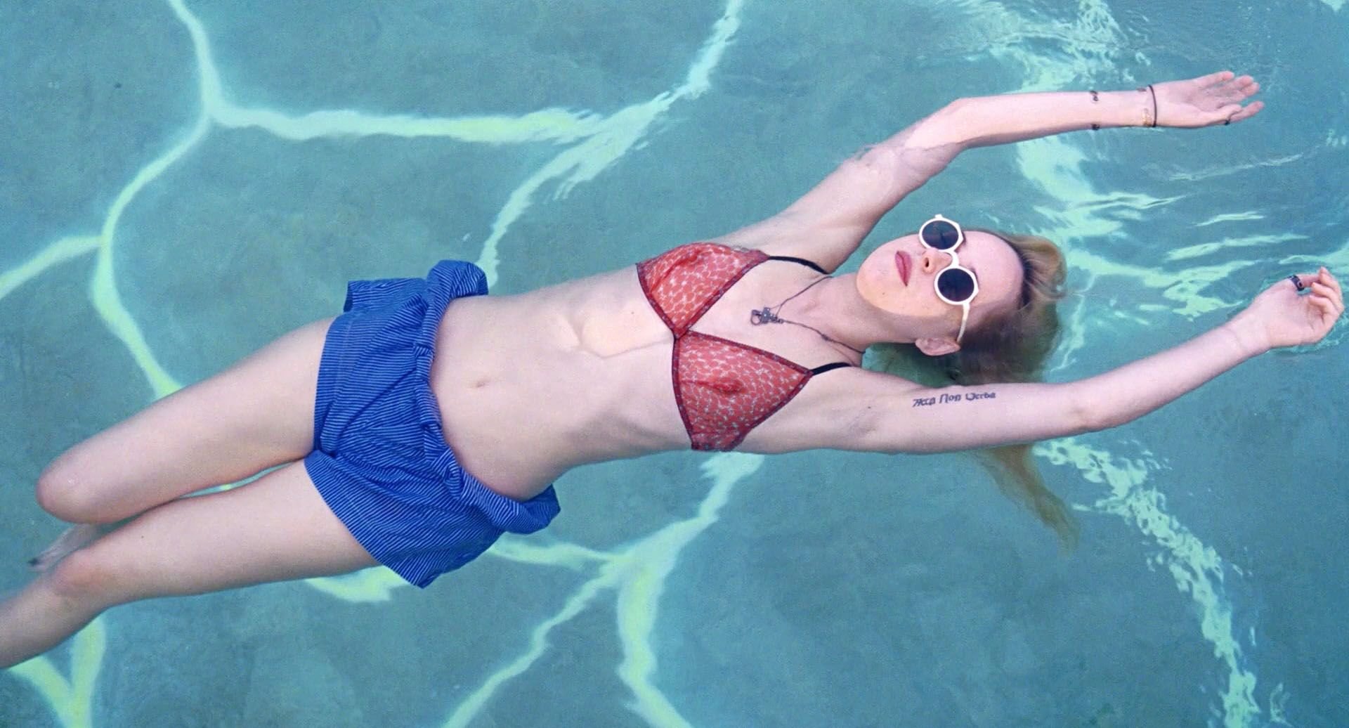Верх бикини на Дакоте Джонсон у бассейна.
