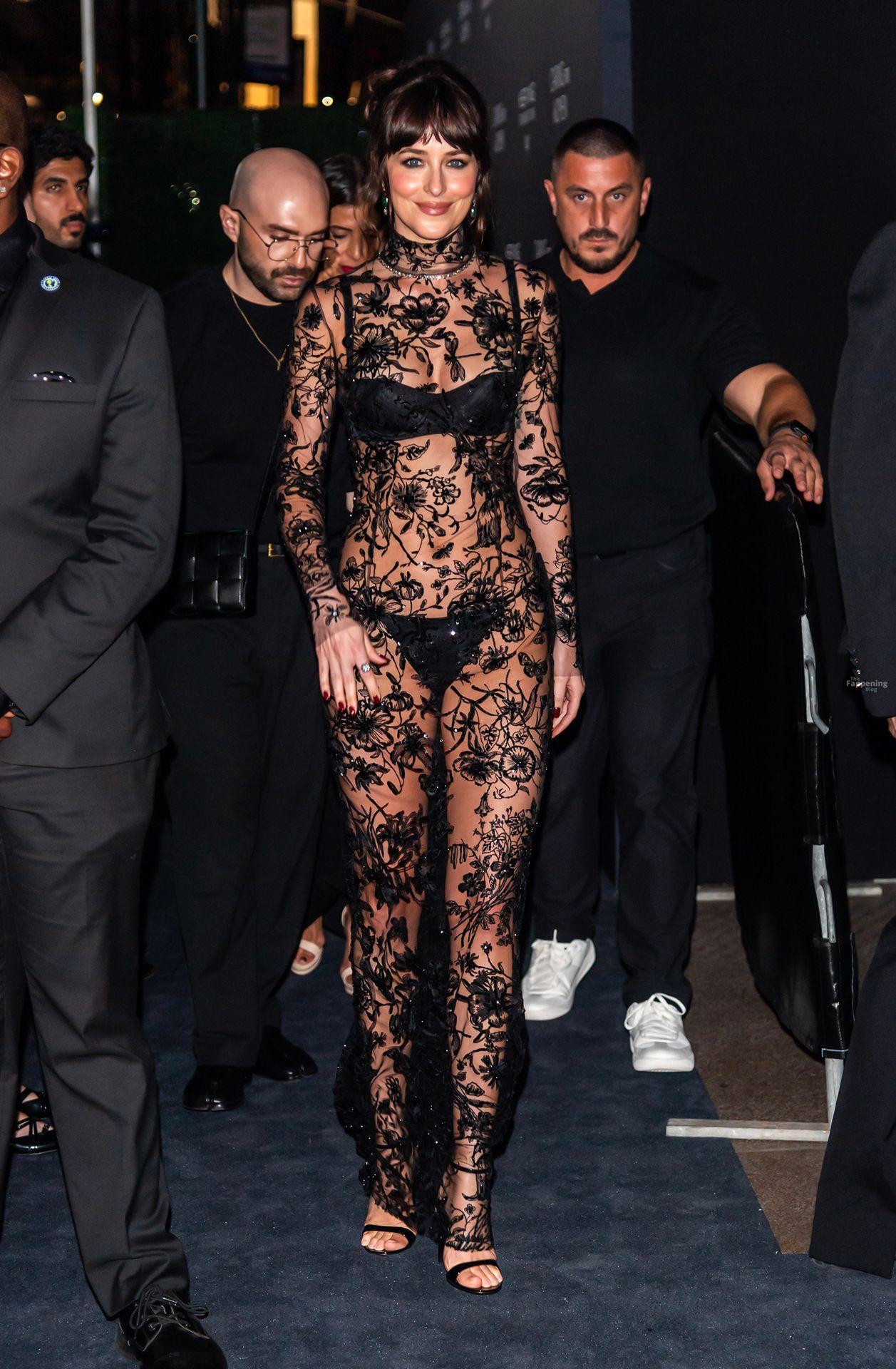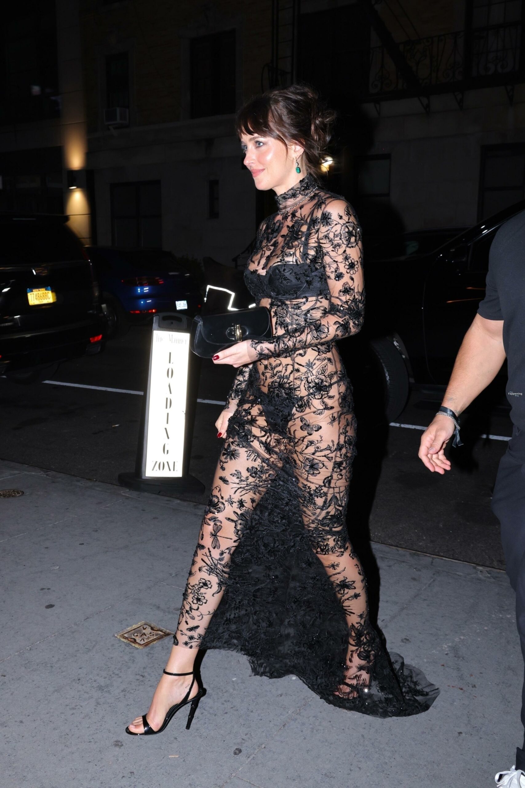 Посмотрите, как Дакота Джонсон демонстрирует свою грудь, талию и ягодицы в прозрачном кружевном платье, не оставляя ничего на воображение на ужине Фонда Керинга по поддержке женщин в Нью-Йорке 11 сентября 2025 года. Бронкс, Нью-Йорк.