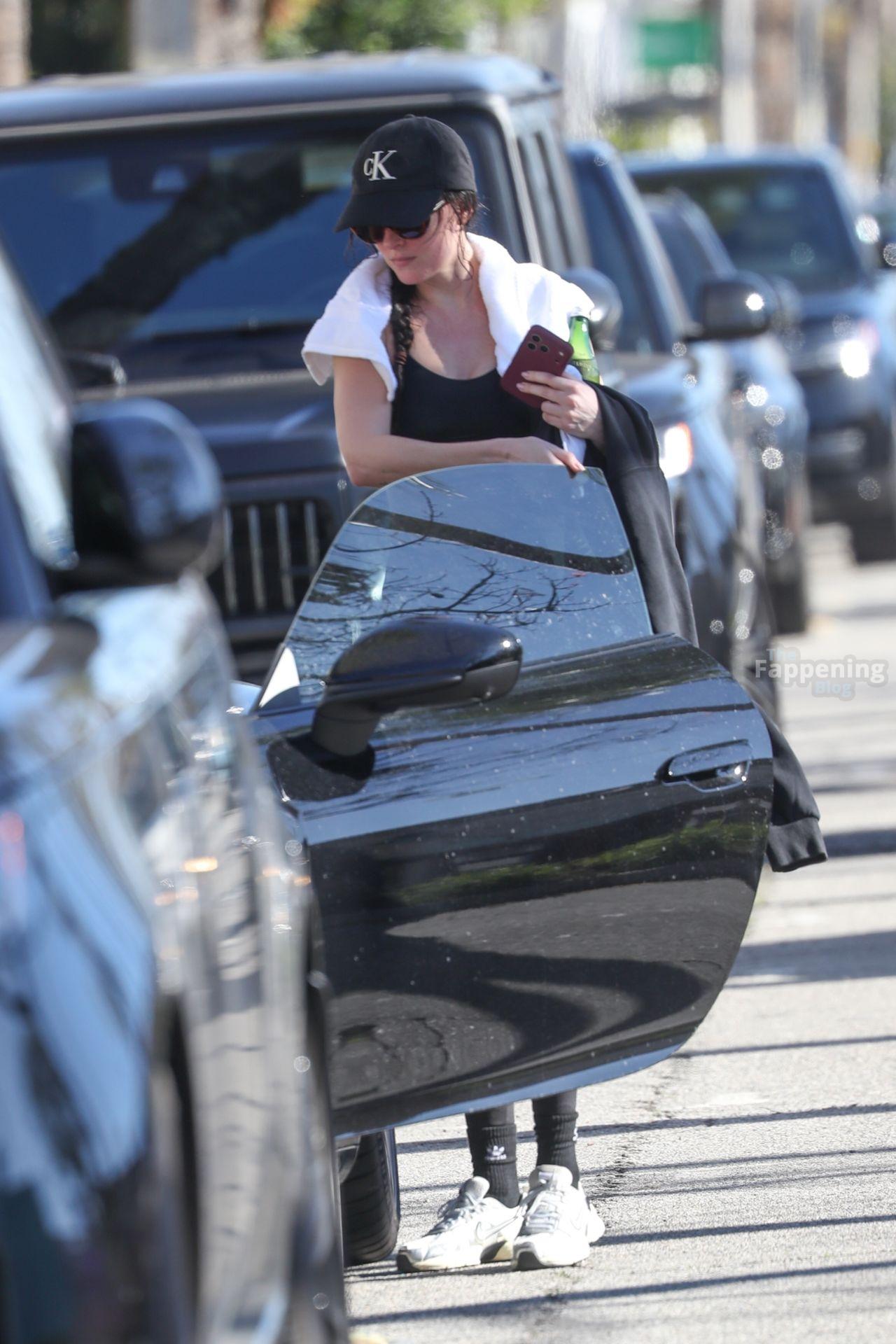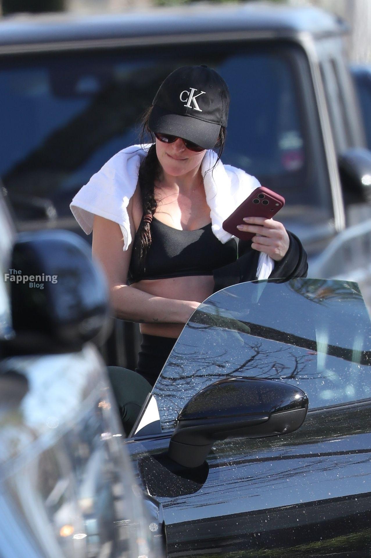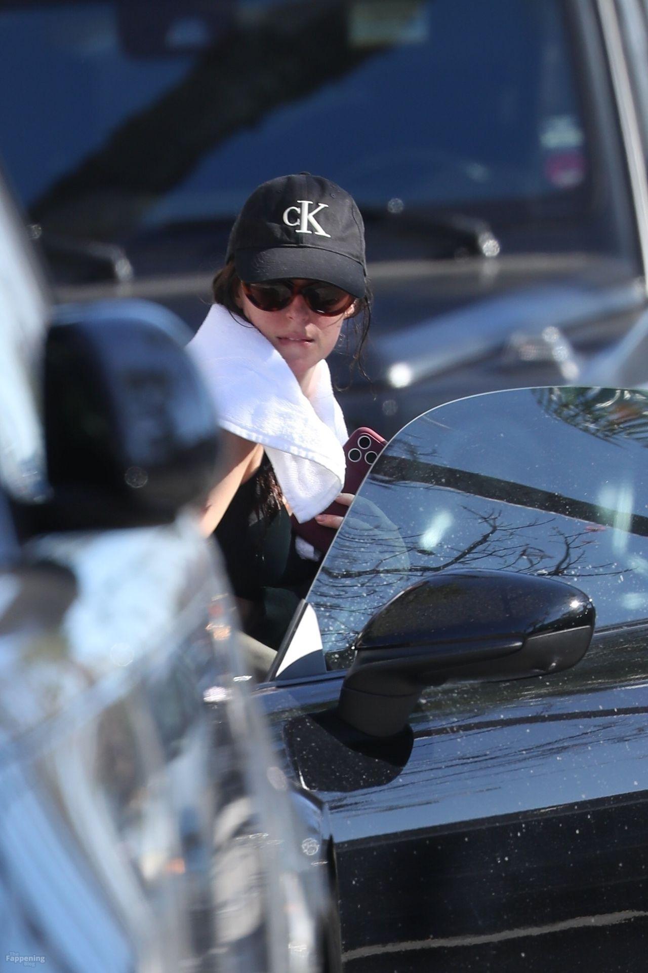 Звезда Фаппенинга Дакота Джонсон сохраняет горячий вид, выходя из спортзала в ЛА, пот светится на её подтянутом теле после интенсивной тренировки. 36-летняя звезда «Материалистов» носит леггинсы, которые идеально облегают её ягодицы и ноги, укороченный топ, демонстрирующий подтянутый пресс и намёк на грудь.