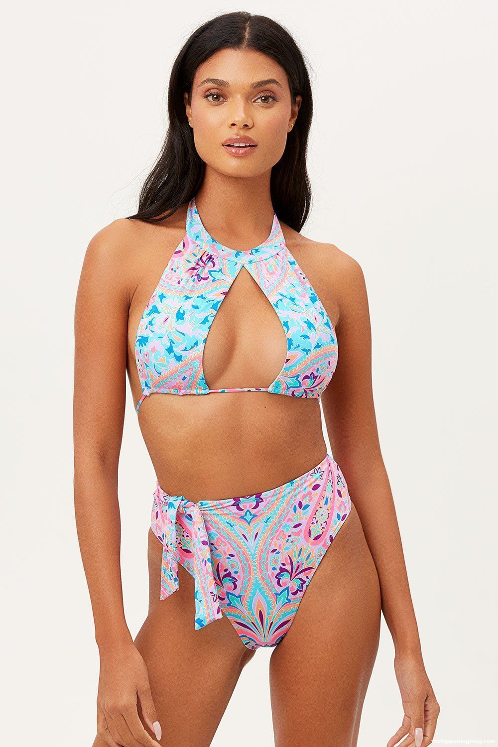 Фотографии Даниэлы Брага сделаны на фоне пляжа. Бразильская красавица в ретро-вдохновленных бикини с завышенной талией, ретро-бикини и топах с завязками.