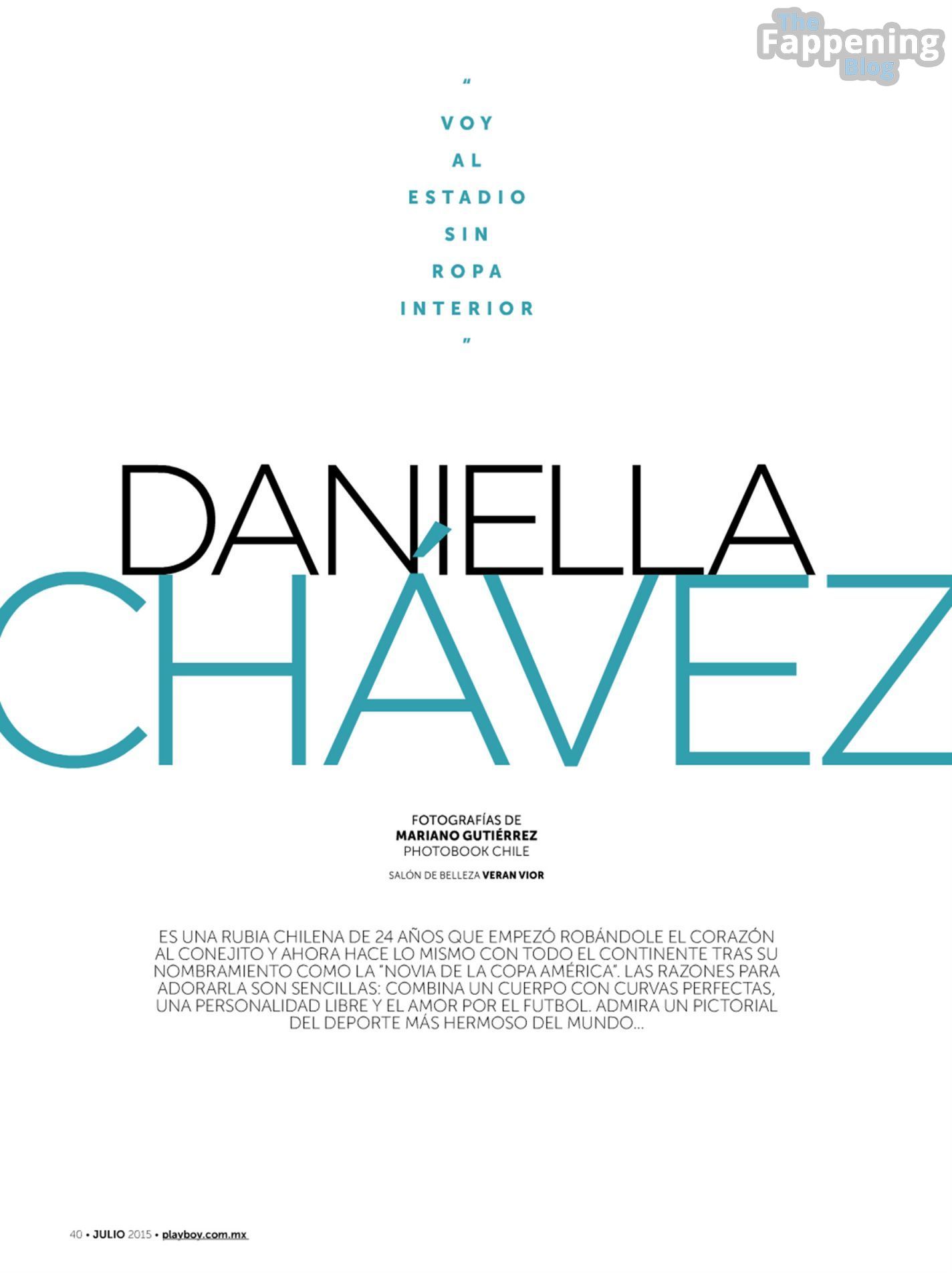 Посмотрите свежие сканы Даниэллы Чавес из Playboy Mexico за июль 2015 года. Большое уважение национальной футбольной сборной Чили! Даниэлла Чавес — чилийская модель и плеймейт Playboy за июль 2015 года.