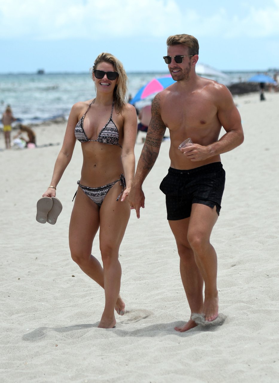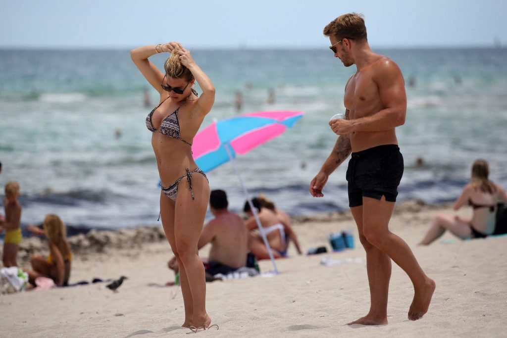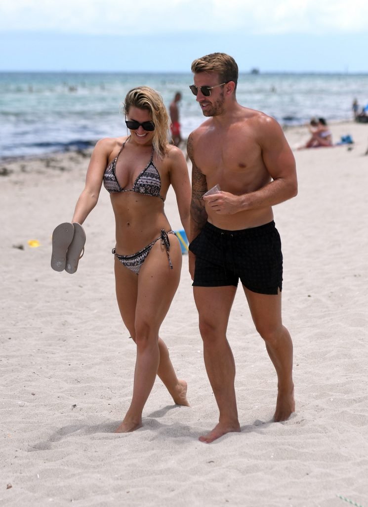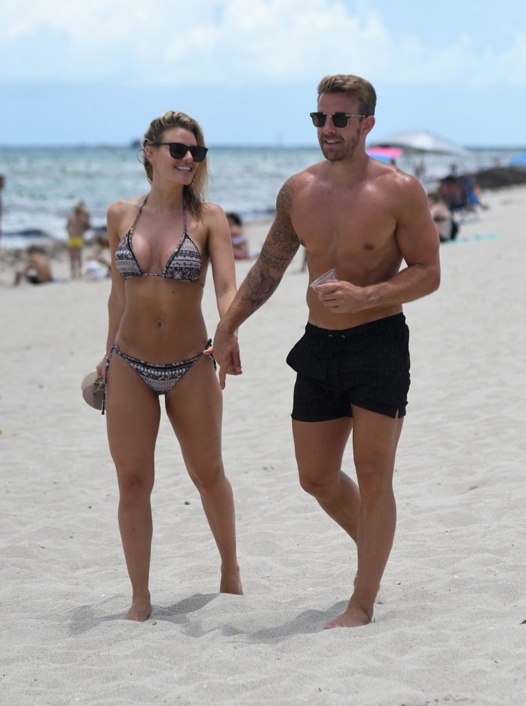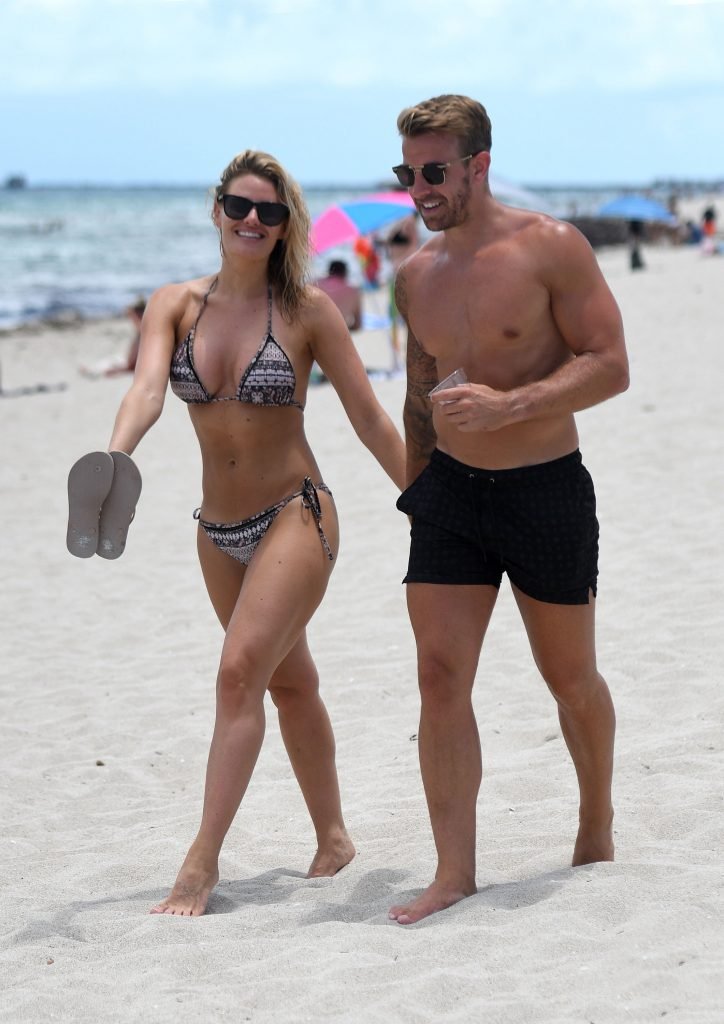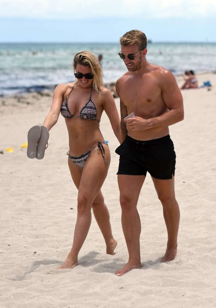 Бывшая звезда шоу TOWIE Даниэль Армстронг (30) и её парень Дэниел Спиллер демонстрируют свои пляжные тела и множество проявлений нежности в Майами-Бич, Флорида, 26.06.2018. Бывший футболист не мог оторвать рук от своей девушки в бикини, доказывая, что их отношения по-прежнему крепки во время их солнечного отпуска.