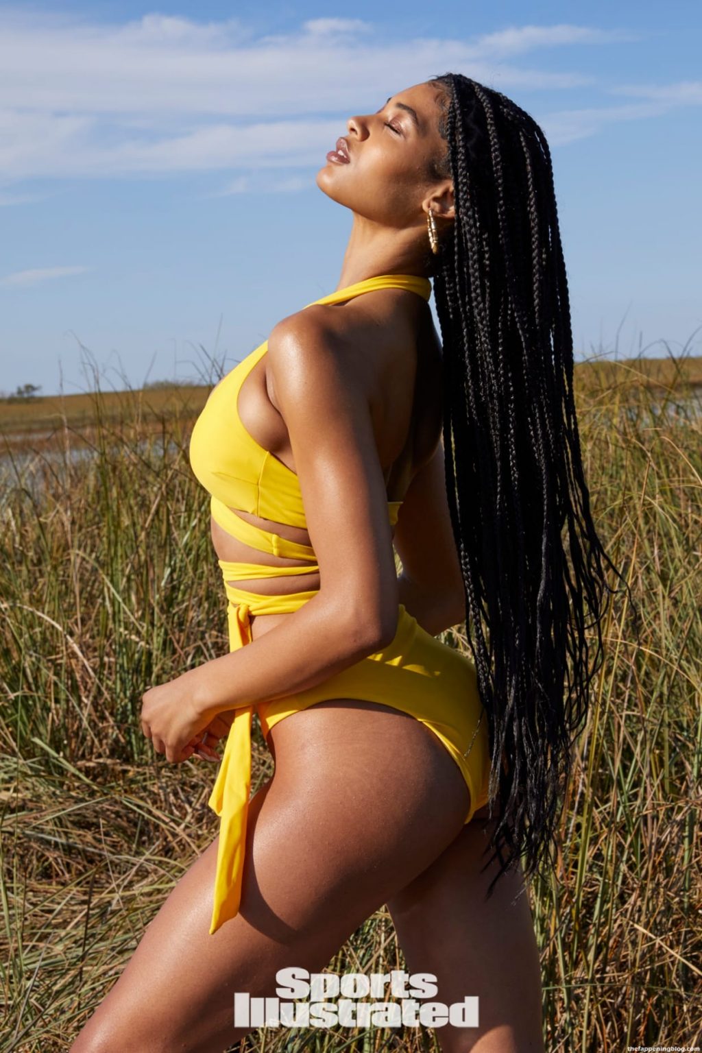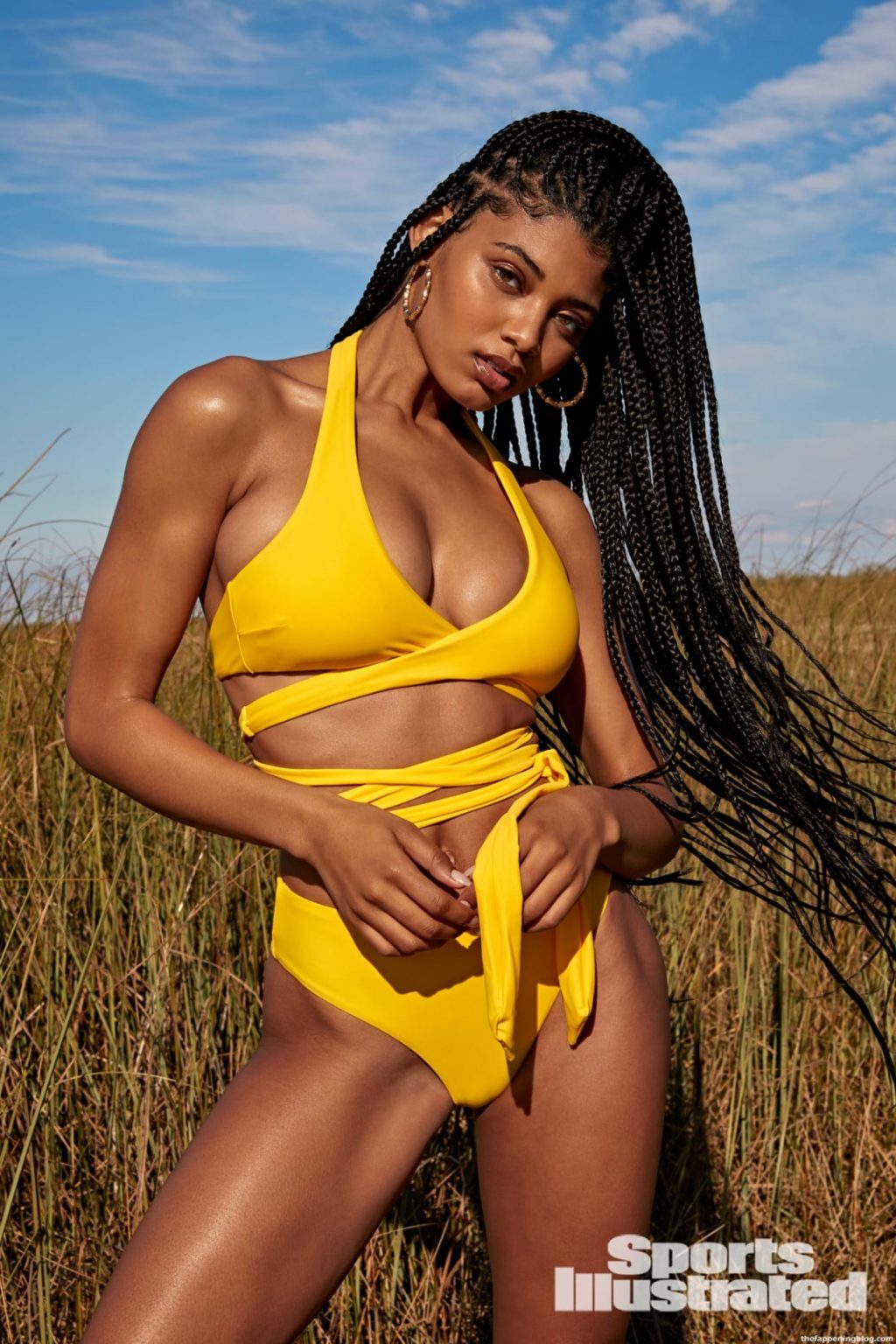Модель Даниэль Херрингтон меняет прическу для новой фотосессии от Джеймса Макари для выпуска Sports Illustrated Swimsuit 2021, позируя в различных бикини от LaQuan Smith и демонстрируя немного кожи.