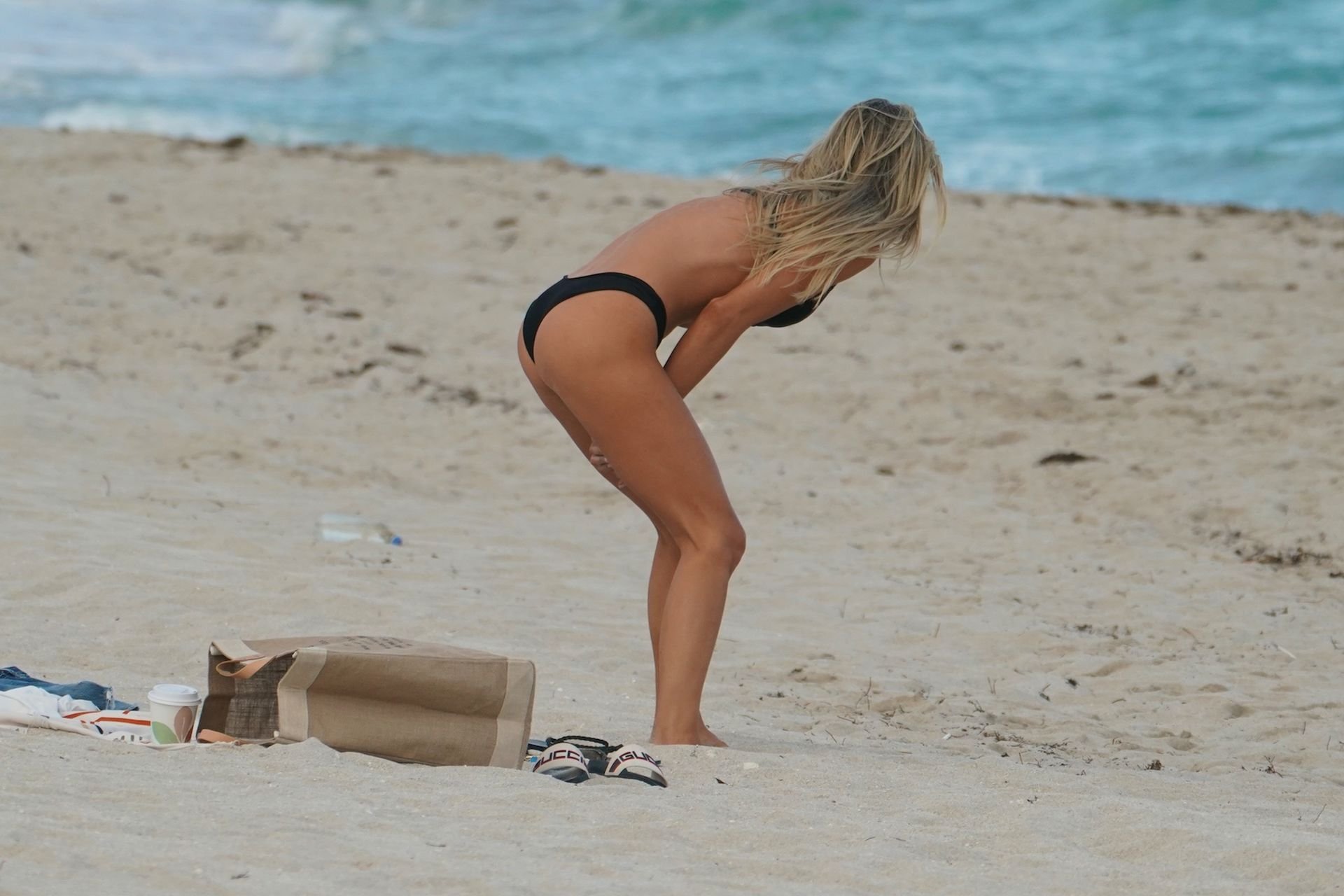 Канадская модель Даниэль Кнудсон была замечена на пляже в Майами-Бич 12/08/2018 в черном бикини-стрингах вместе со своей подругой, немецко-хорватской красавицей Еленой Цикоя.