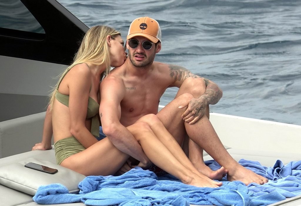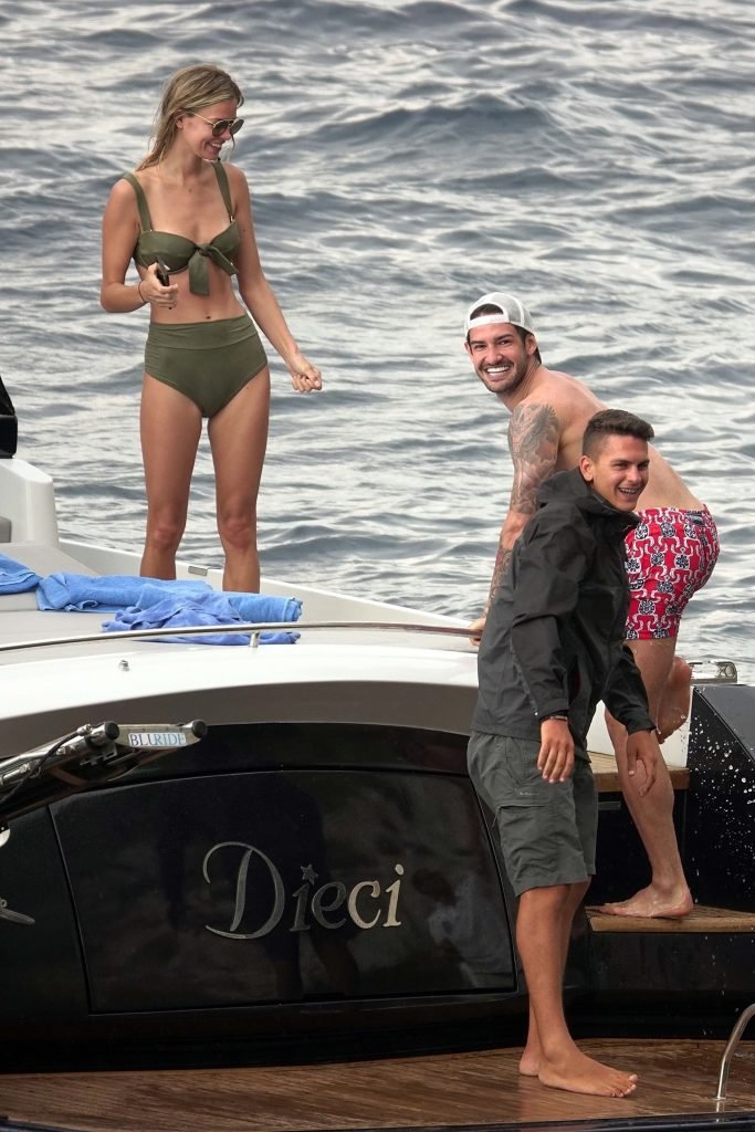 Бывшая звезда бразильского футбола Александр Пато наслаждается днем на море со своей девушкой Даниэль Кнудсон на роскошной яхте в Капри, 12.06.2018. Александр сегодня утром связывается с переходом в Селтик.
