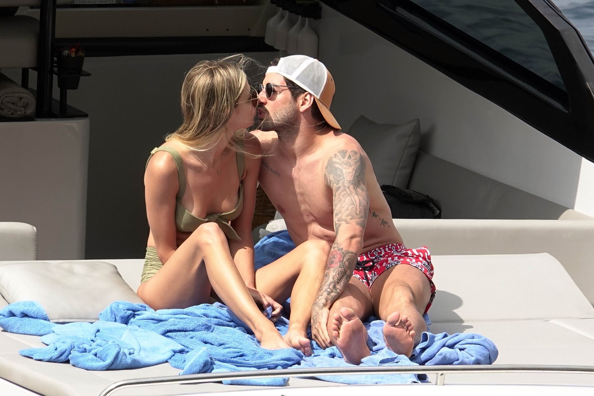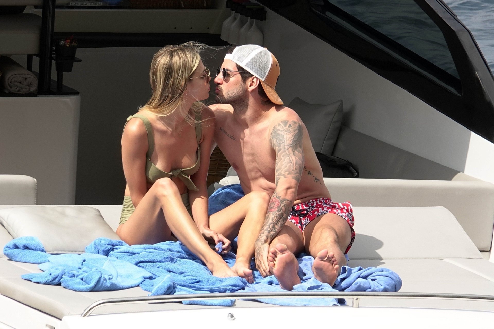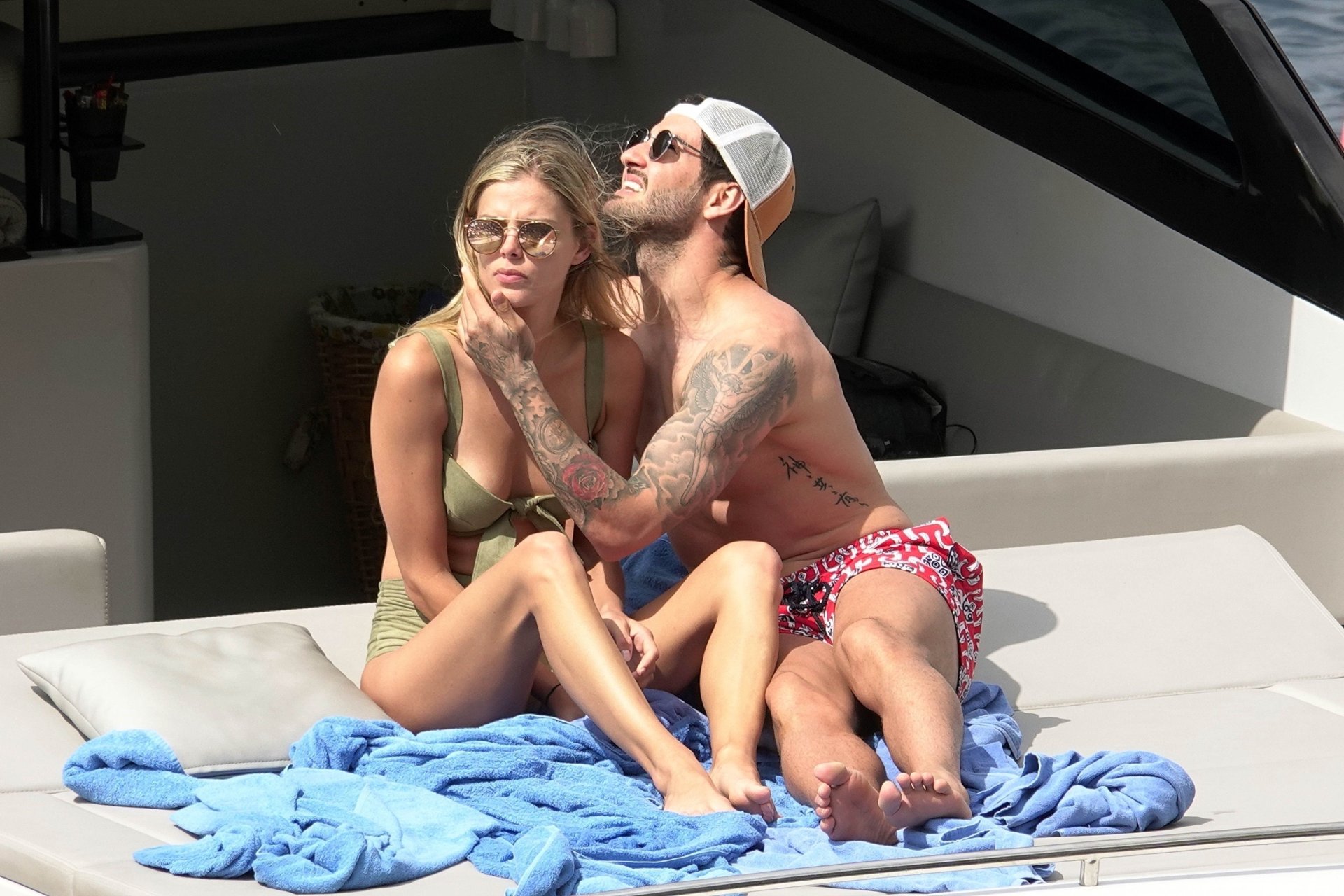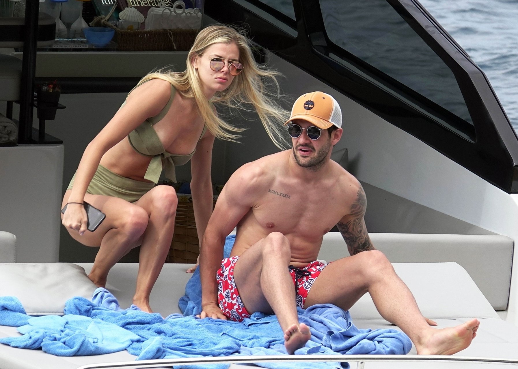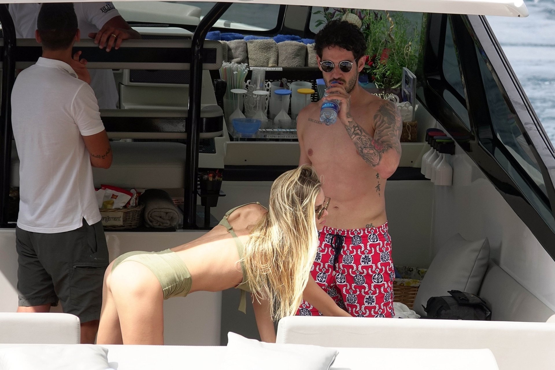 Бывшая звезда бразильского футбола Александр Пато наслаждается днем на море со своей девушкой Даниэль Кнудсон на роскошной яхте в Капри, 12.06.2018. Александр сегодня утром связывается с переходом в Селтик.