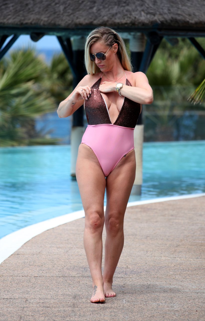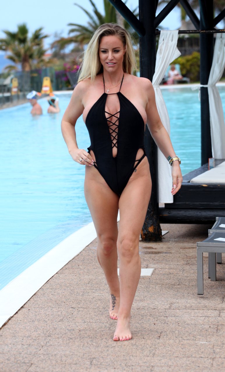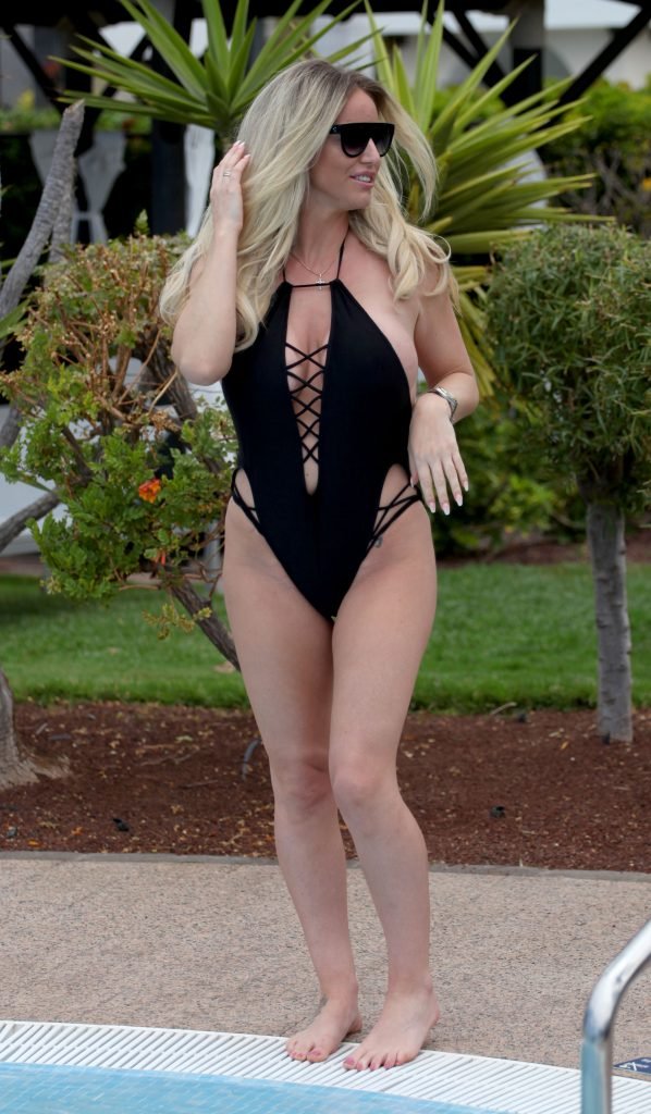 Даниэль Мэйсон демонстрирует результаты своего недавнего похудения, борясь с купальником во время загара в Испании, 01.05.2018. Гламурная модель, актриса, телеведущая Даниэль с трудом сдерживала свои прелести, когда случайно оголила сосок, поправляя купальник.