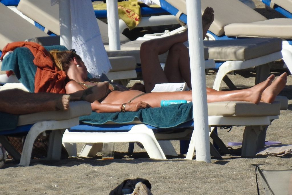 Голландский певец Йерун Ван Дер Бум проводит качественное время со своей женой Дэни Ван Дер Бум и семьей на залитых солнцем испанских пляжах Марбельи, 16.07.2020. Дэни блистала под жарким солнцем, надев свой скудный маленький бикини. Семья освежилась, окунувшись в тёплое море во время расслабляющего семейного отпуска.