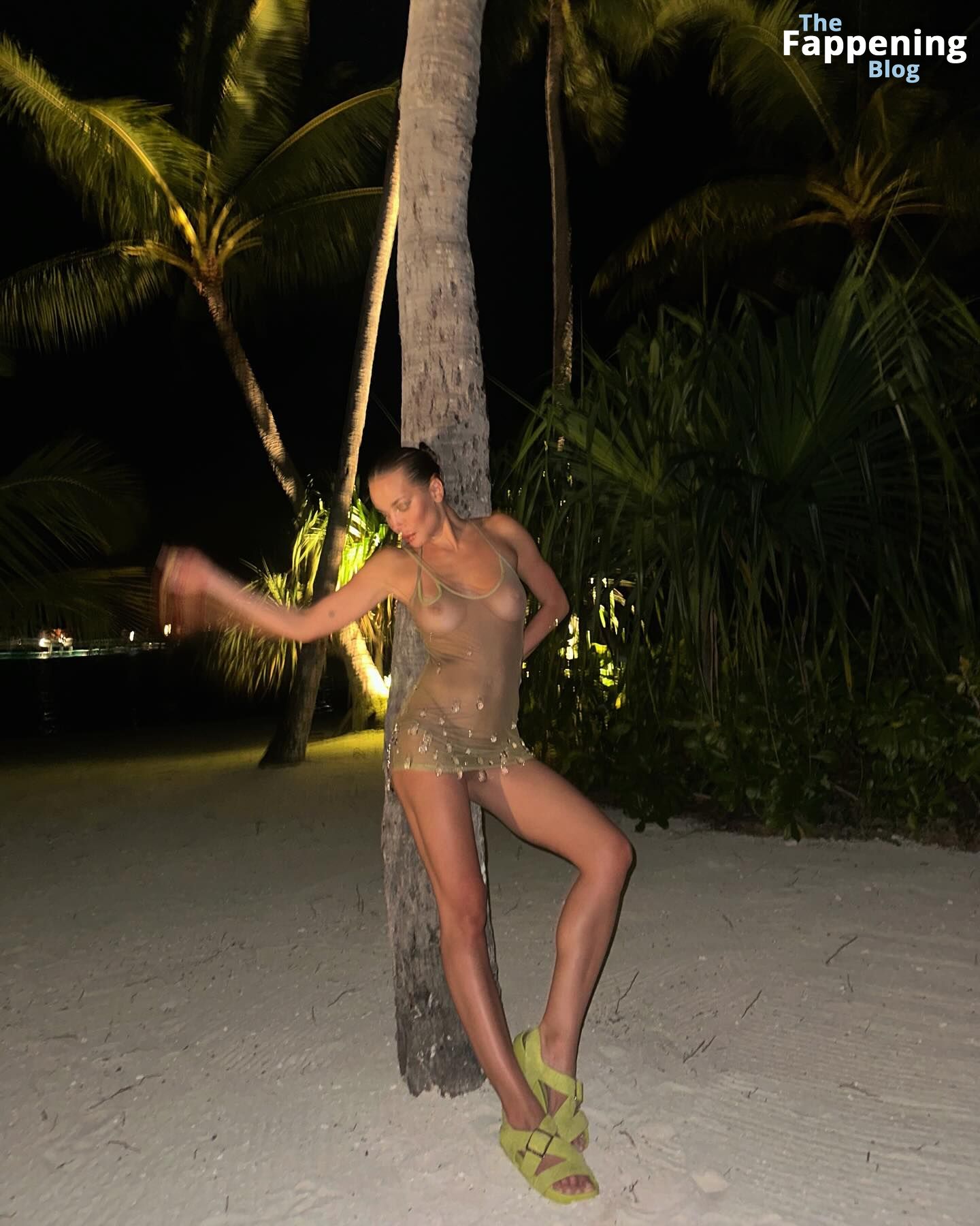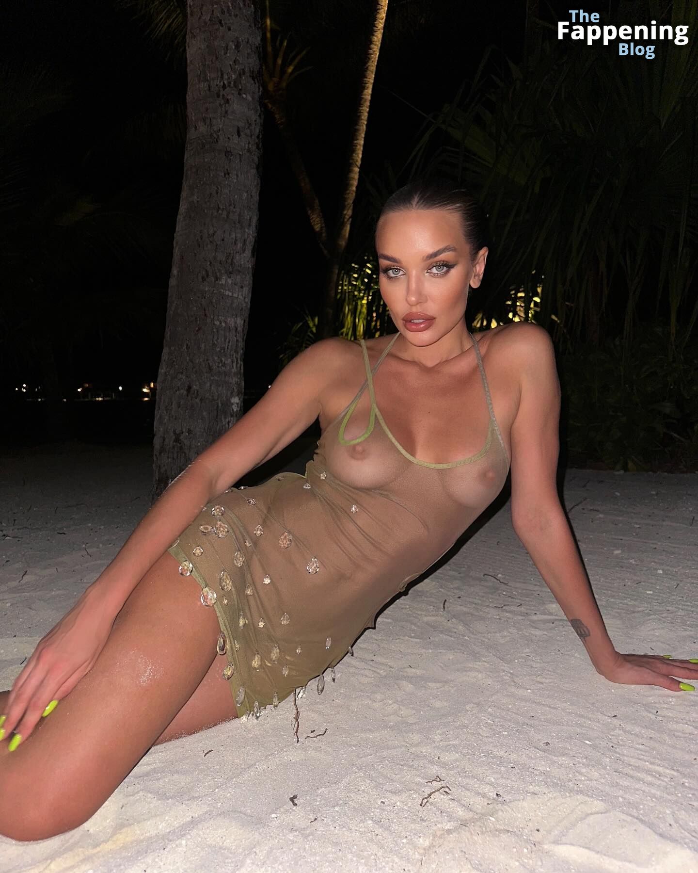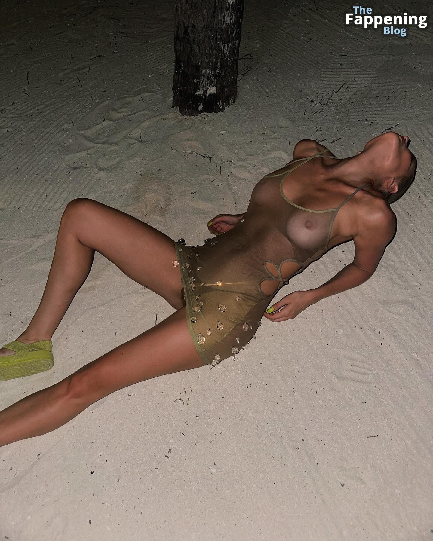 Instagram-фото показывают Дарью Коновалову почти обнажённой: на ней прозрачное платье, и она отдыхает на песке.