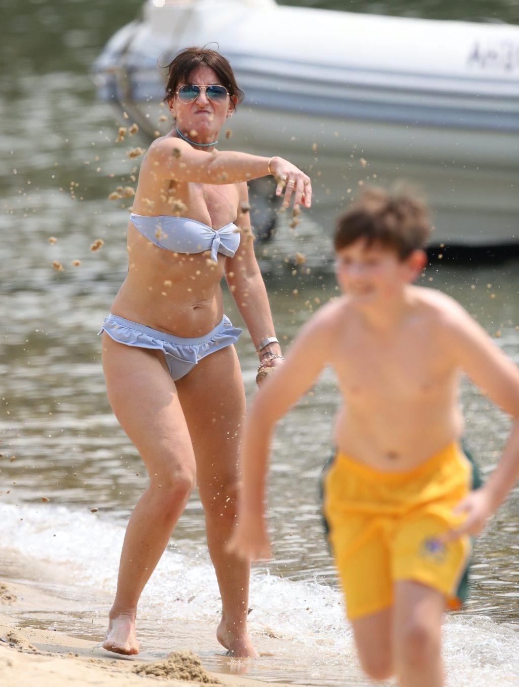 Davina McCall была замечена, наслаждаясь днем на пляже с семьей в Австралии, 19.12.2019.