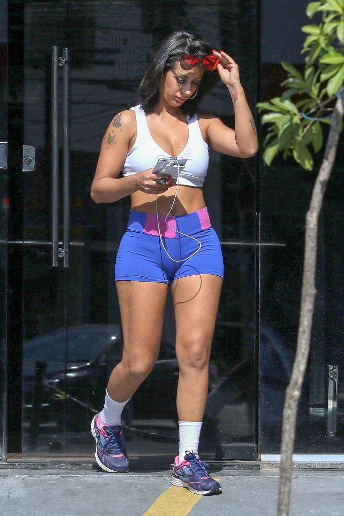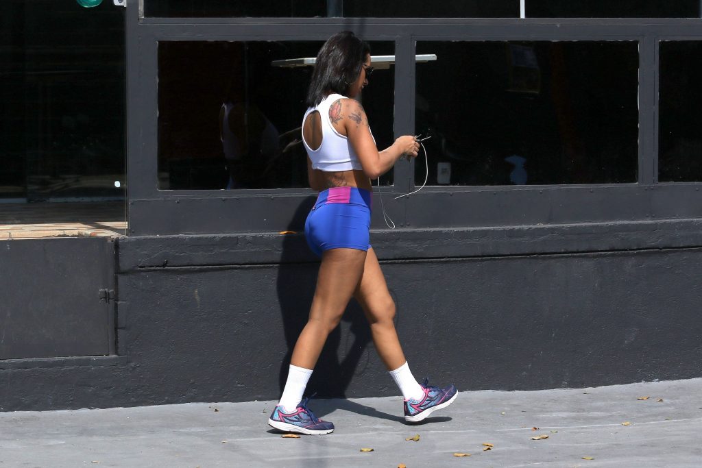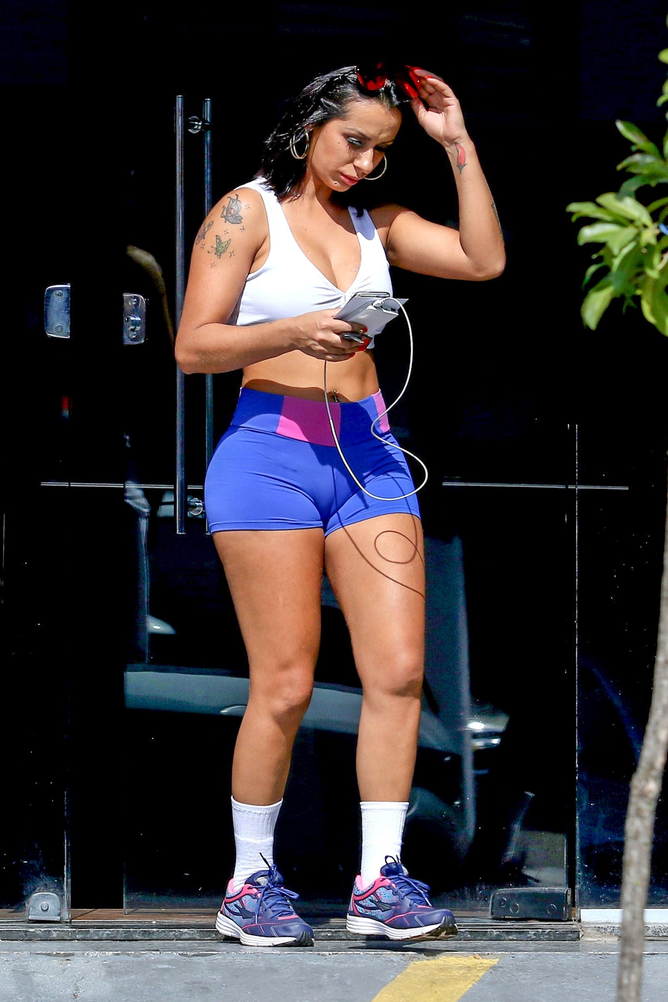 Бразильская модель и порноактриса Дебора Данхилл демонстрирует свои знаменитые изгибы, когда заканчивает тренировку в спортзале и переодевается в припаркованной машине перед очередным кастингом, 31.08.2017.