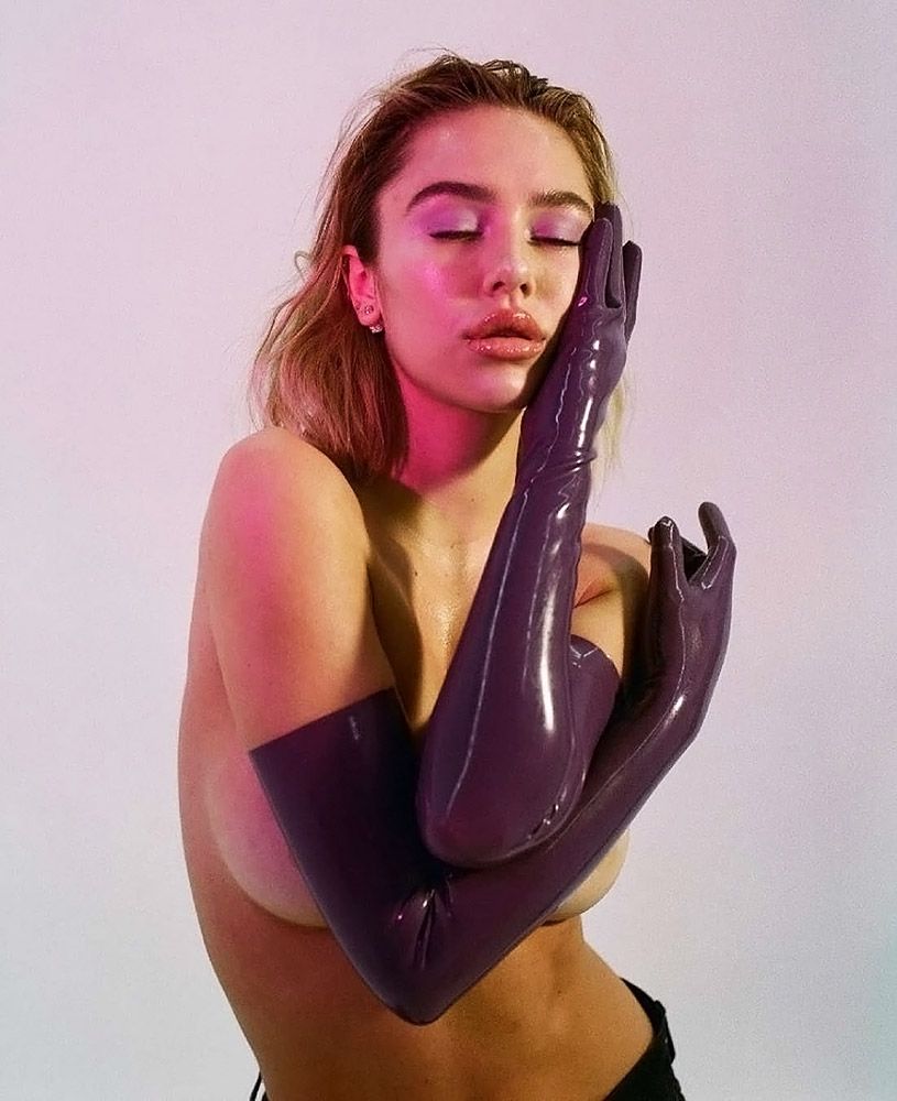 There is Delilah Belle Hamlin tits gallery once more time! This young model and Instagram whore adore tickling our imagination by showing her naked boobs and ass through transparent tops and bikinis! This time she wore a sheer corset. Belle gave us a great view at her nipples and small tits, so zoom pics and imagine sucking on these!