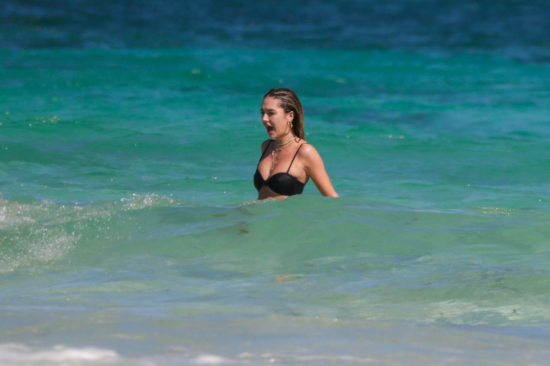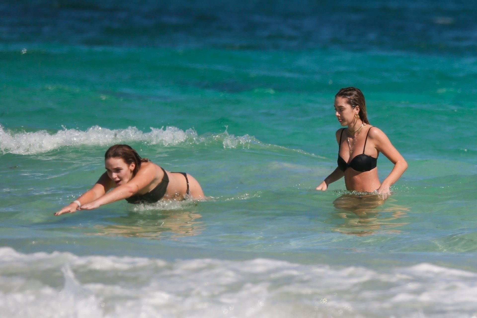 Delilah Belle Hamlin (20) играет на солнце со своей подругой-блогером Suede Brooks (17). Делайла выглядела потрясающе в черном бикини и демонстрировала свою безупречную фигуру на пляже вместе с подругой в Тулуме, Мексика, 11.01.2019.