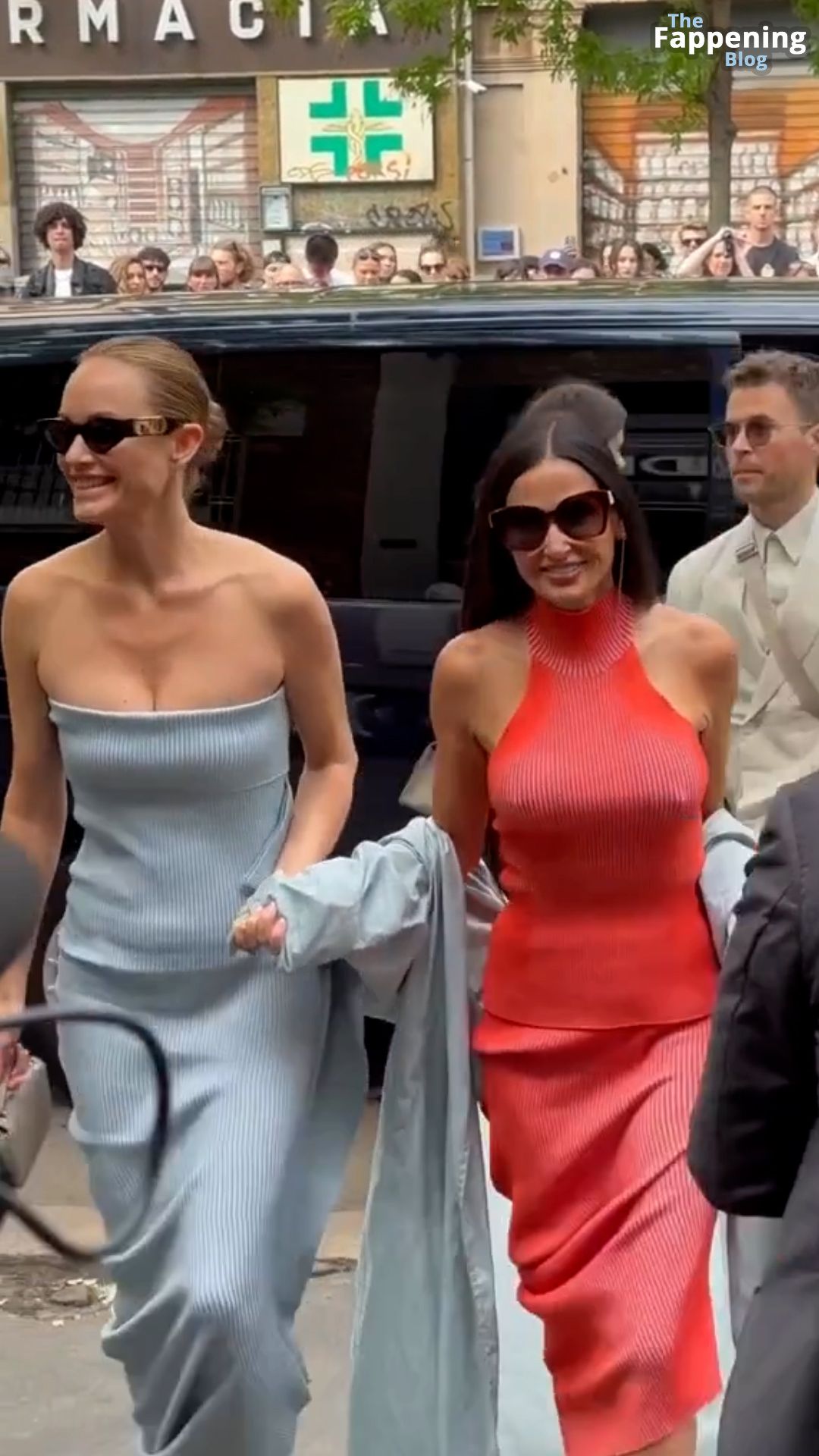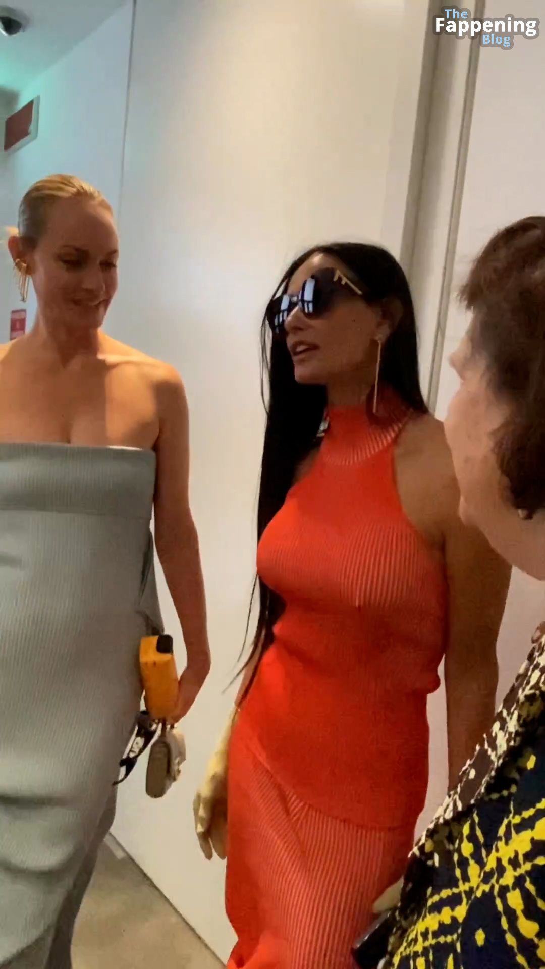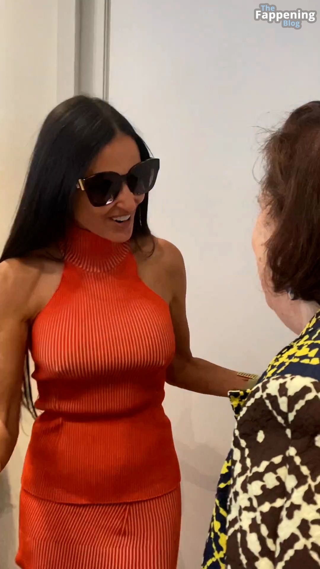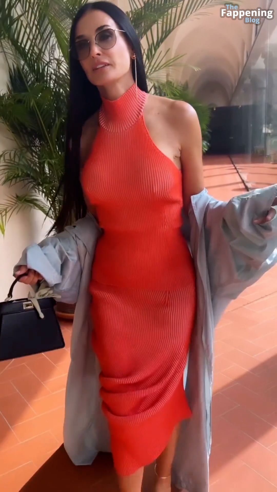 В обтягивающем и сексуальном красном платье она отказалась от бюстгальтера, позволяя своим грудям украсть все внимание. Её соски просвечивают, создавая по-настоящему горячую атмосферу, когда она прибывает на мероприятие. Деми знает, как эффектно появиться и удержать все взгляды на себе. Она настоящая королева стиля!