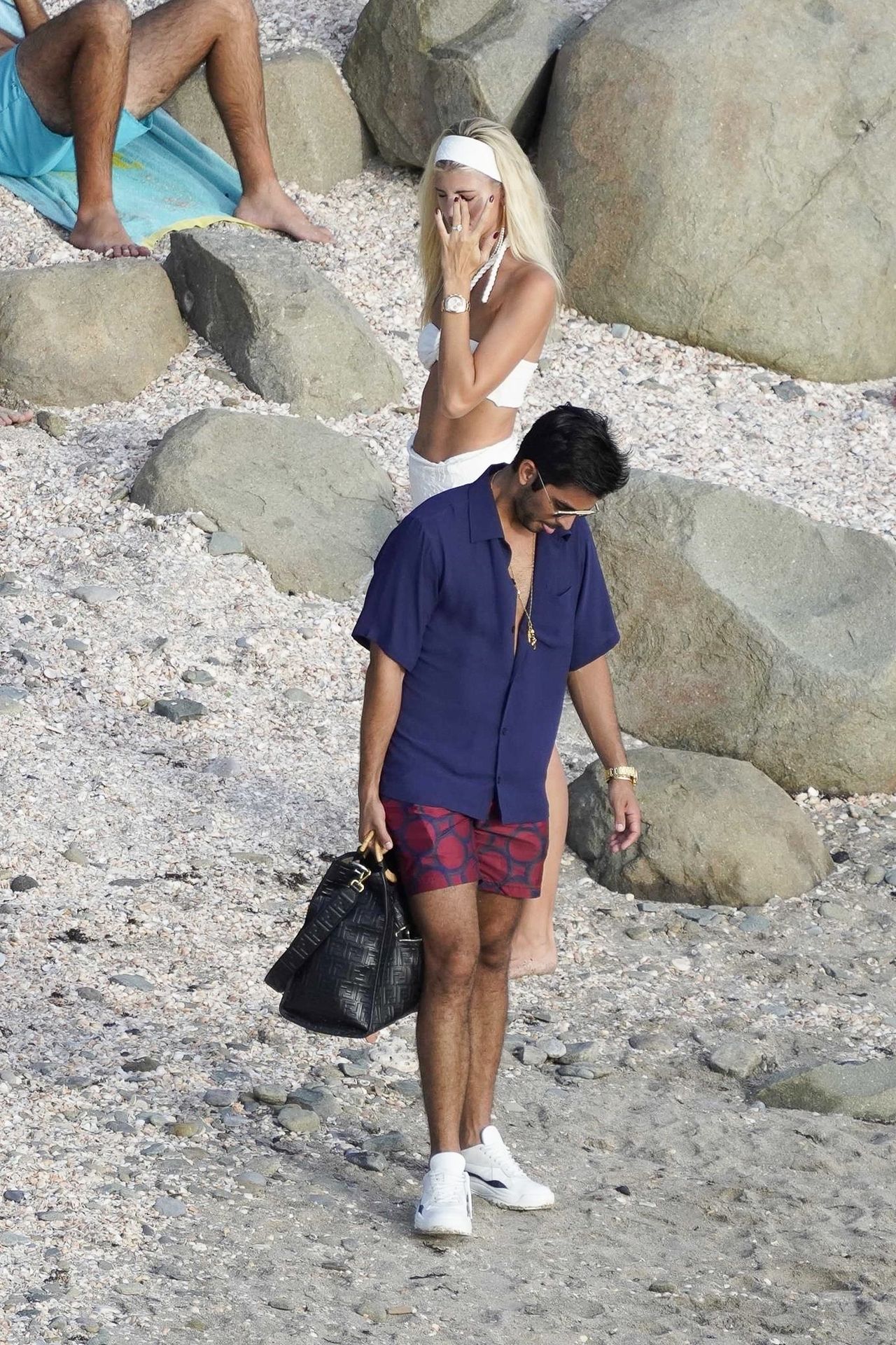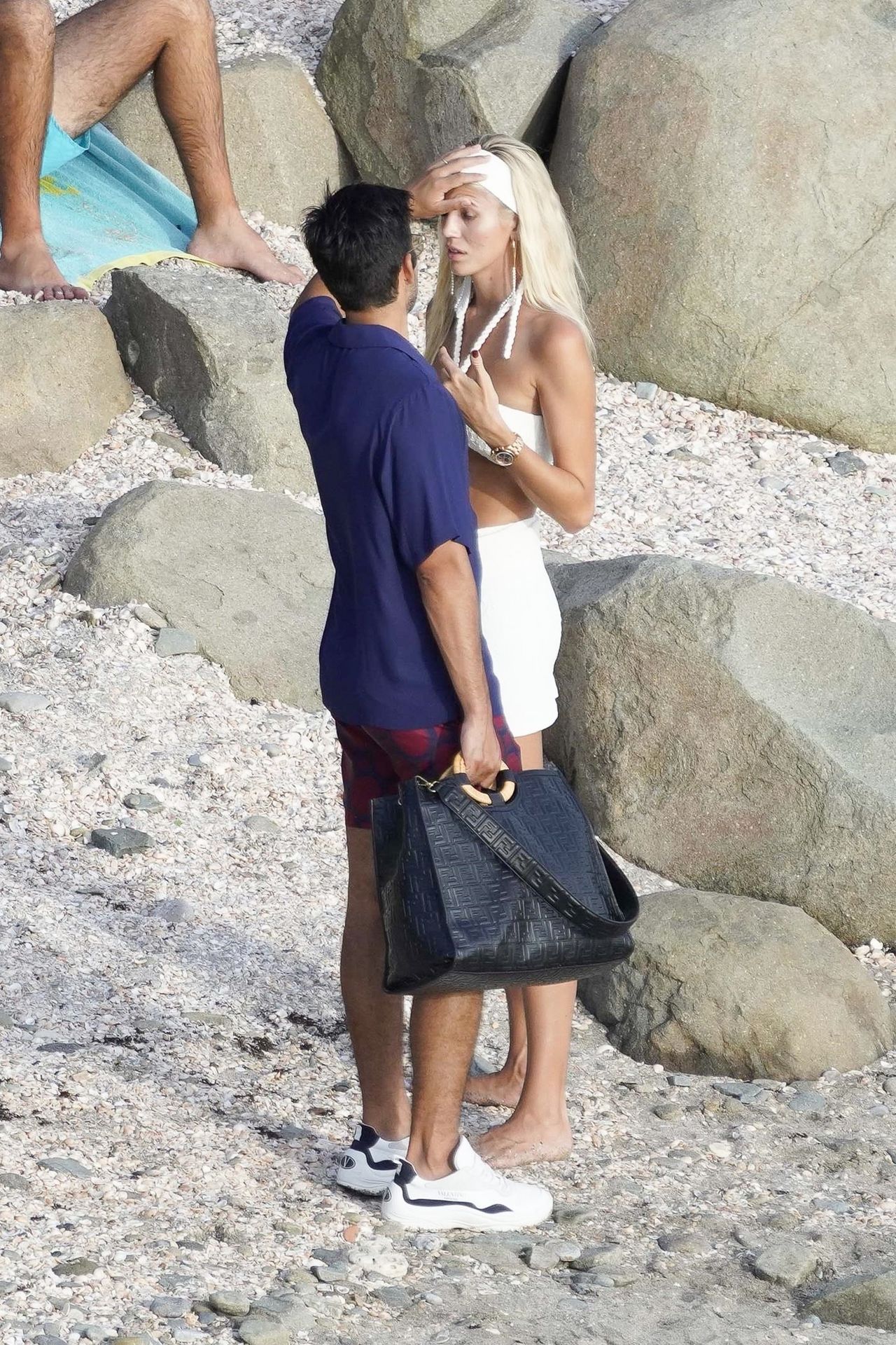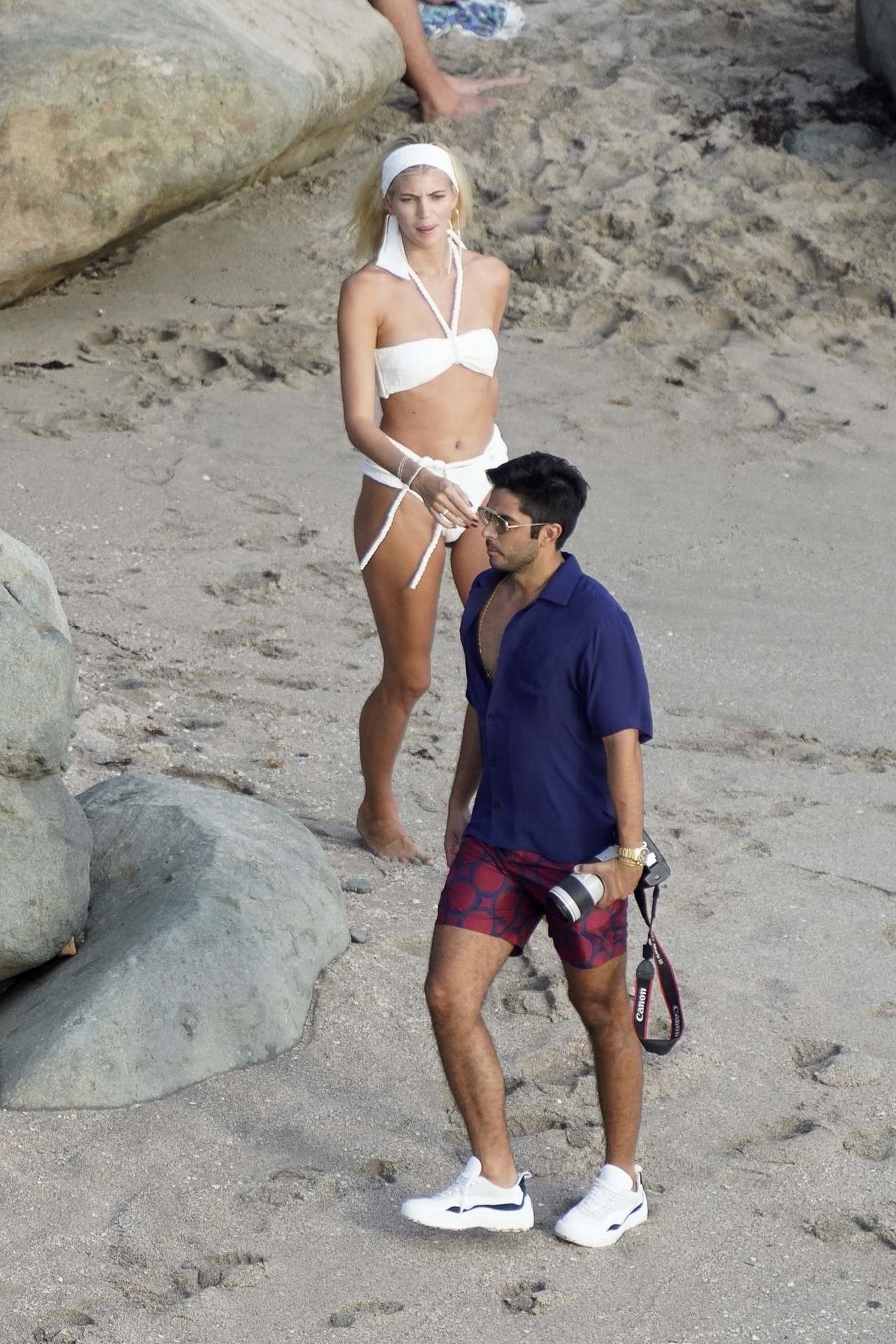 Модель Девон Виндзор демонстрирует свою фигуру в белом бикини, пока она и её муж Джонни Барбара отмечают первую годовщину свадьбы в Сен-Бартельми, 14.11.2020.