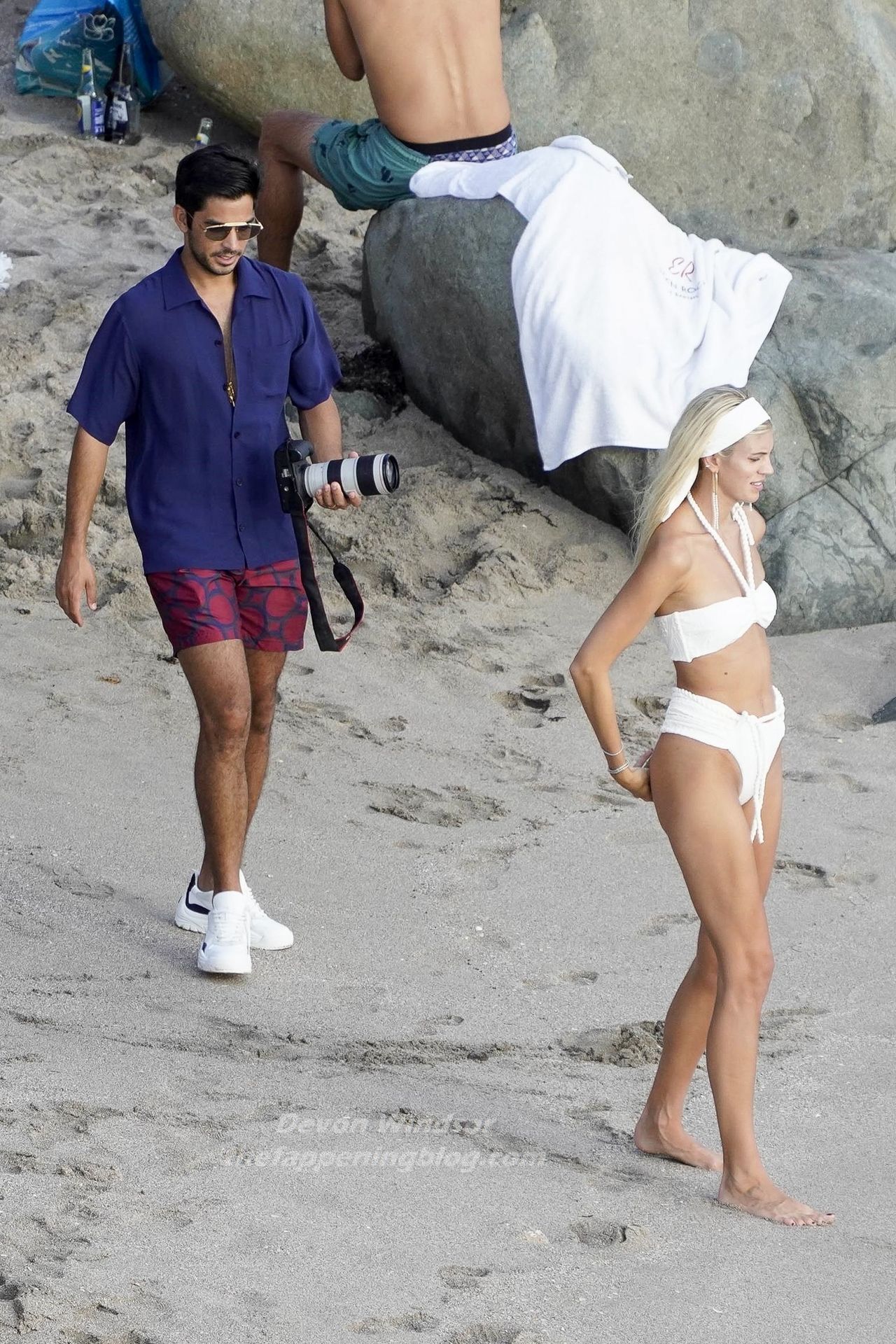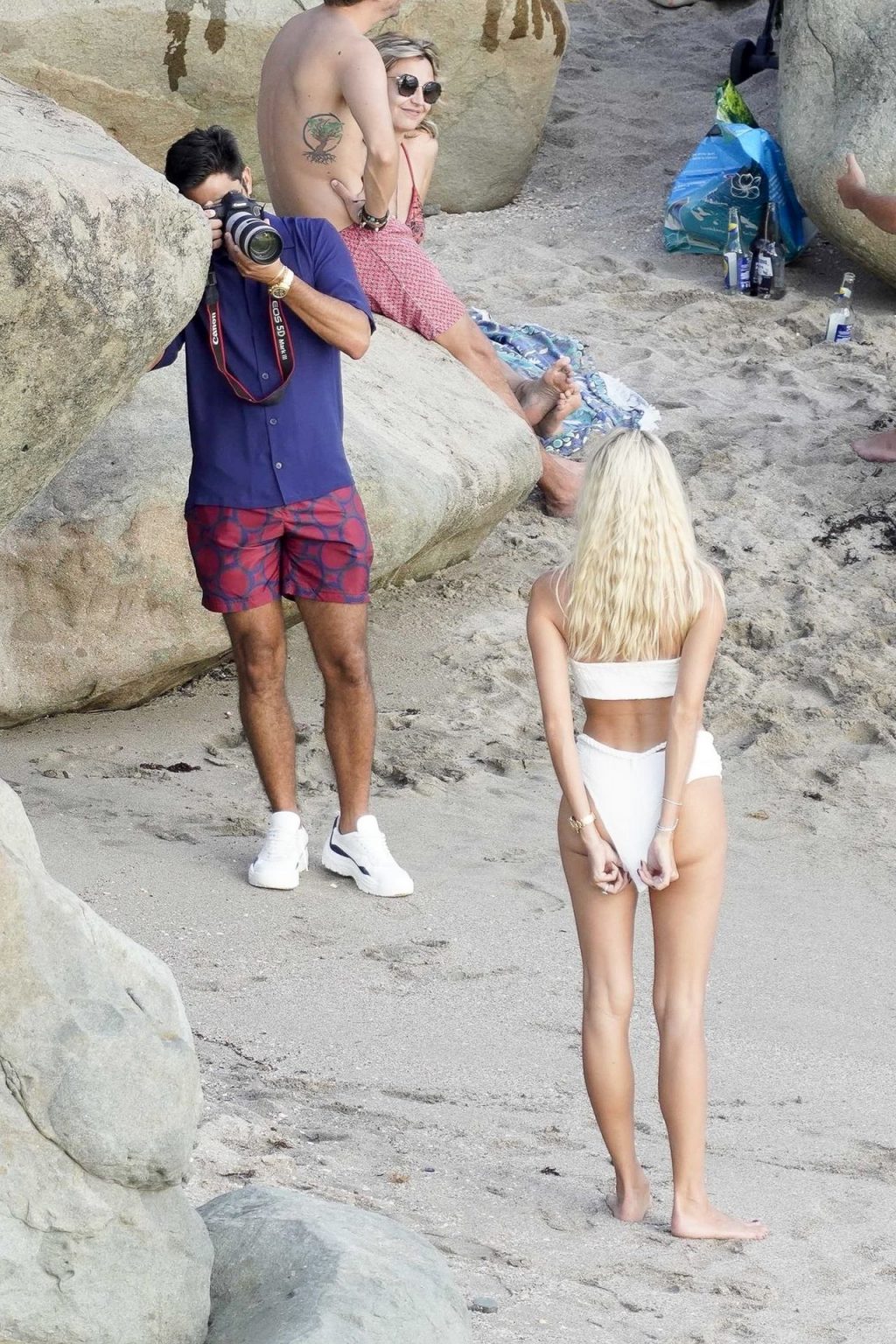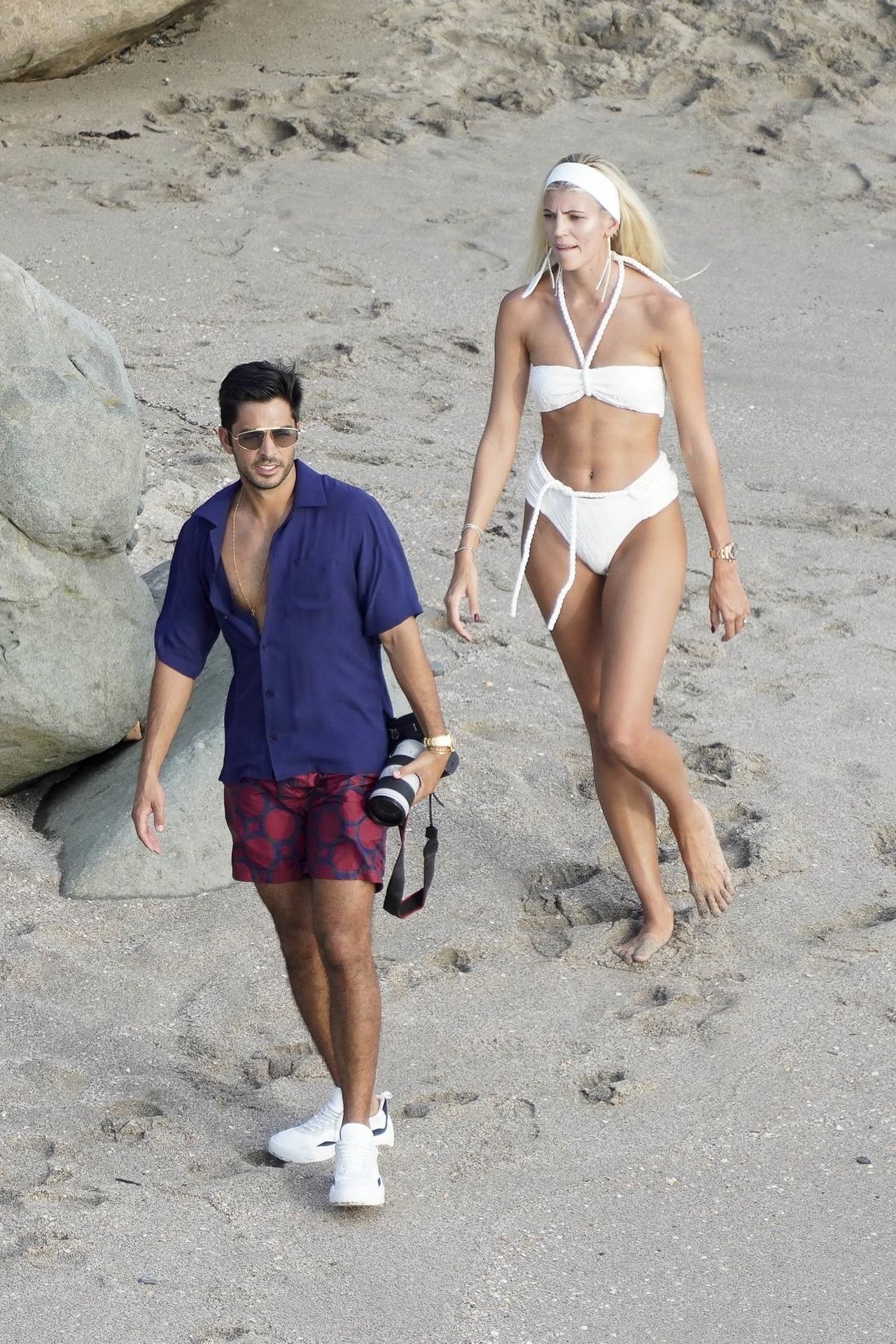Модель Девон Виндзор демонстрирует свою фигуру в белом бикини, пока она и её муж Джонни Барбара отмечают первую годовщину свадьбы в Сен-Бартельми, 14.11.2020.