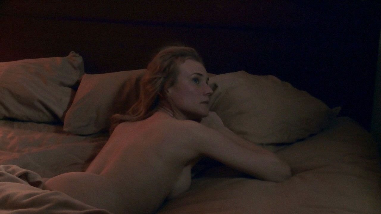 Дайан Крюгер просыпается, лежа обнажённой, показывая большую часть своей спины и груди, когда переворачивается.