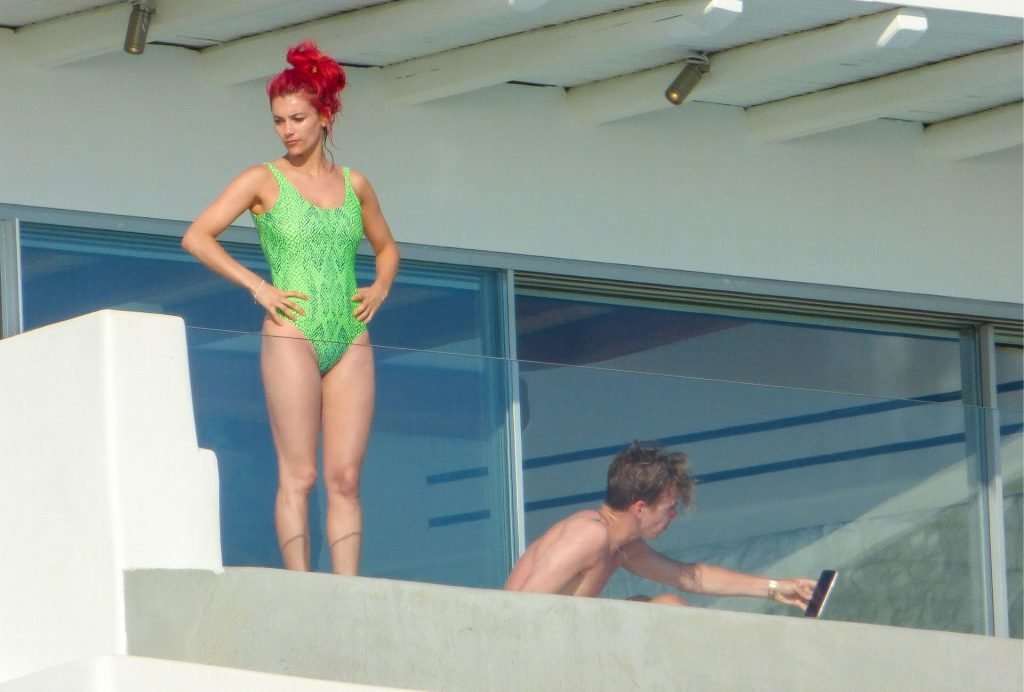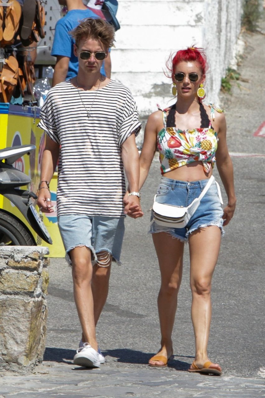 “Звезды шоу “Танцы со звездами” Джо Сагг и Дианна Басвелл наслаждаются отпуском на острове Миконос в Греции, 24.07.2019. Их заметили у бассейна, а позже они прогуливаются по городу, где ужинают и едят мороженое.