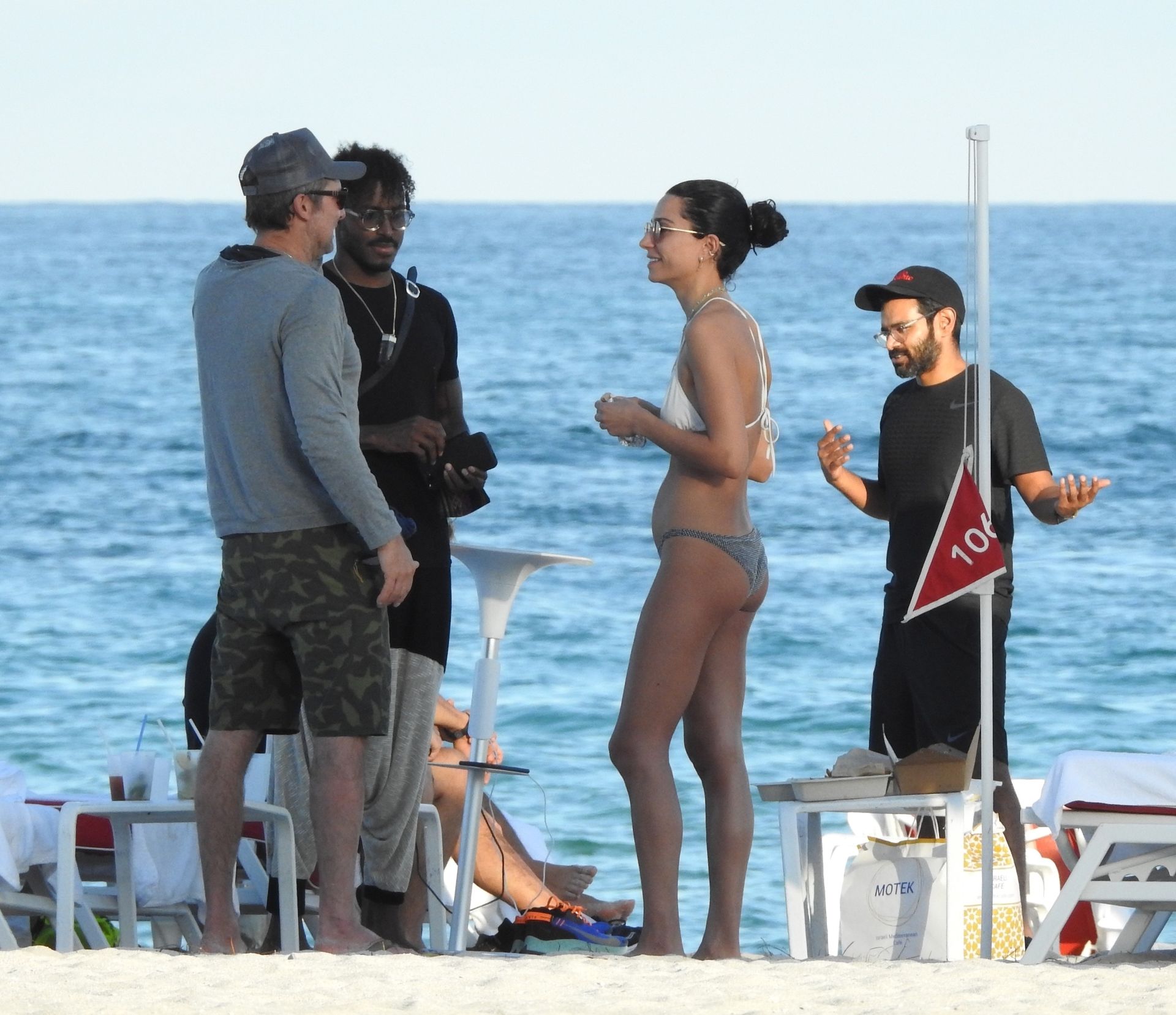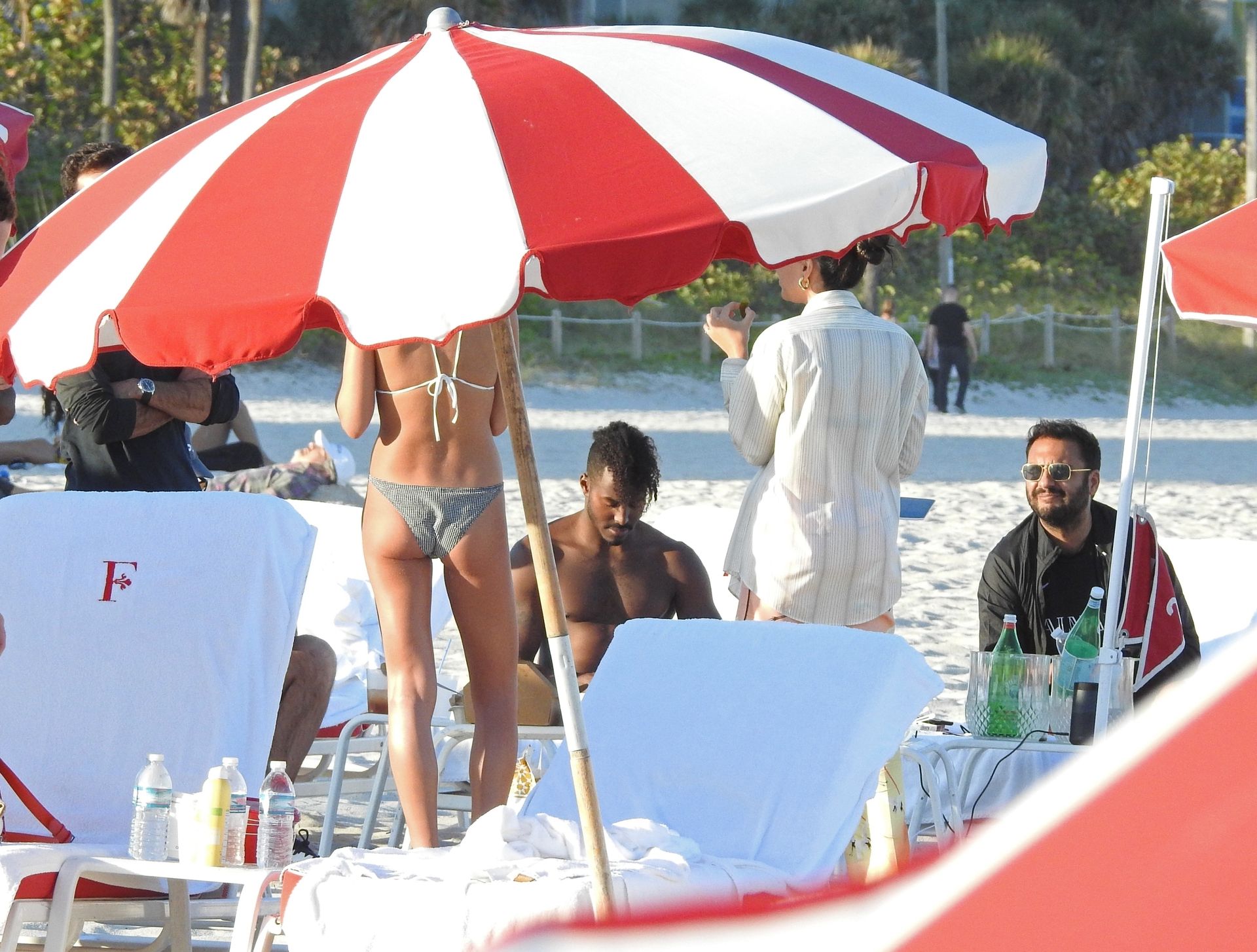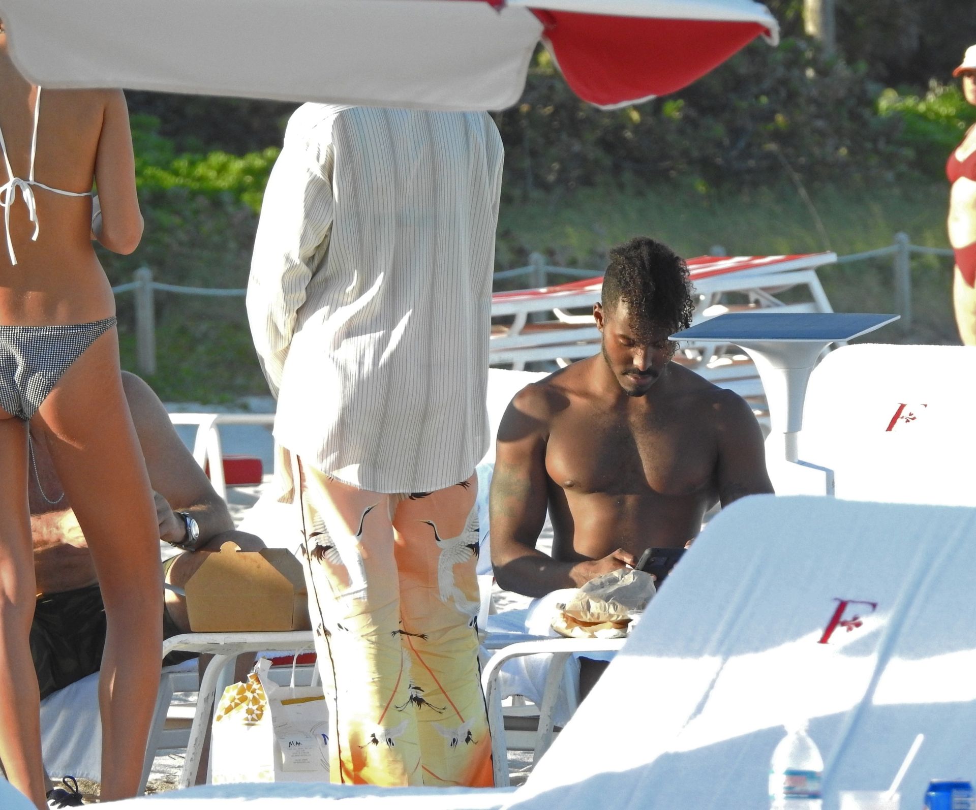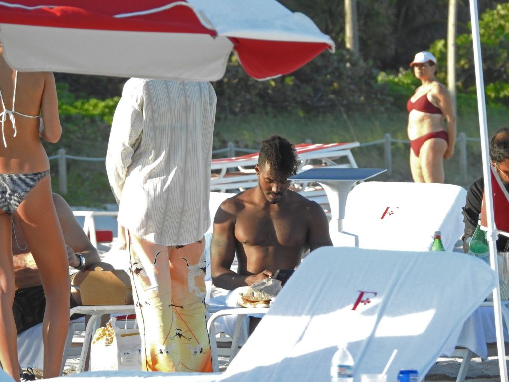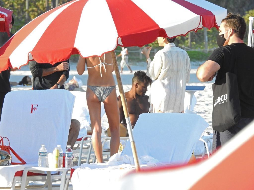 Американский музыкант DJ Ruckus был замечен, когда общался с несколькими женщинами, наслаждаясь днем на пляже в Майами-Бич, Флорида, в VIP-зоне роскошного пляжного курорта, 27.01.2021.
