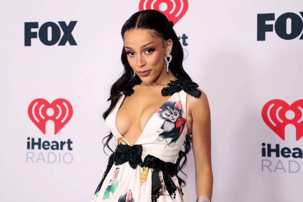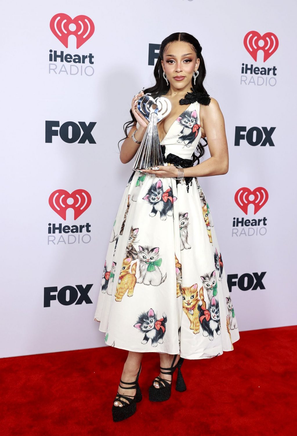 Певица Доджа Кэт, обладательница награды за лучшего нового поп-артиста, демонстрирует свое красивое декольте на церемонии iHeartRadio Music Awards 2021 в театре Dolby в Лос-Анджелесе, Калифорния, 27.05.2021.