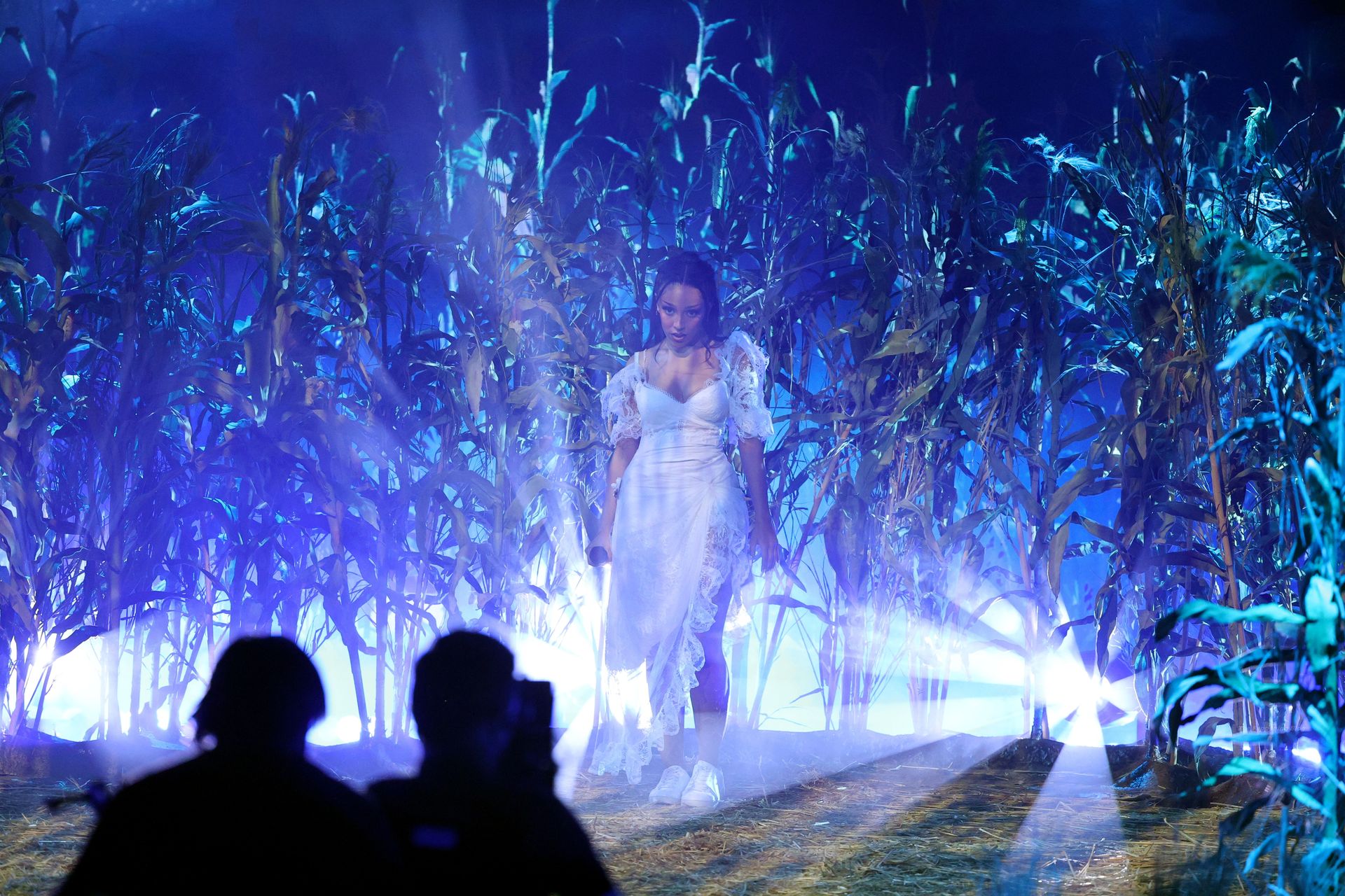 Певица Doja Cat выступает на сцене на церемонии iHeartRadio Music Awards 2021 в театре Dolby в Лос-Анджелесе, Калифорния, которая транслировалась в прямом эфире на FOX 27 мая 2021 года.