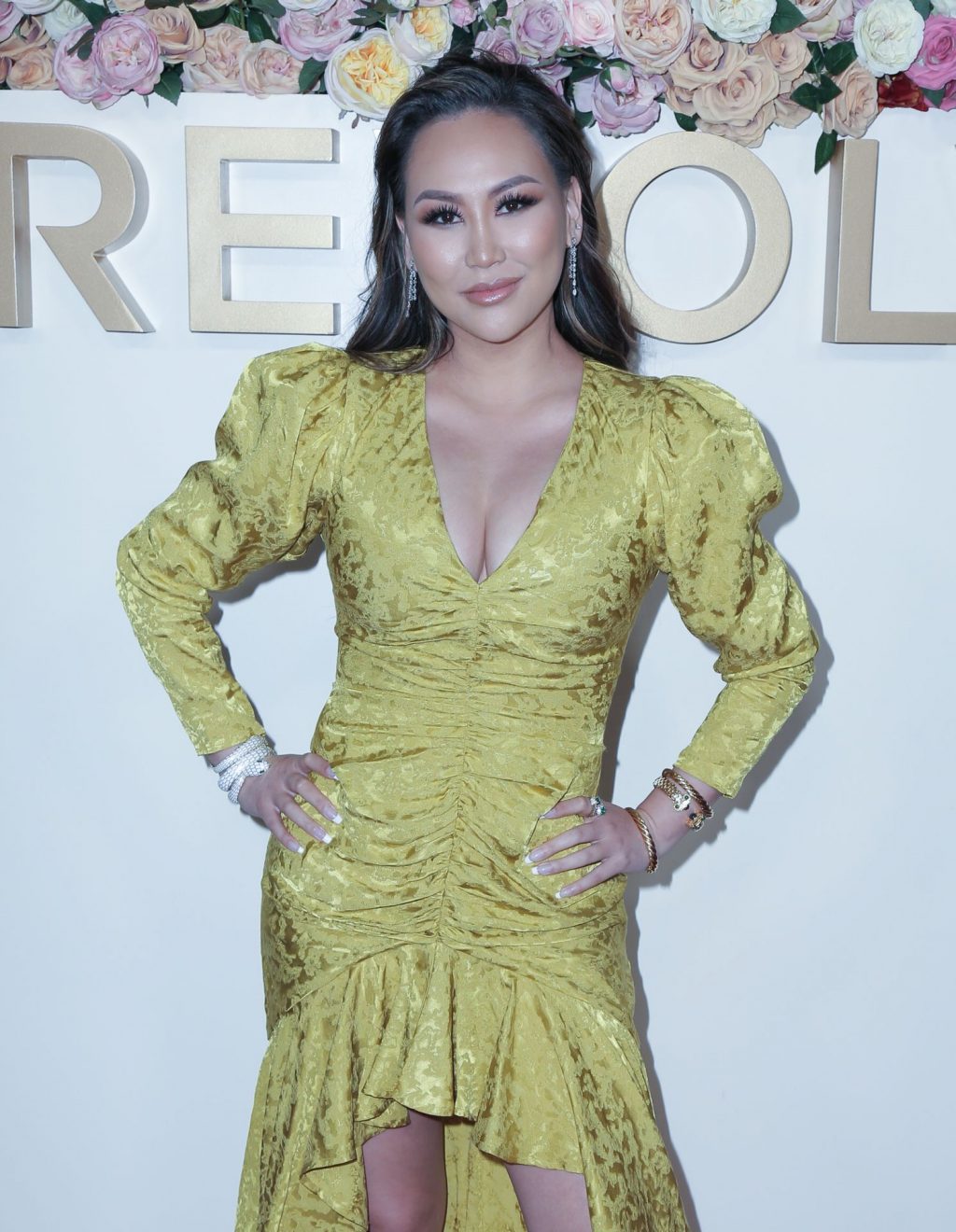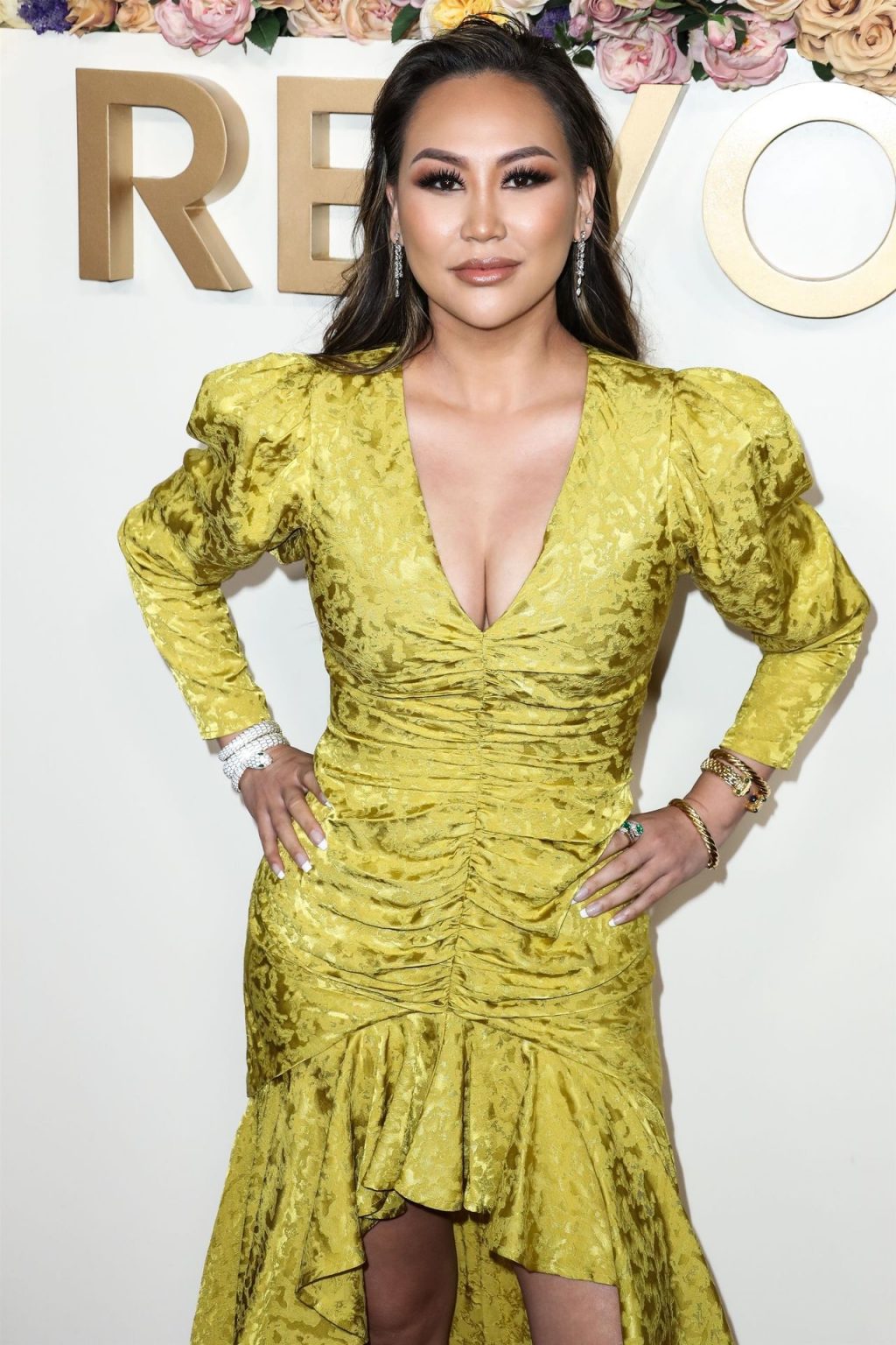 Звезда реалити-шоу Дороти Ванг была замечена в желтом платье на 3-й ежегодной церемонии #REVOLVEawards 2019, которая проходила в Goya Studios в Голливуде, 15.11.2019.