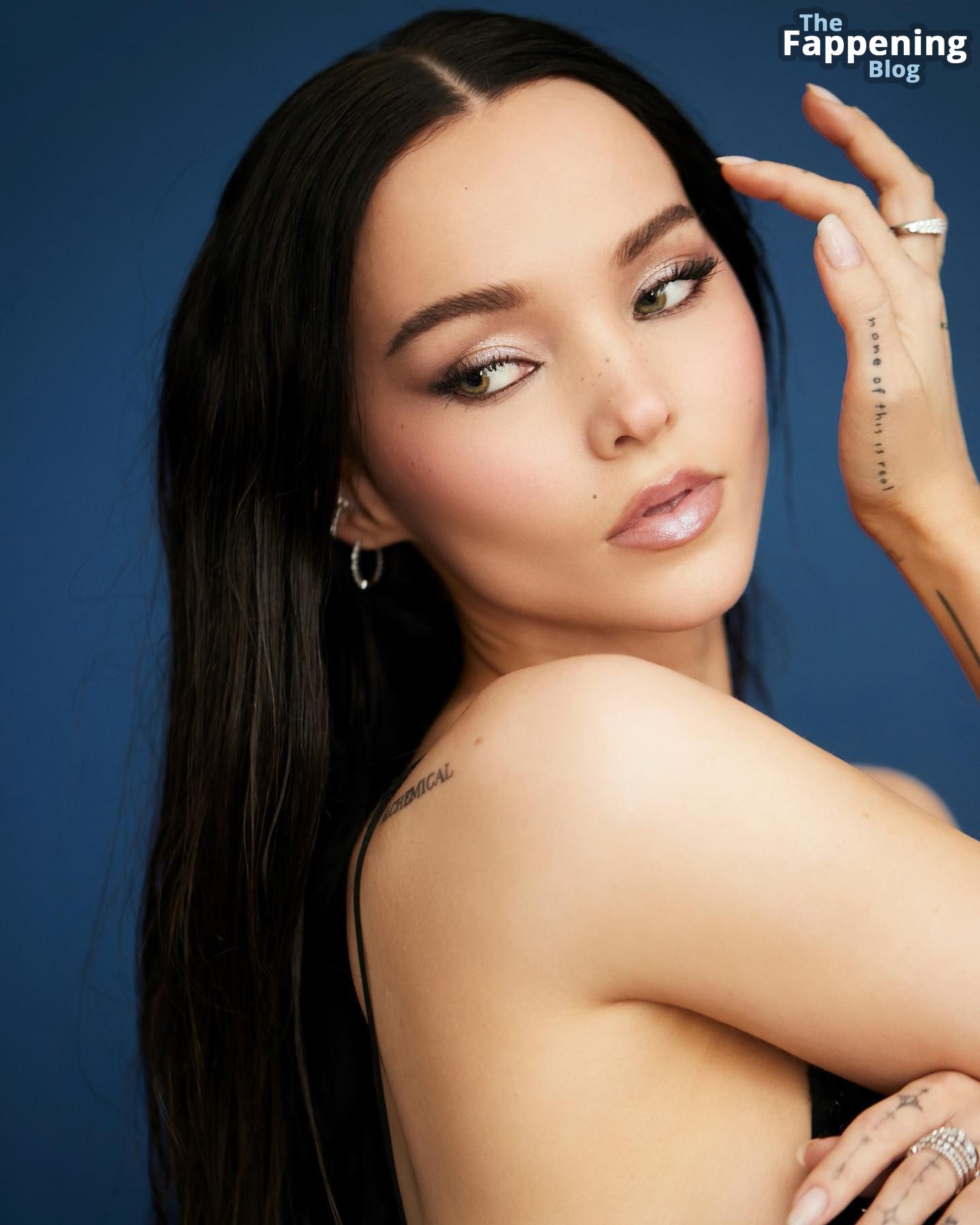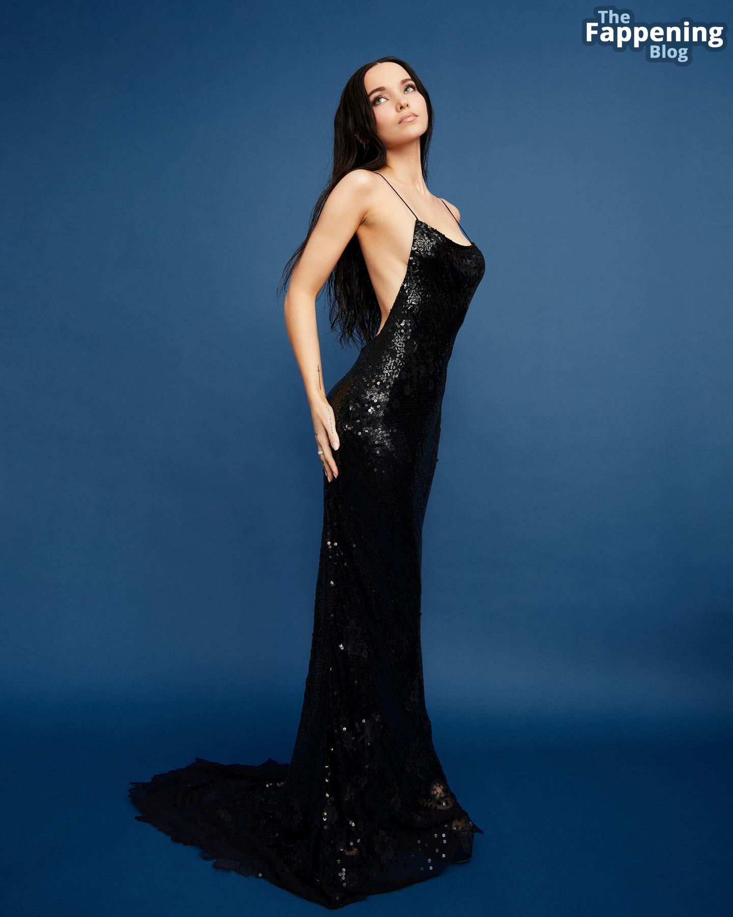 Dove Cameron просто сражает наповал с потрясающим декольте и большими грудями в сексуальном черном платье без спинки на фотосессии для MTV Video Music Awards.