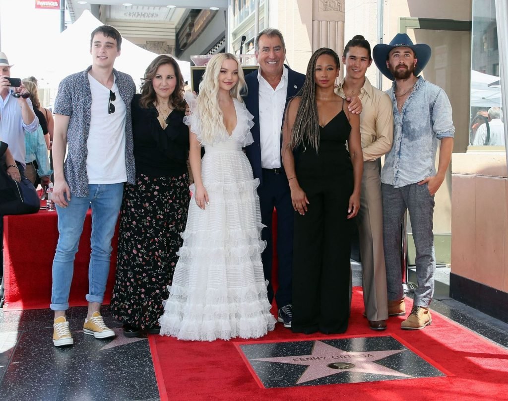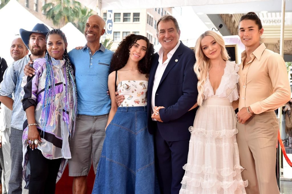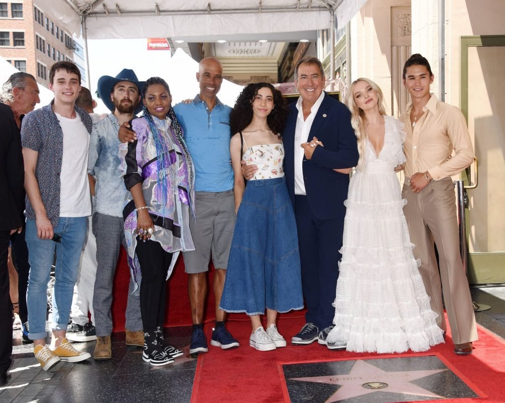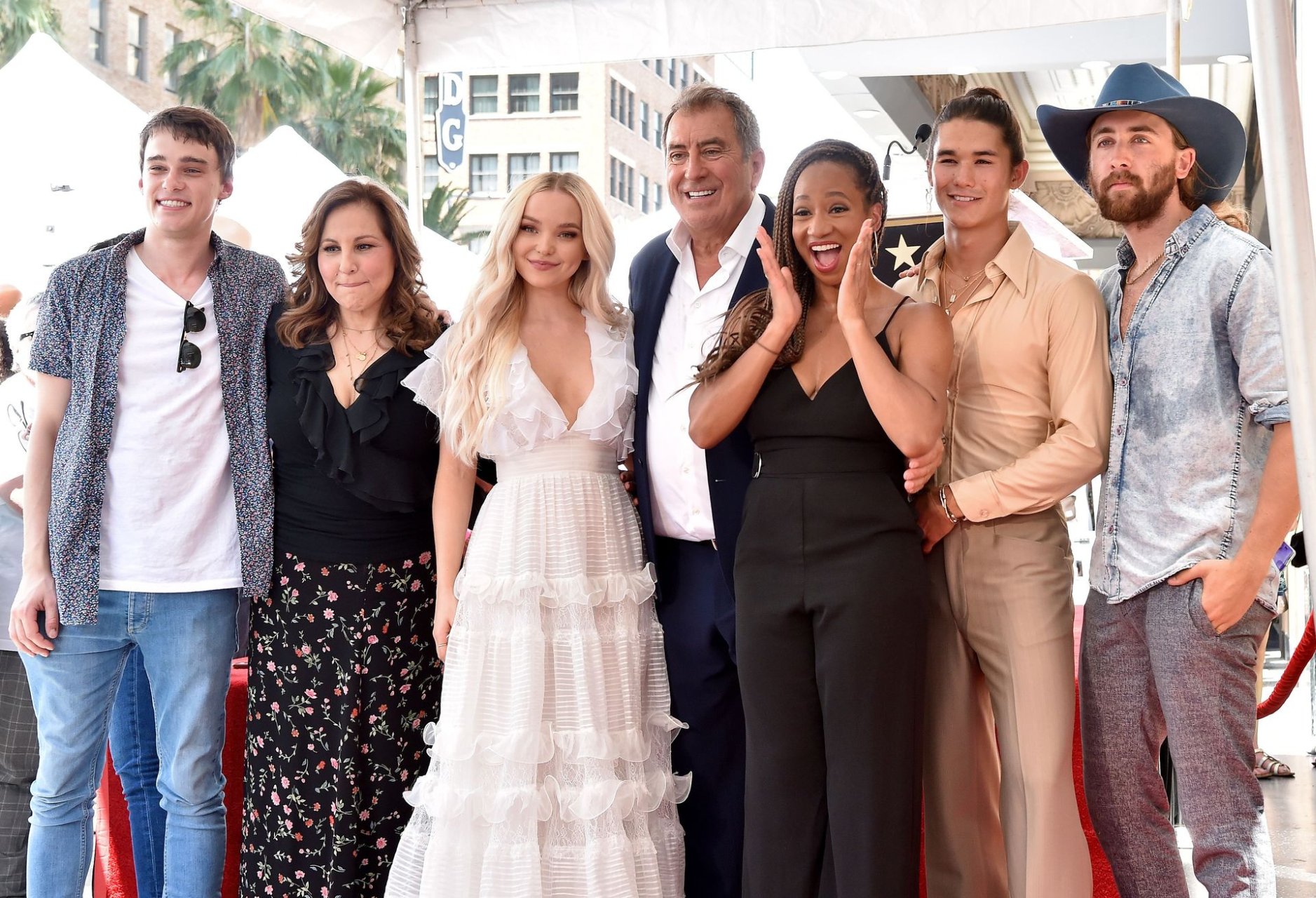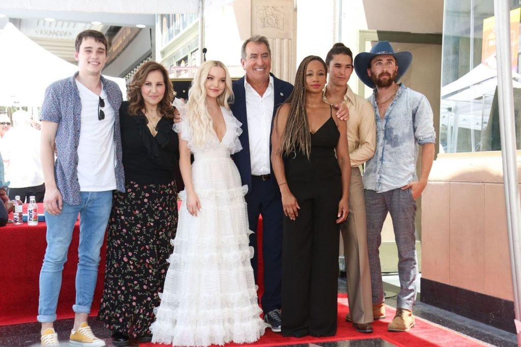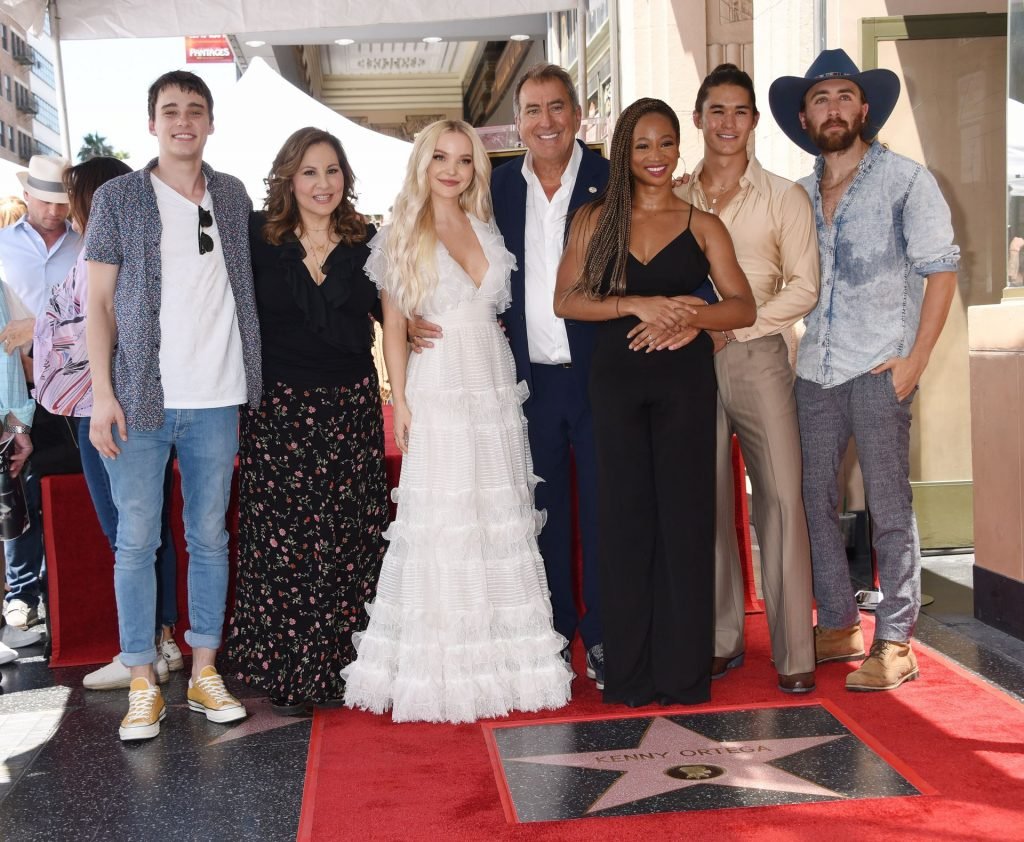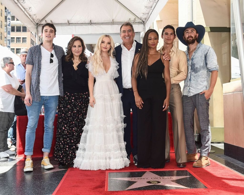 Dove Cameron и актерский состав “Наследников” впервые появились на публике после смерти Камерона Бойса на церемонии чествования Кенни Ортеги на Аллее славы в Лос-Анджелесе, 24.07.2019.