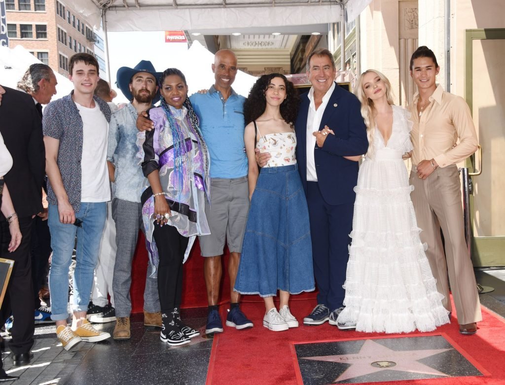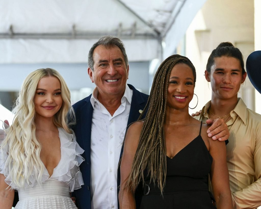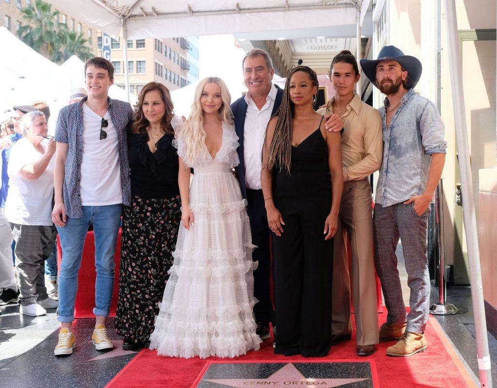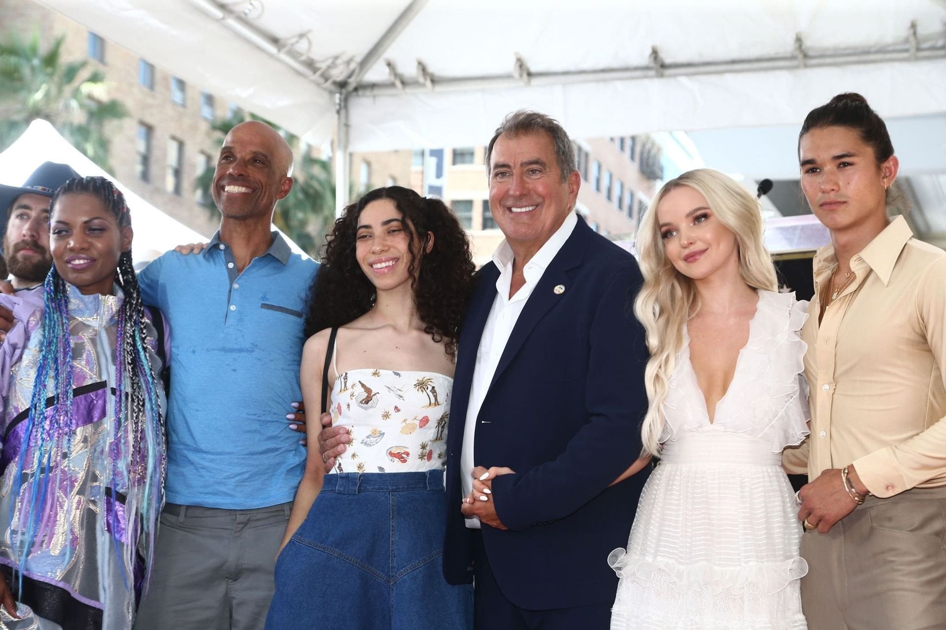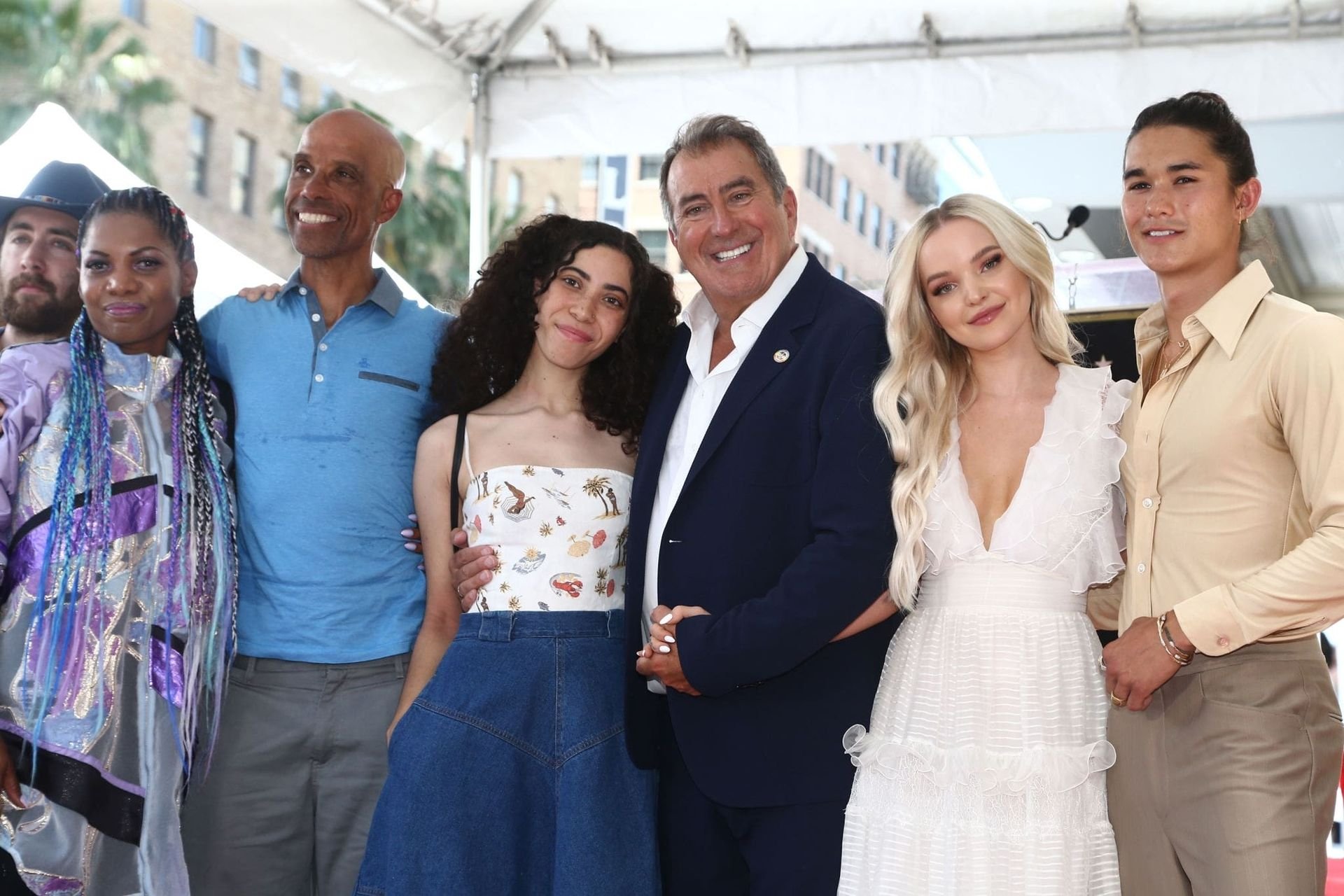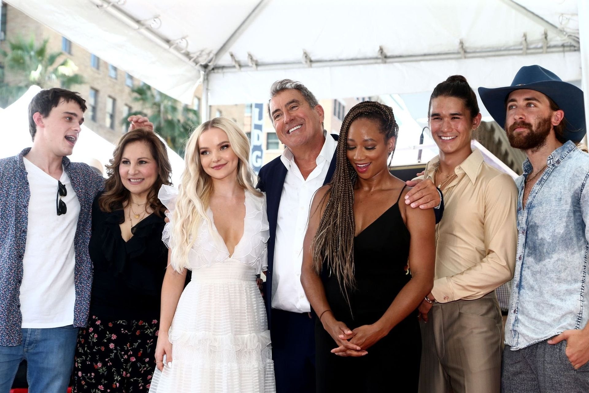 Dove Cameron и актерский состав “Наследников” впервые появились на публике после смерти Камерона Бойса на церемонии чествования Кенни Ортеги на Аллее славы в Лос-Анджелесе, 24.07.2019.
