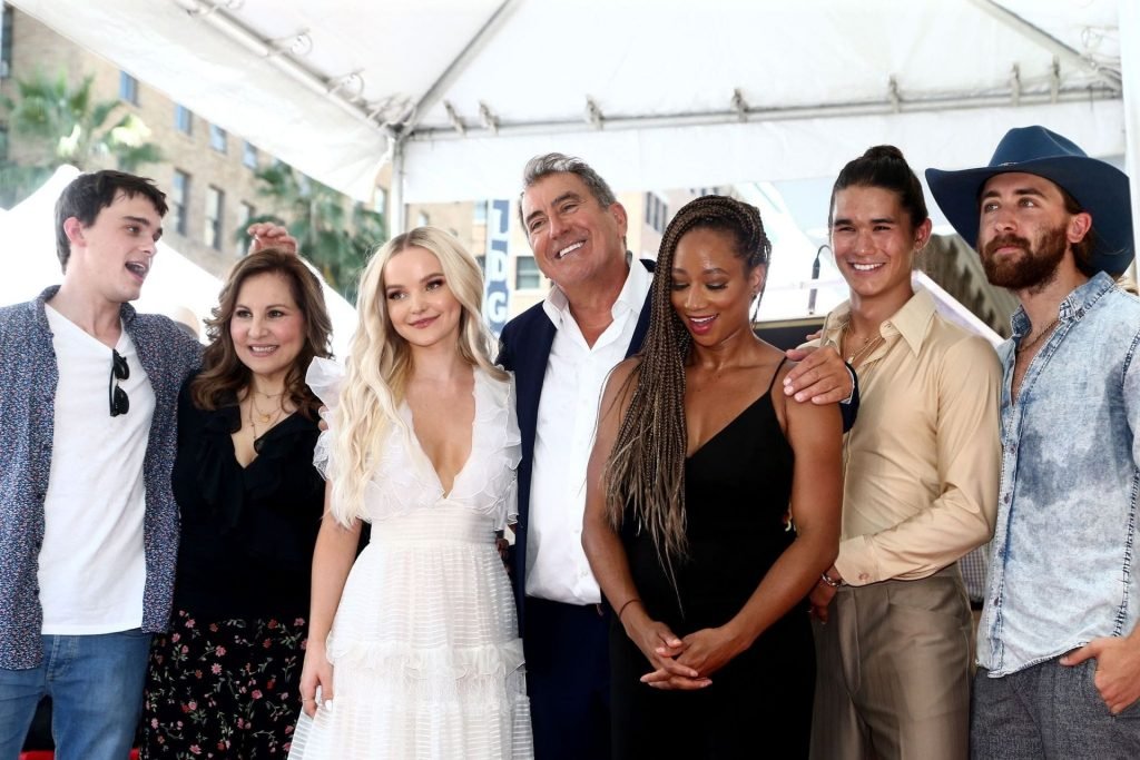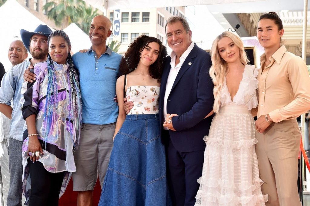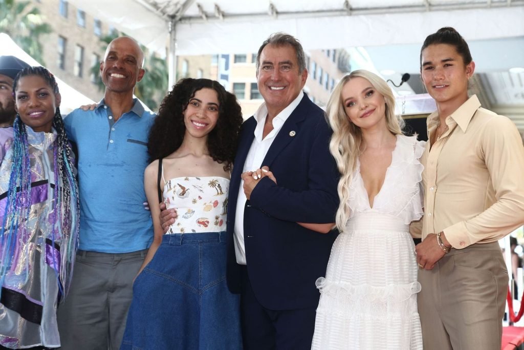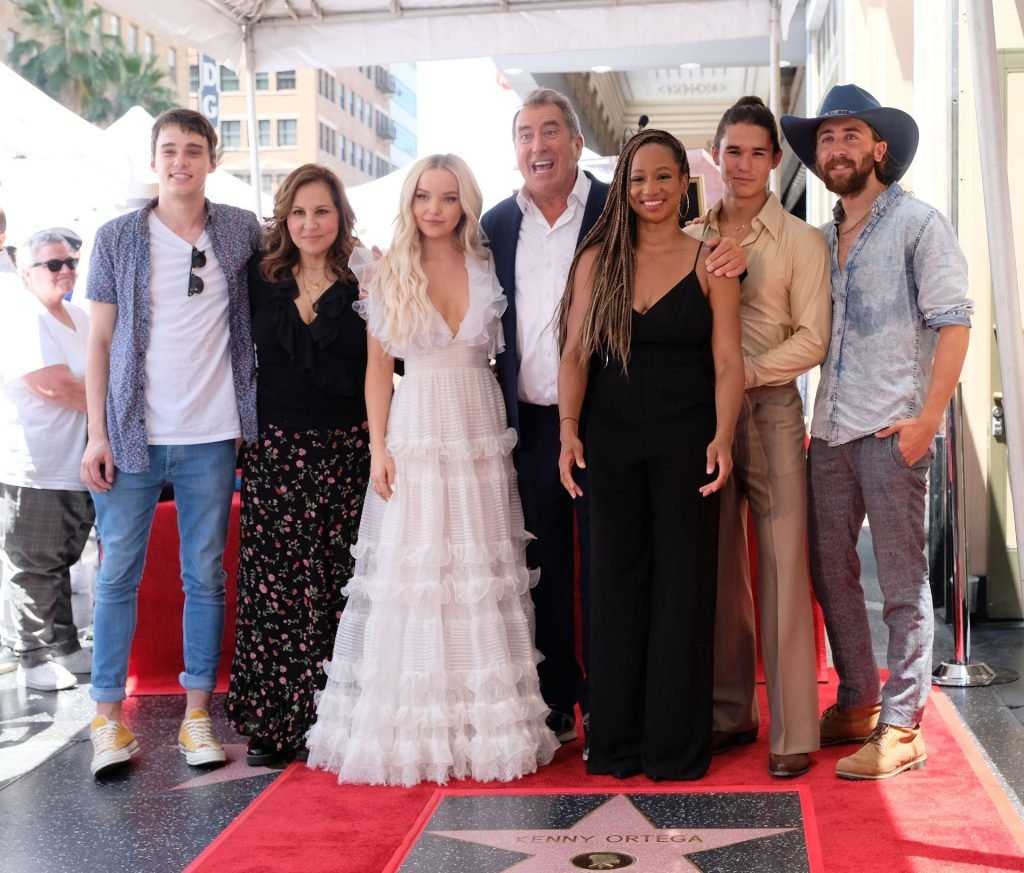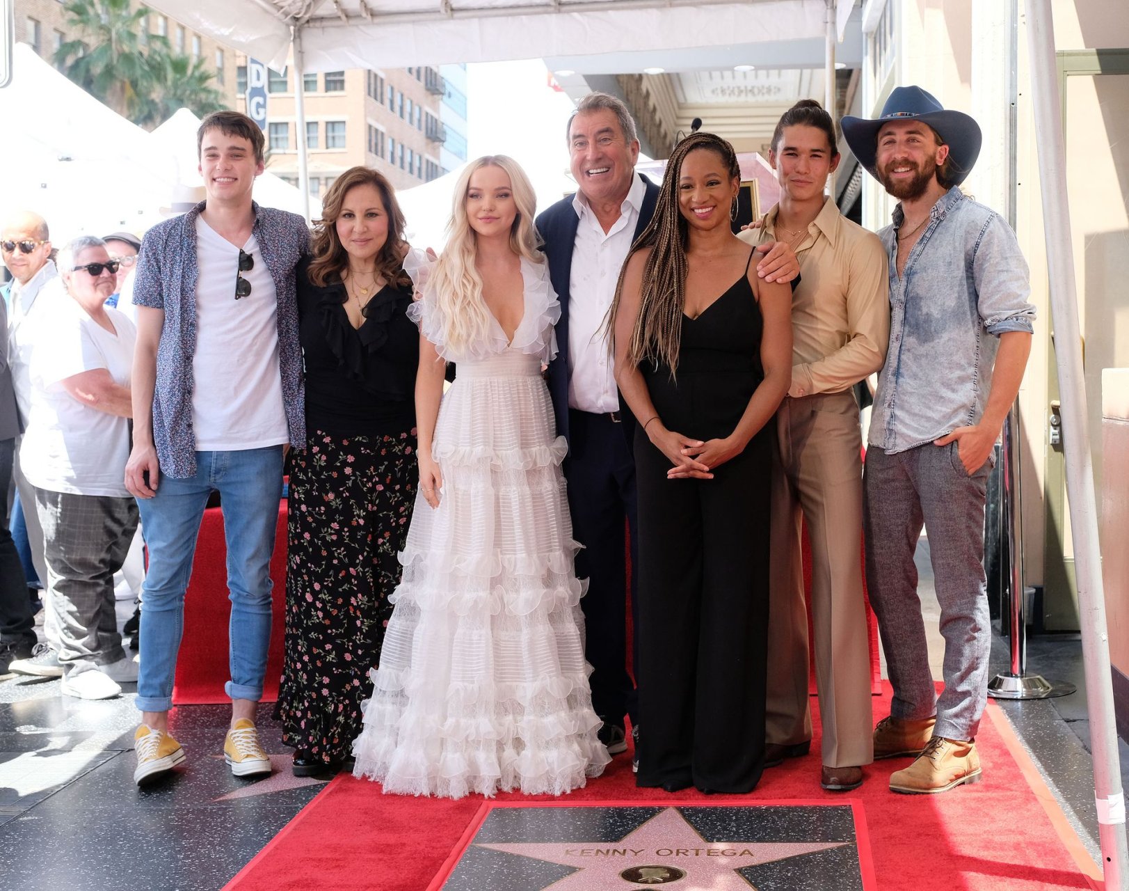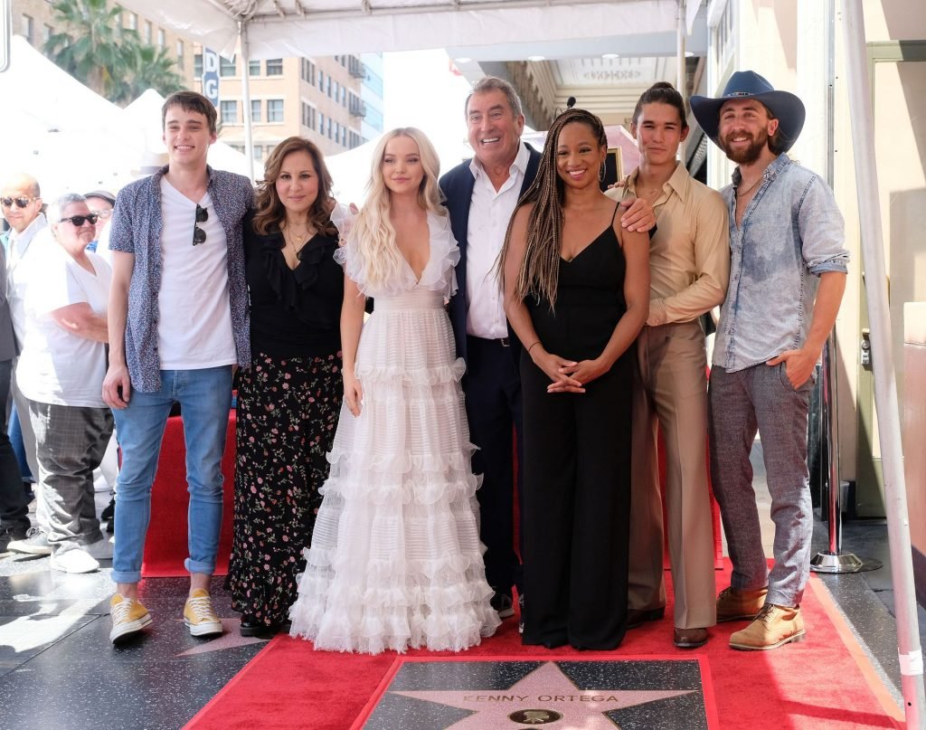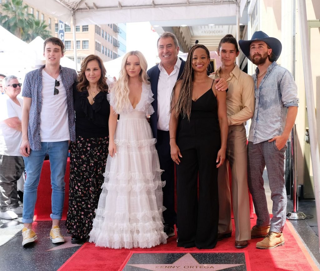 Dove Cameron и актерский состав “Наследников” впервые появились на публике после смерти Камерона Бойса на церемонии чествования Кенни Ортеги на Аллее славы в Лос-Анджелесе, 24.07.2019.