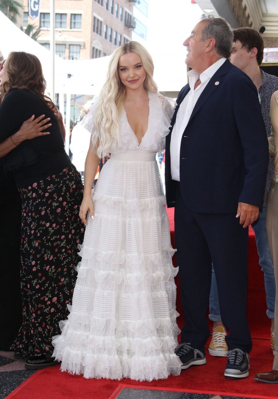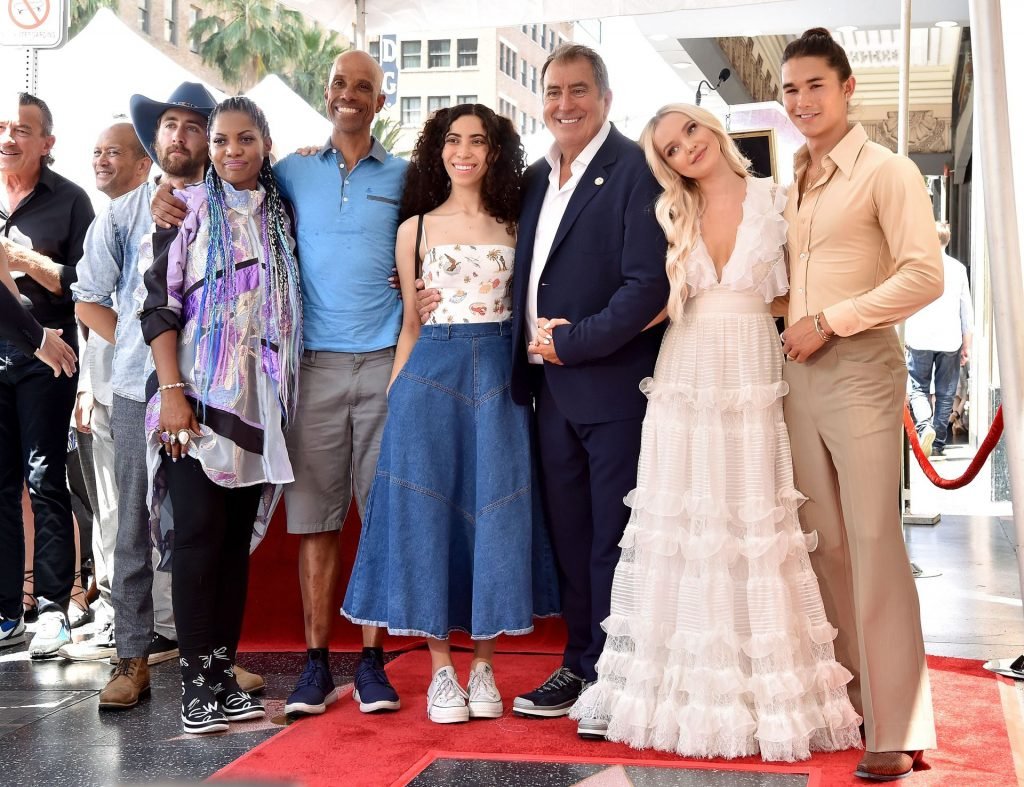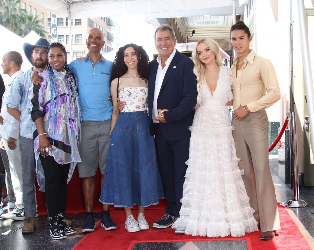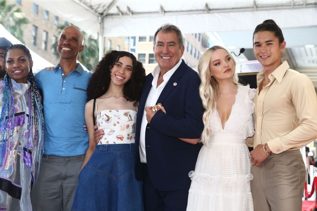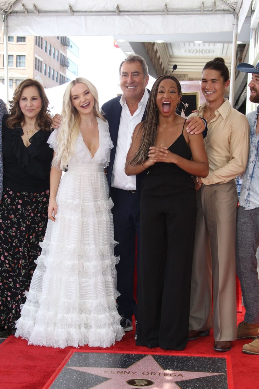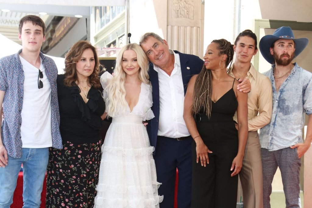 Dove Cameron и актерский состав “Наследников” впервые появились на публике после смерти Камерона Бойса на церемонии чествования Кенни Ортеги на Аллее славы в Лос-Анджелесе, 24.07.2019.