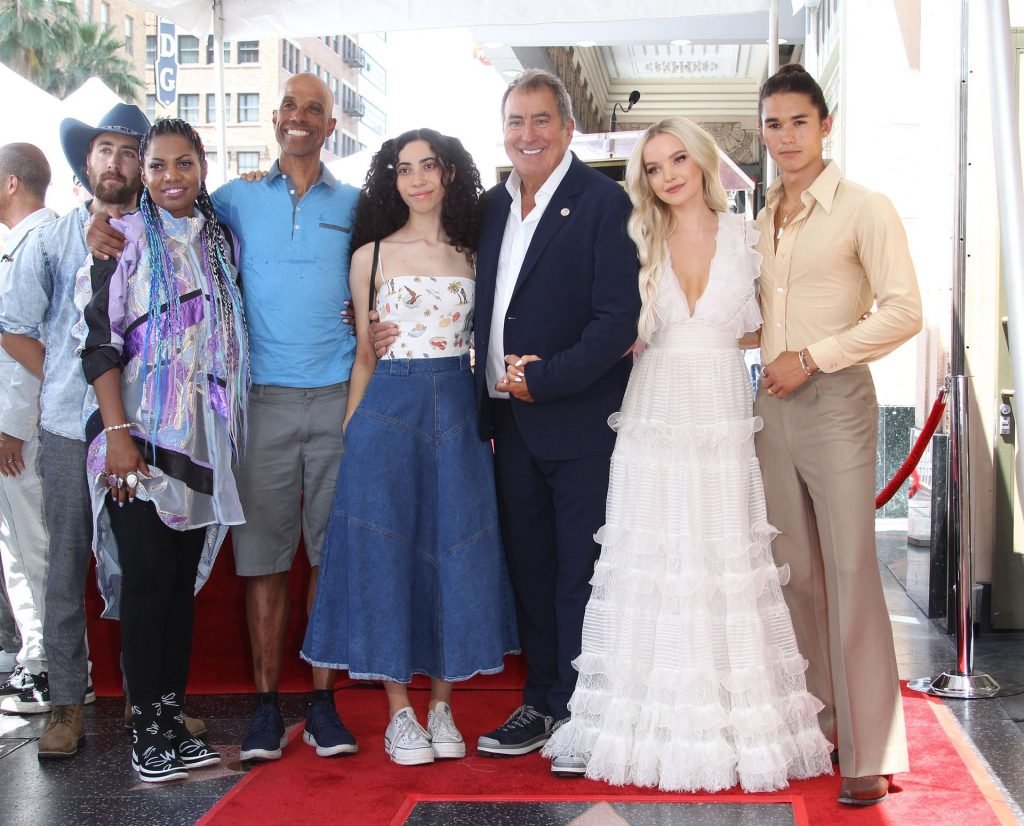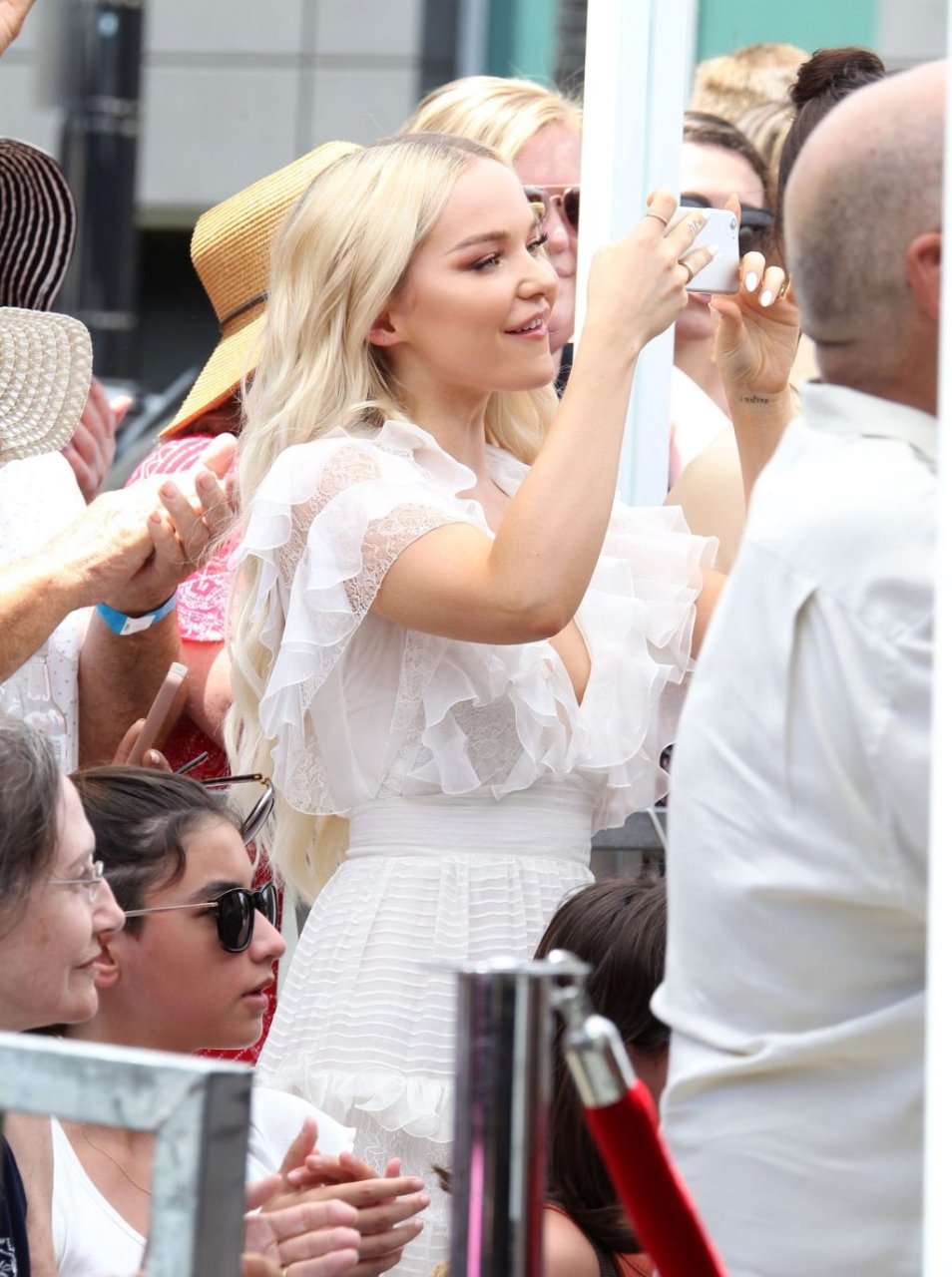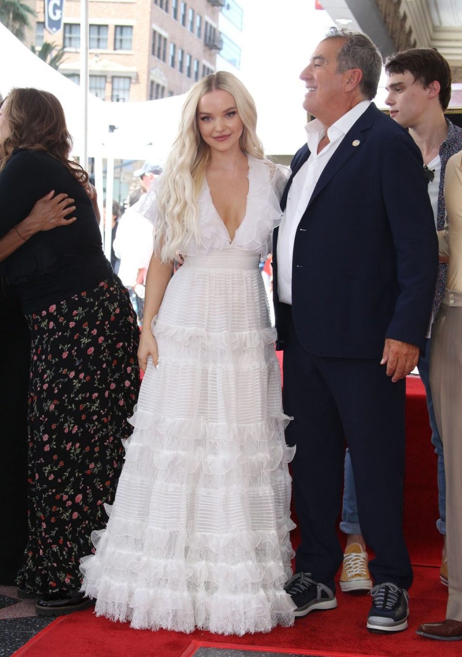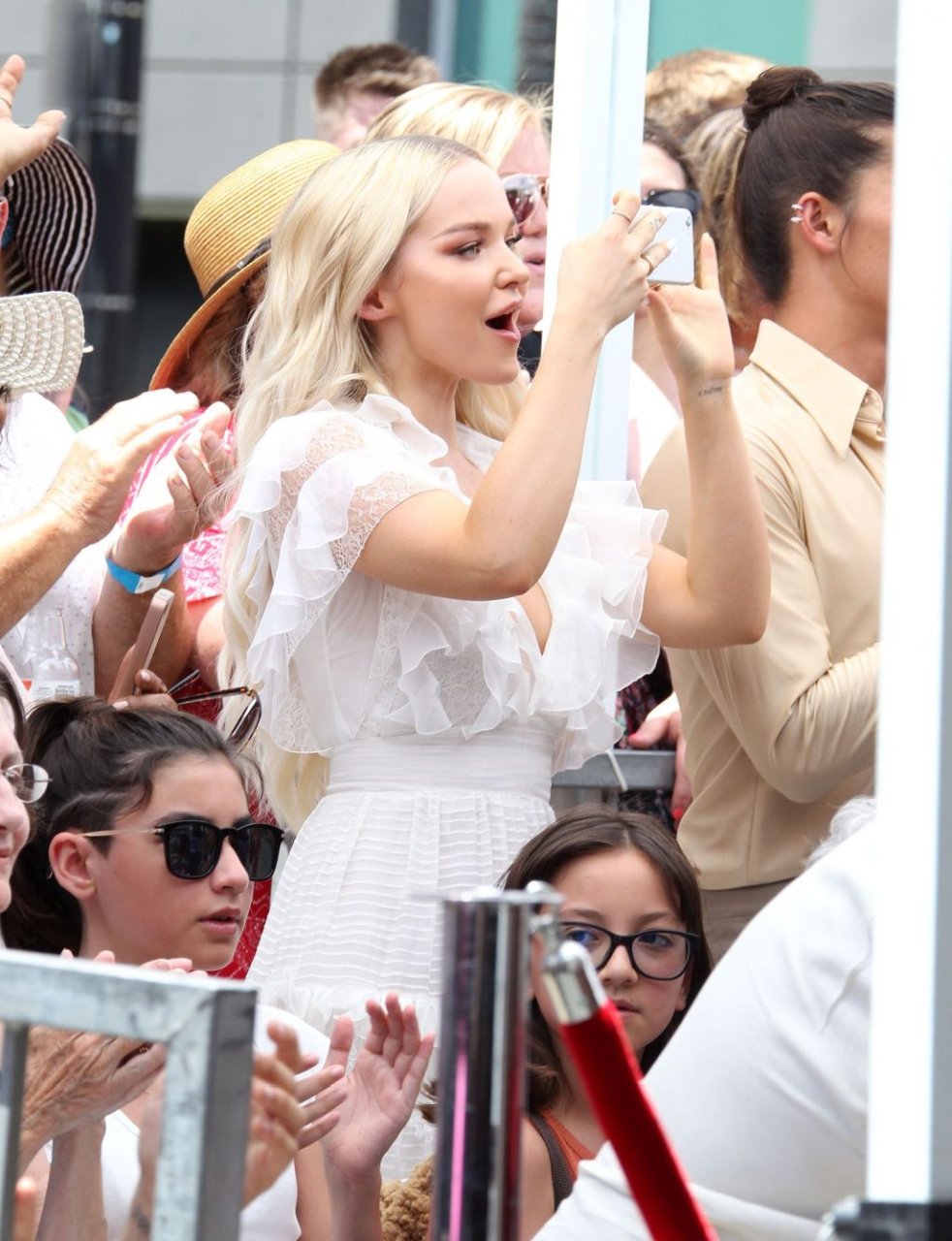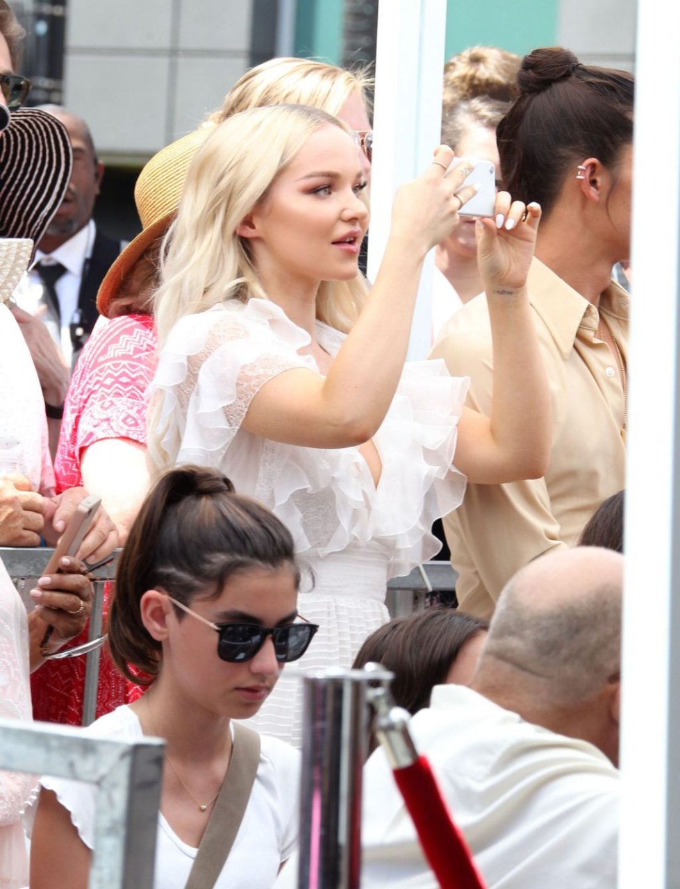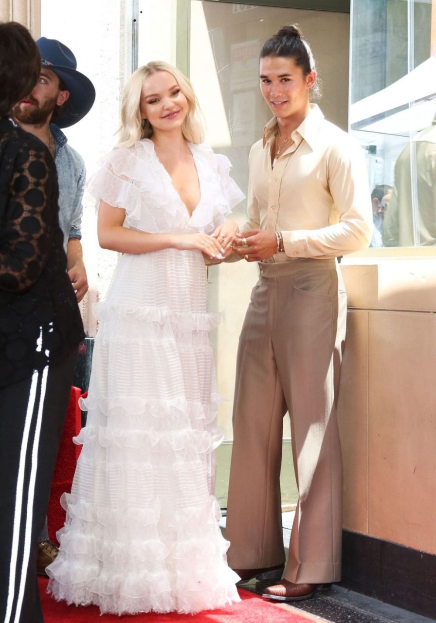 Dove Cameron и актерский состав “Наследников” впервые появились на публике после смерти Камерона Бойса на церемонии чествования Кенни Ортеги на Аллее славы в Лос-Анджелесе, 24.07.2019.