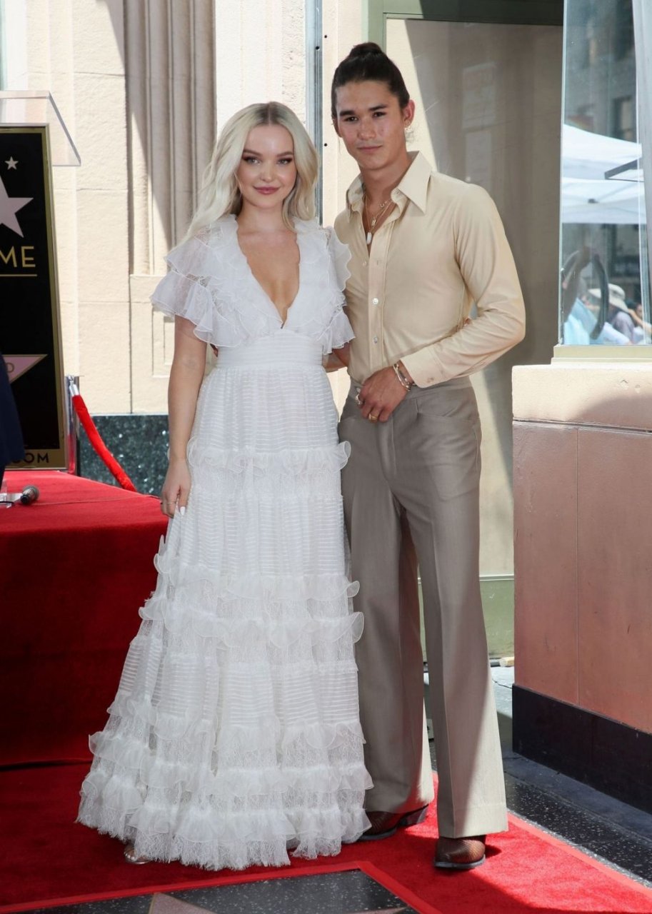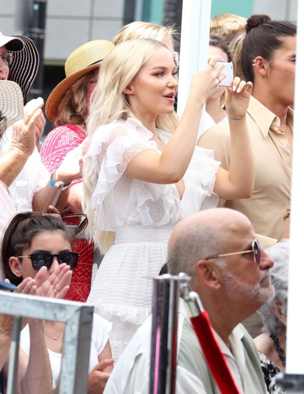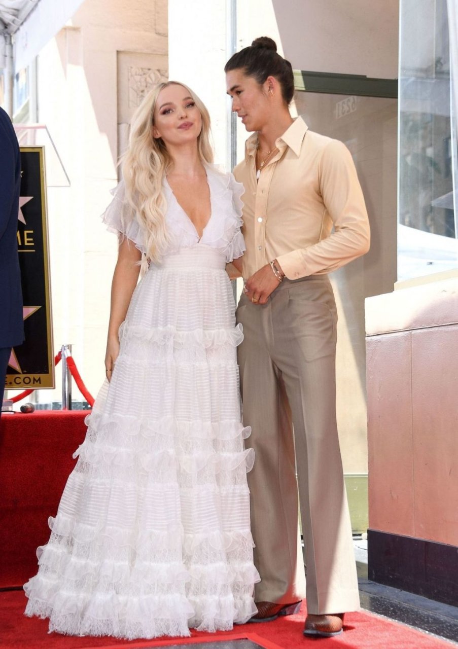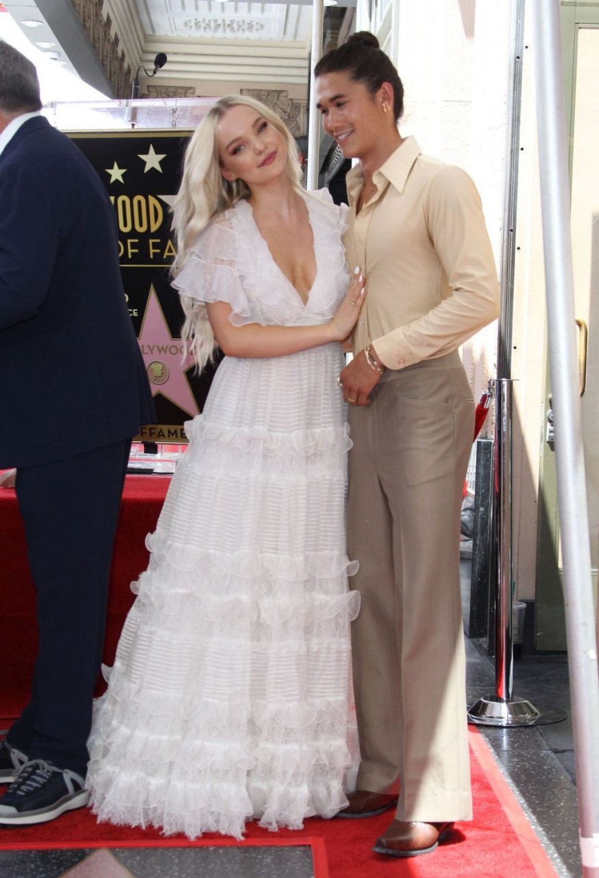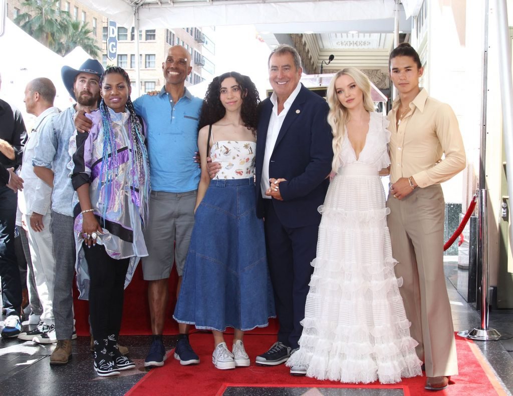 Dove Cameron и актерский состав “Наследников” впервые появились на публике после смерти Камерона Бойса на церемонии чествования Кенни Ортеги на Аллее славы в Лос-Анджелесе, 24.07.2019.