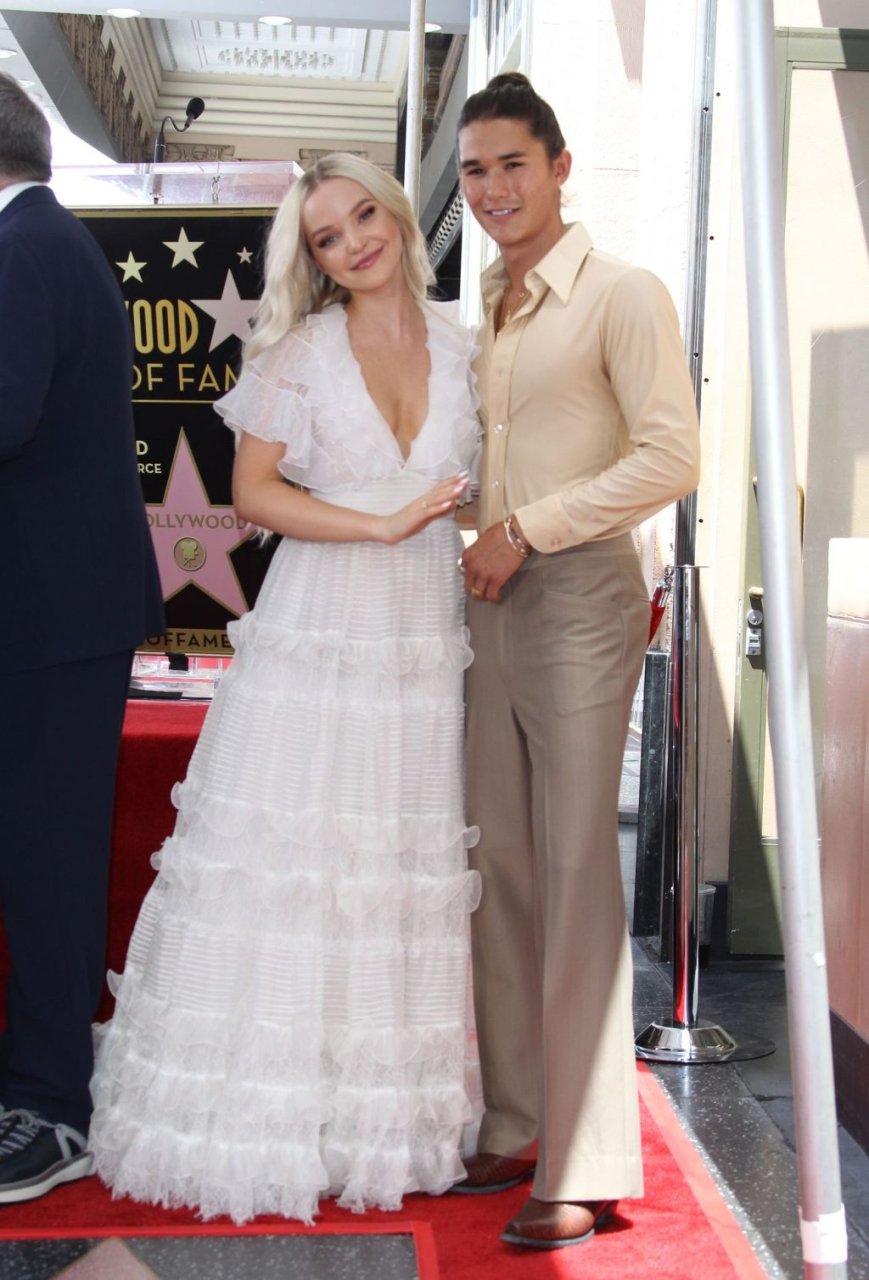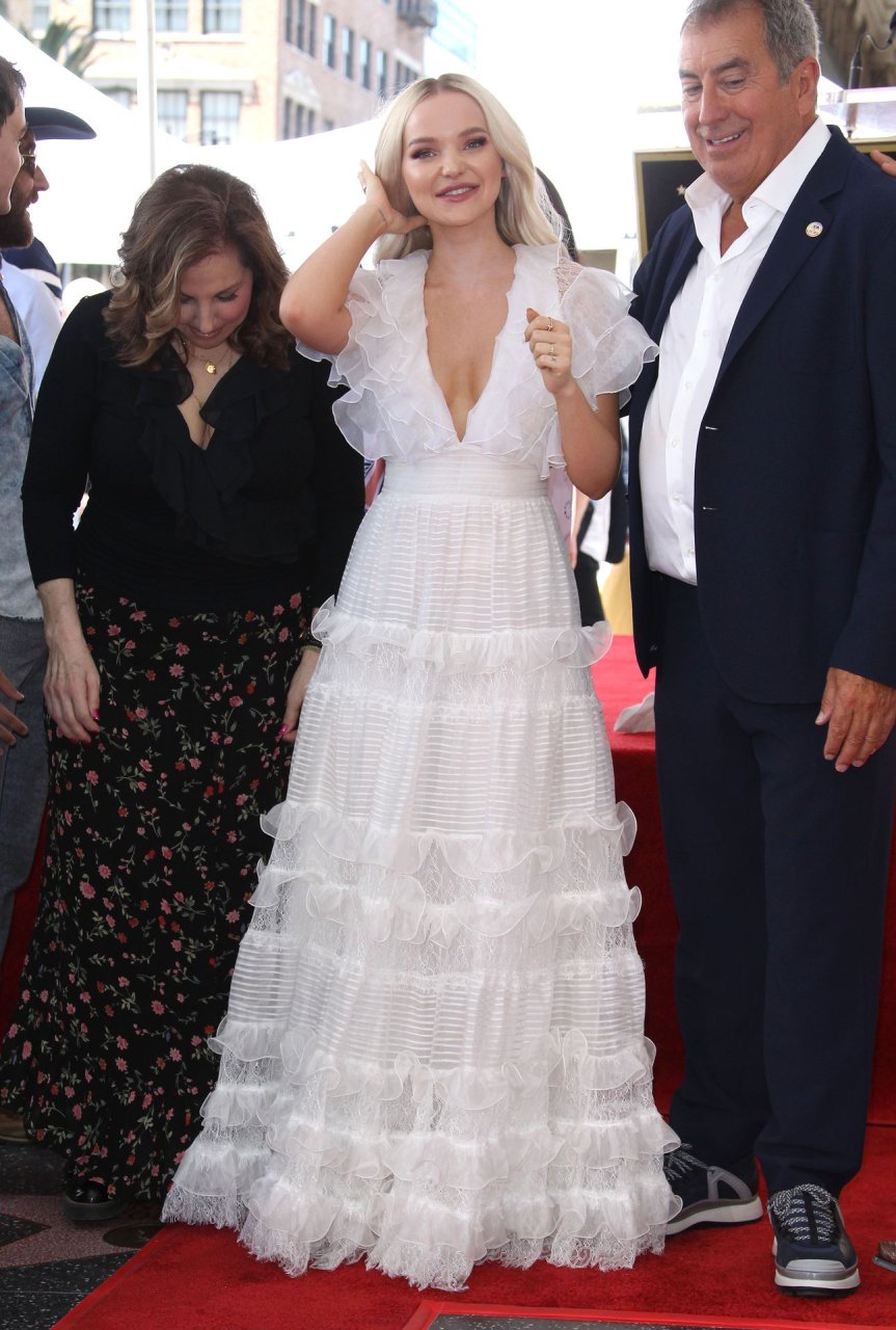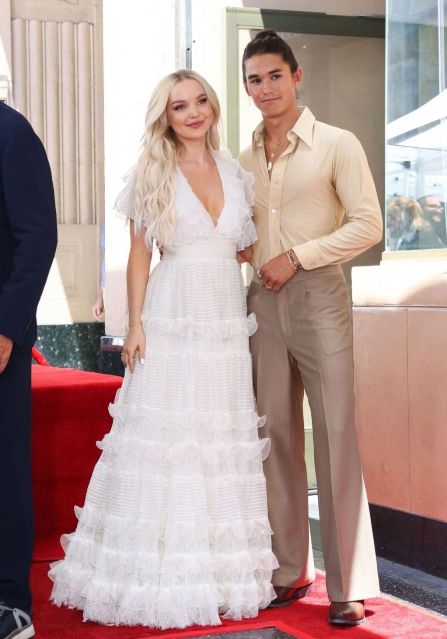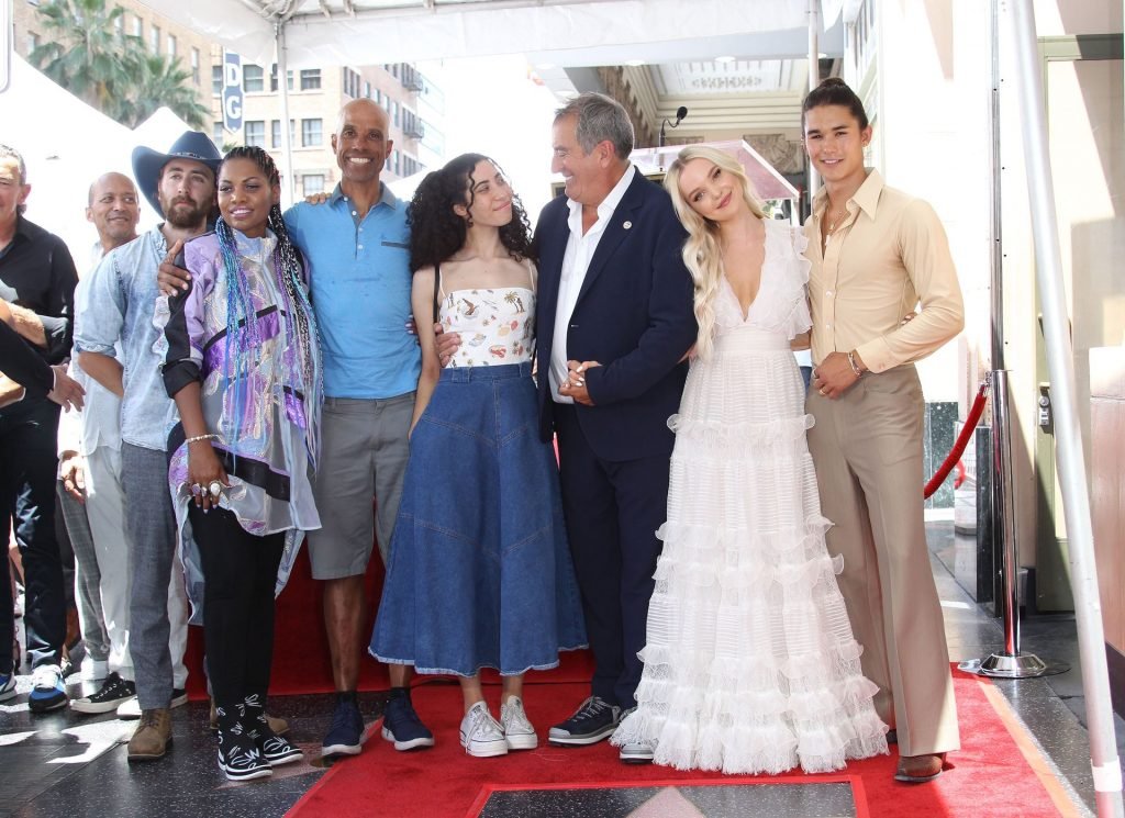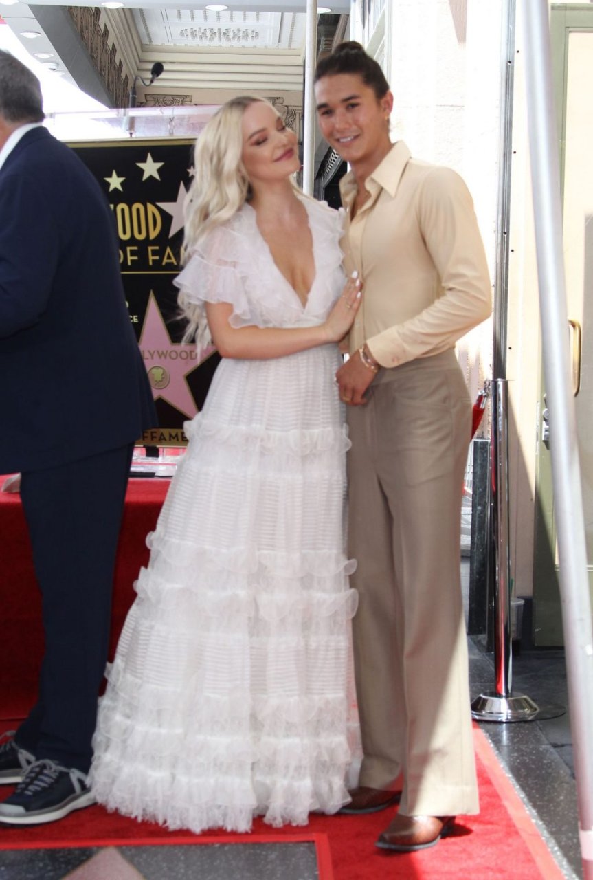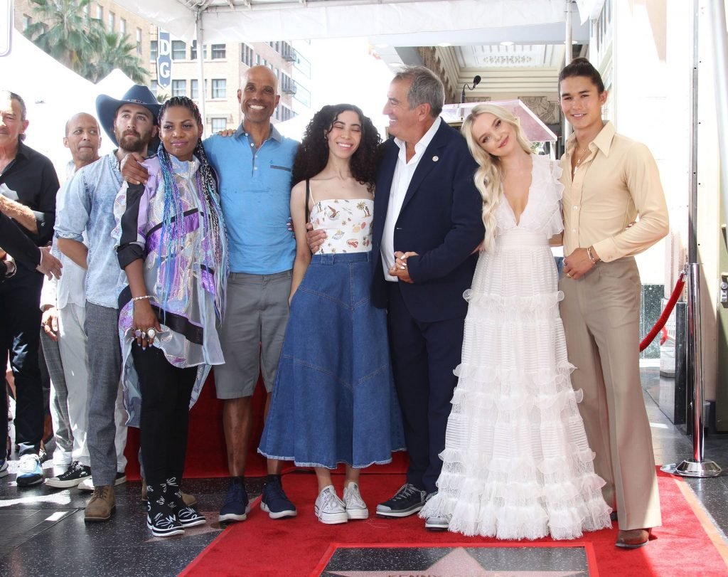 Dove Cameron и актерский состав “Наследников” впервые появились на публике после смерти Камерона Бойса на церемонии чествования Кенни Ортеги на Аллее славы в Лос-Анджелесе, 24.07.2019.