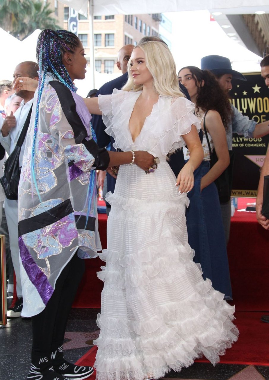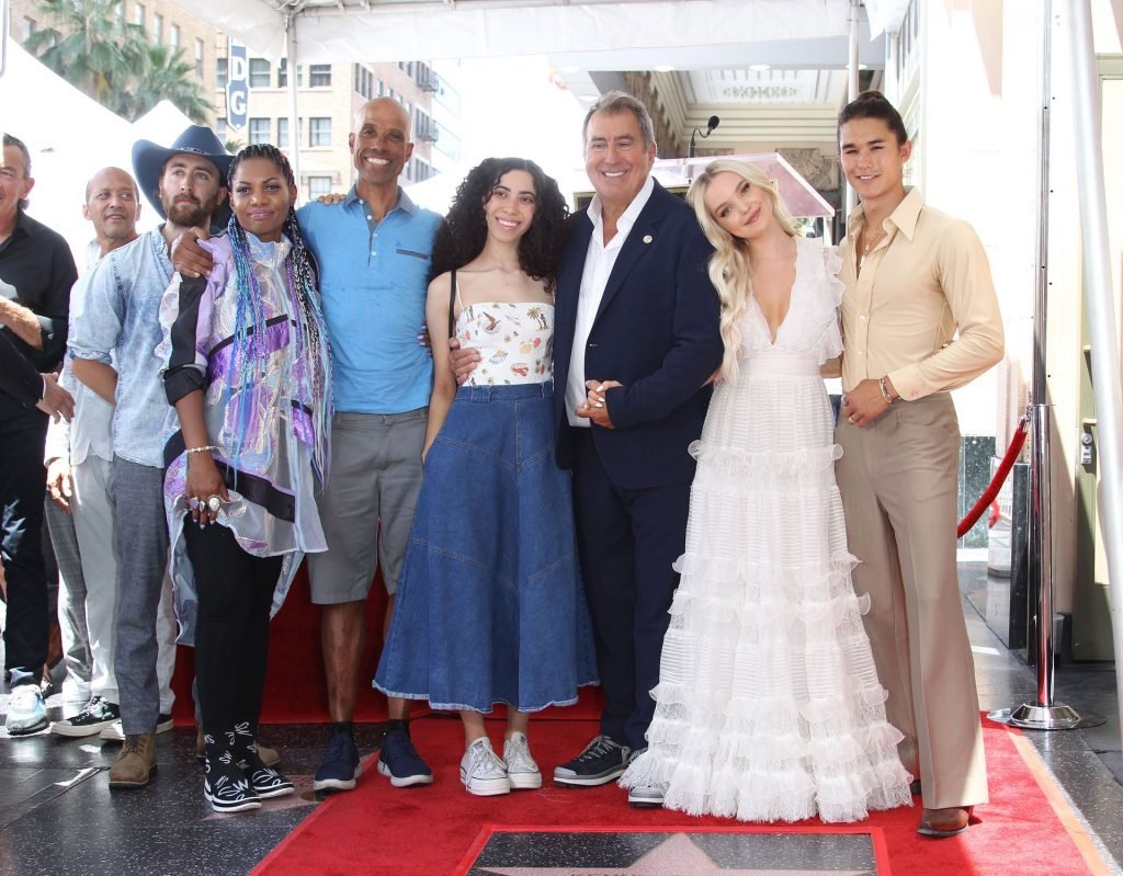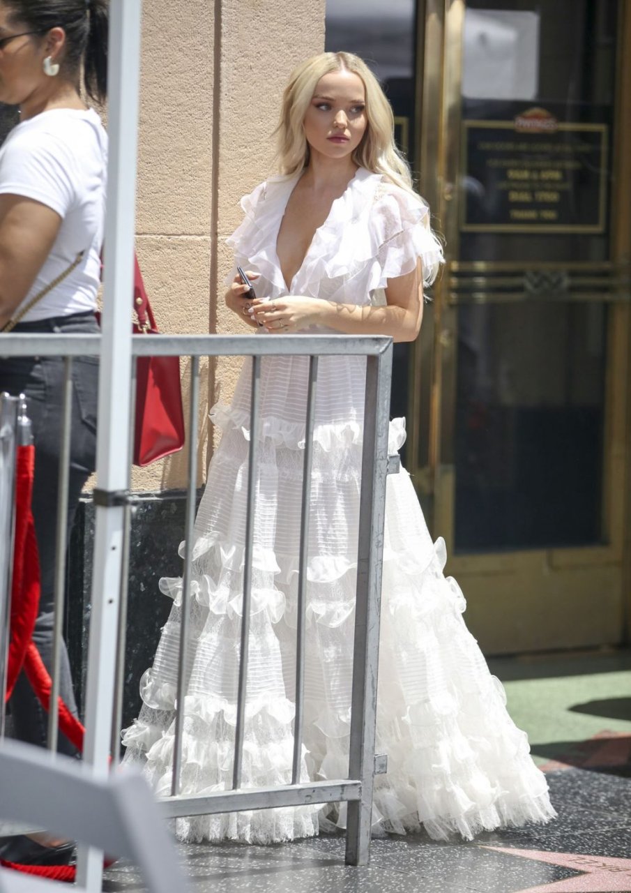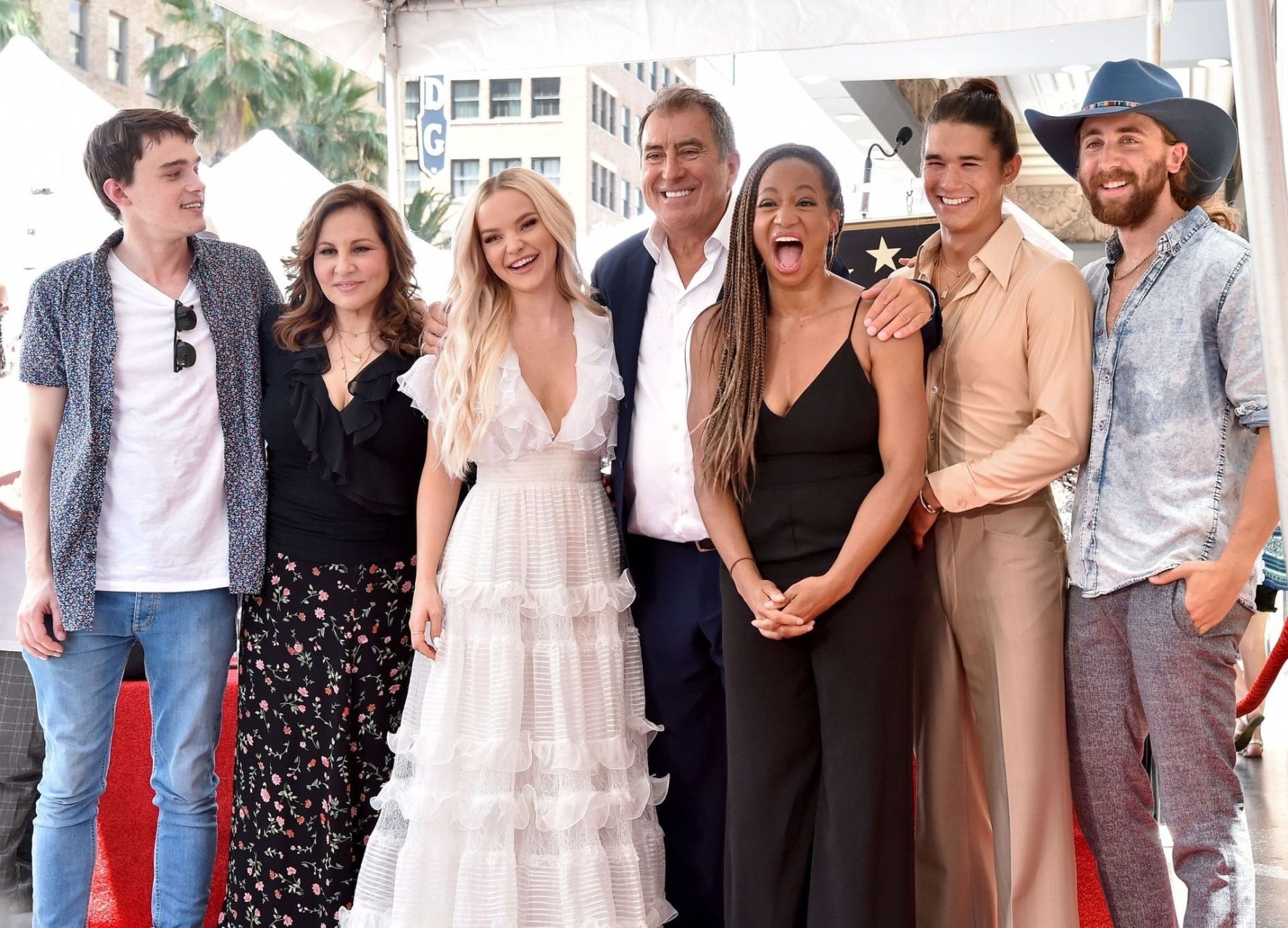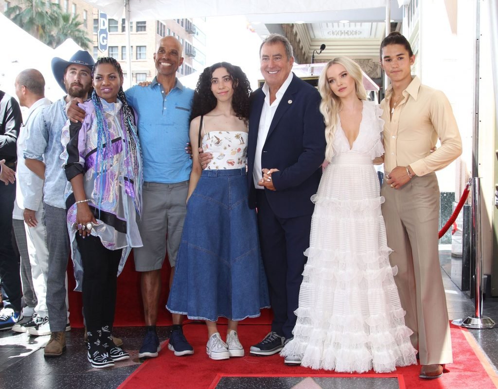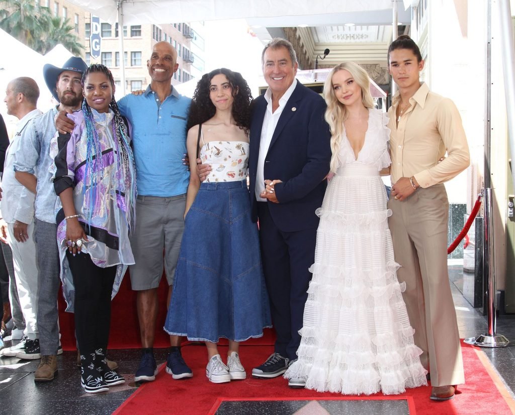 Dove Cameron и актерский состав “Наследников” впервые появились на публике после смерти Камерона Бойса на церемонии чествования Кенни Ортеги на Аллее славы в Лос-Анджелесе, 24.07.2019.