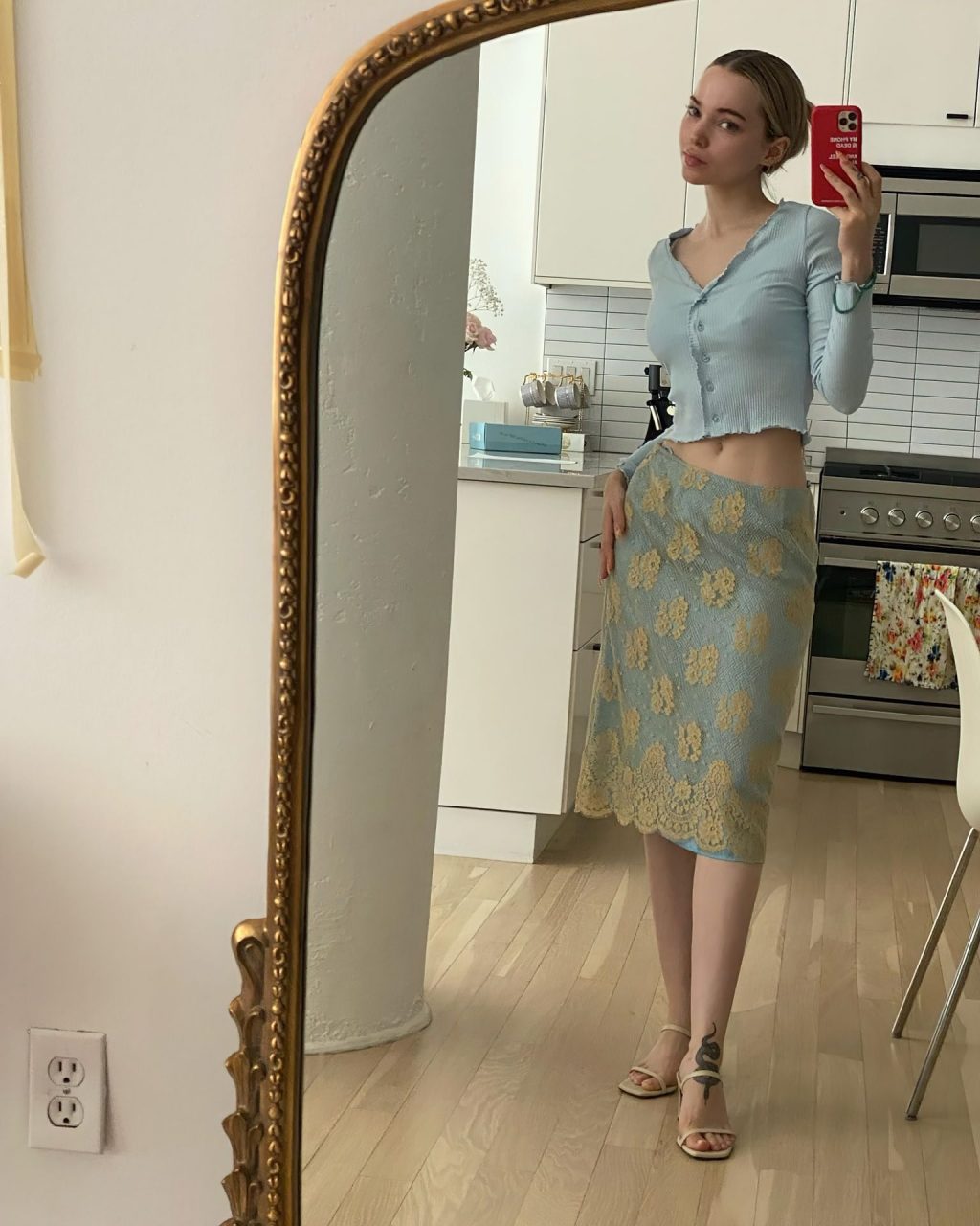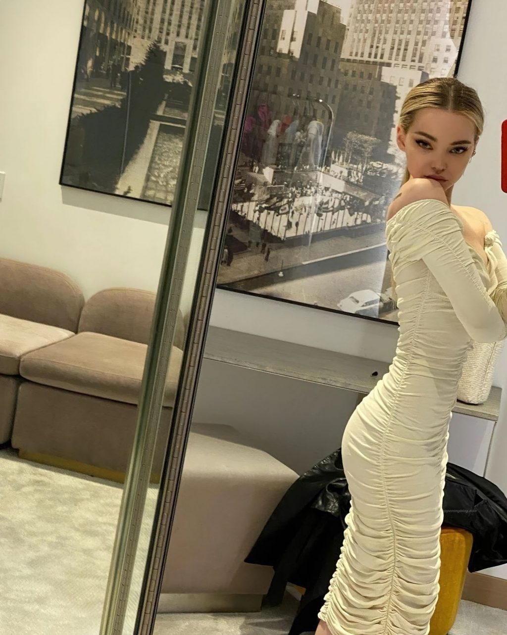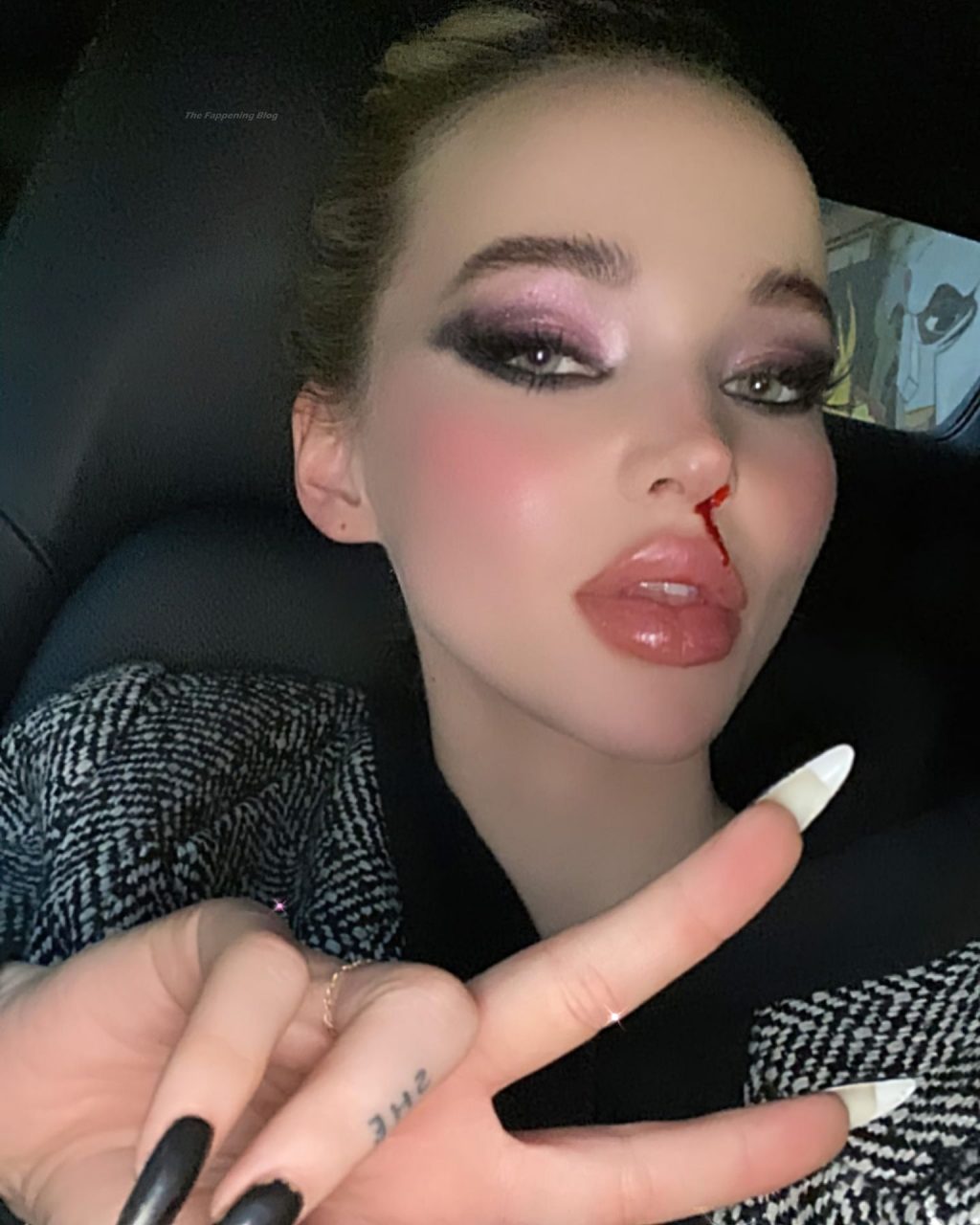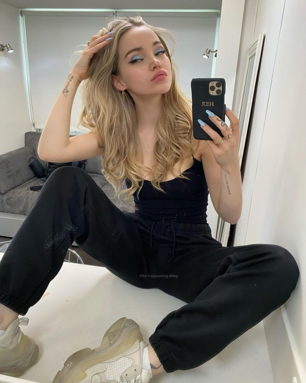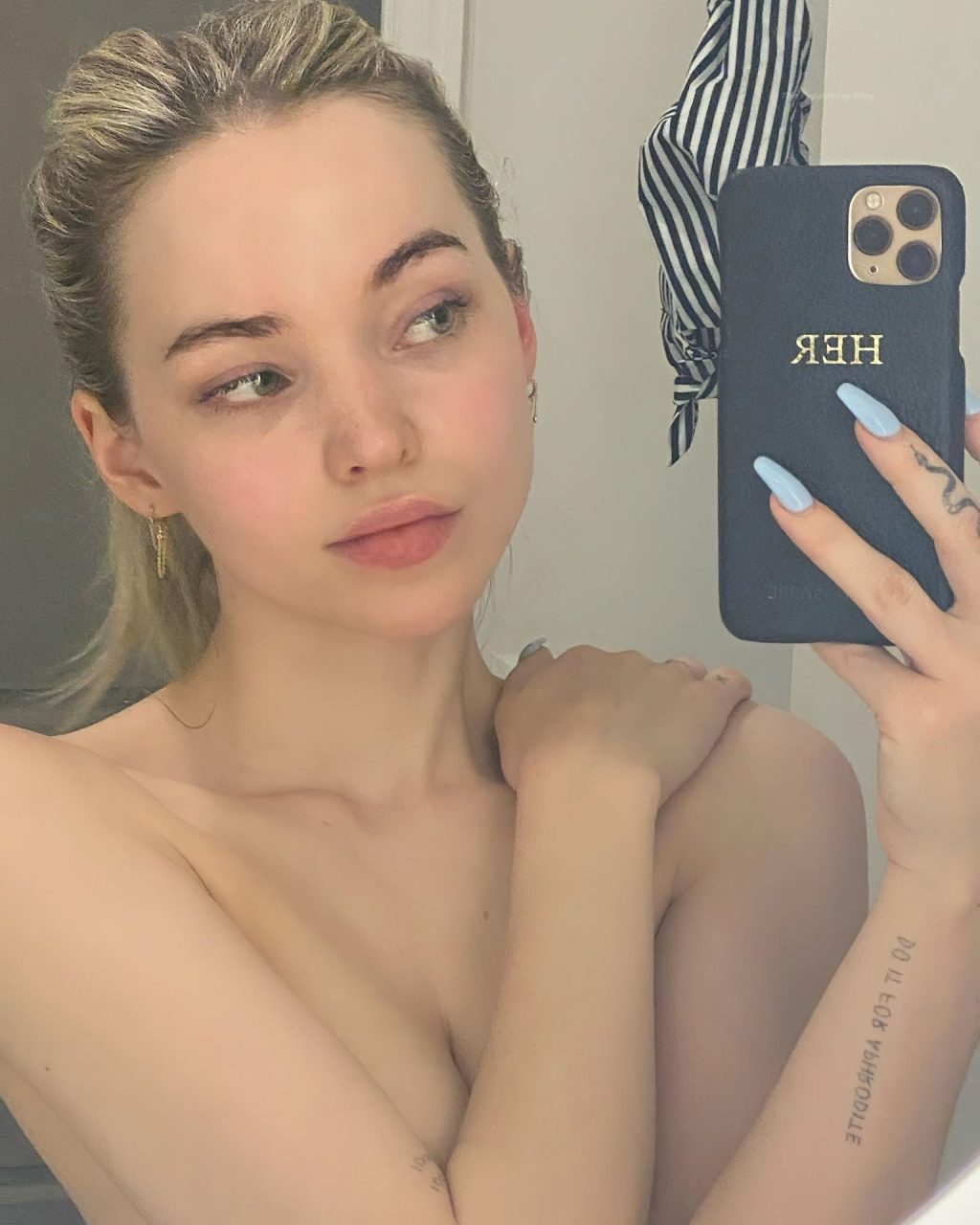 Посмотрите на обнажённые (прикрытые) и сексуальные фотографии Dove Cameron из Instagram. Актриса часто радует нас полуобнажёнными фотосессиями в социальных сетях, показывая свои груди и соски!