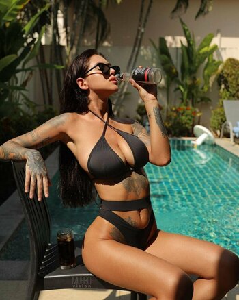 Модель показала игривый образ, находясь в воде. Она была в коричнево-бежевом купальнике из своей линии «Mint Swim».