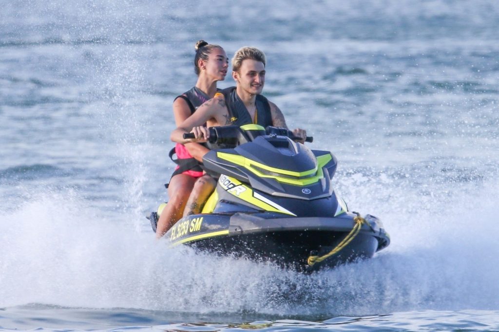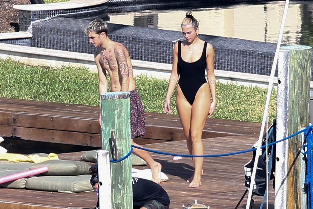Это пятница… певица Дуа Липа и её парень Анвар Хадид начинают выходные с йоги и катания на гидроцикле в Майами с друзьями, 01/03/2020.