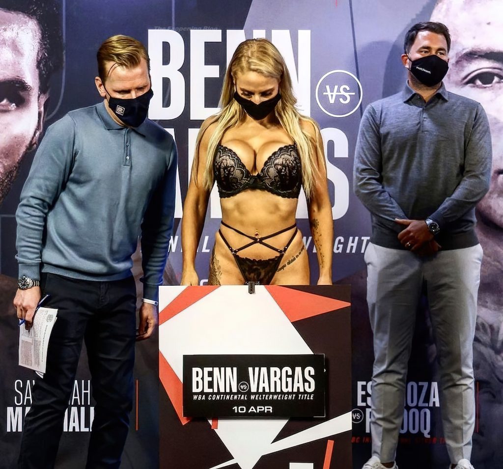 Австралийская боксерша Ebanie “Блондинка-бомбер” Бриджес демонстрирует свои искусственные сиськи перед боем за титул WBA в весовой категории бантамвейт против Шеннон Кортни во время взвешивания, 04/09/2021. Ее грудь слишком большая для WBA… но наши фанаты ждут ее наготы.