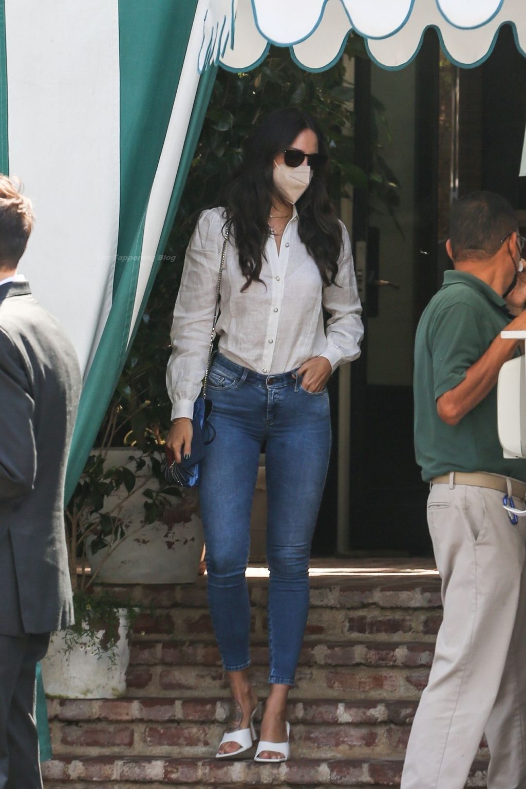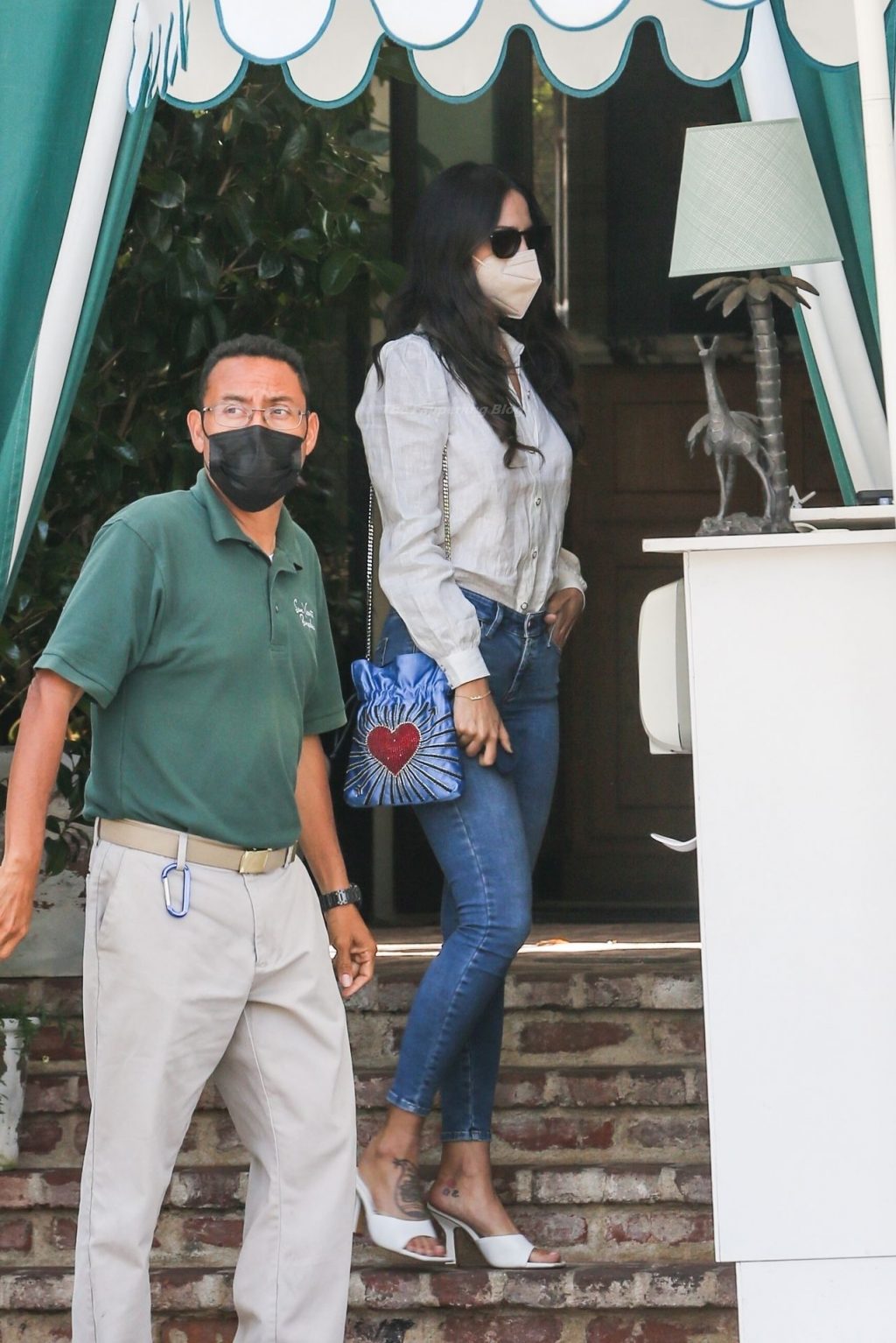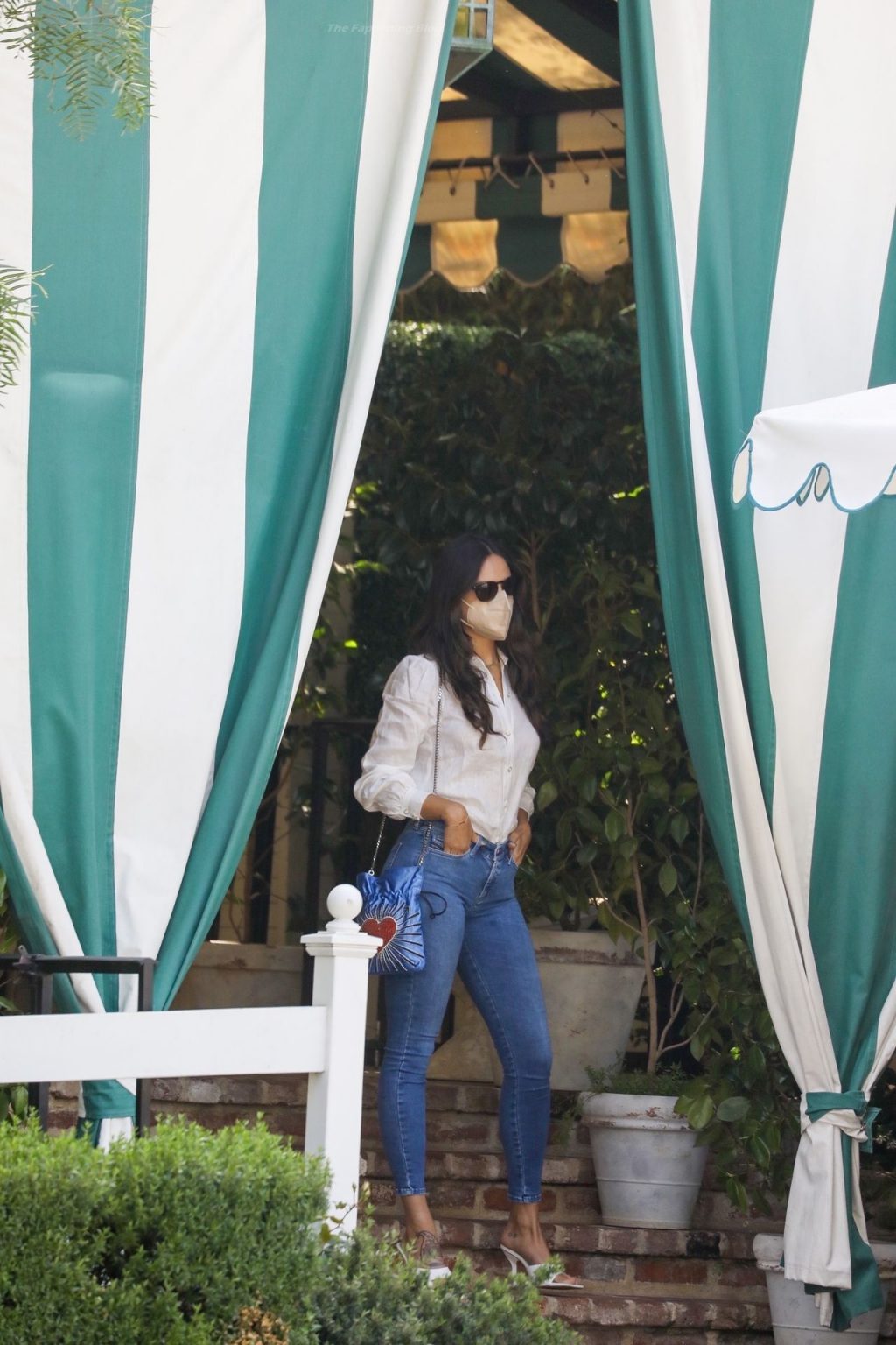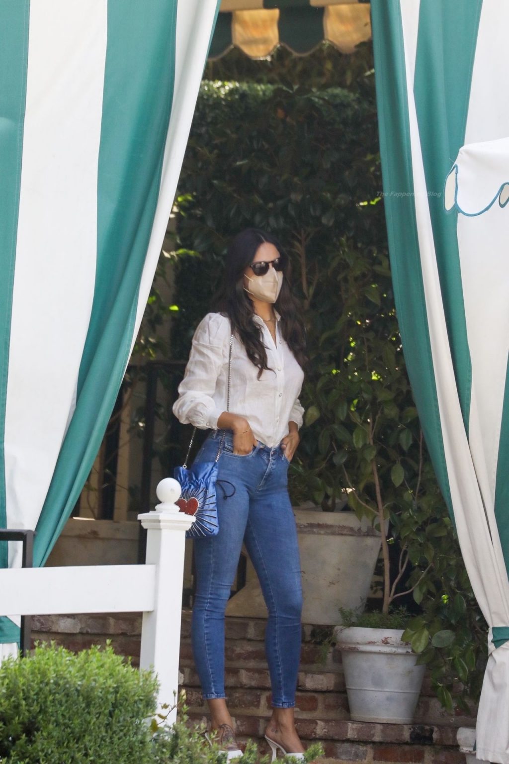 Эйза Гонсалес заканчивает обед в San Vicente Bungalows в Уэст-Голливуде, 06.05.2021. Актриса запечатлена в очень обтягивающих джинсах.