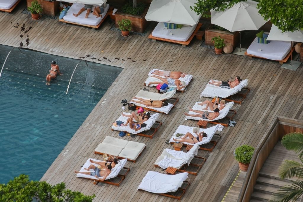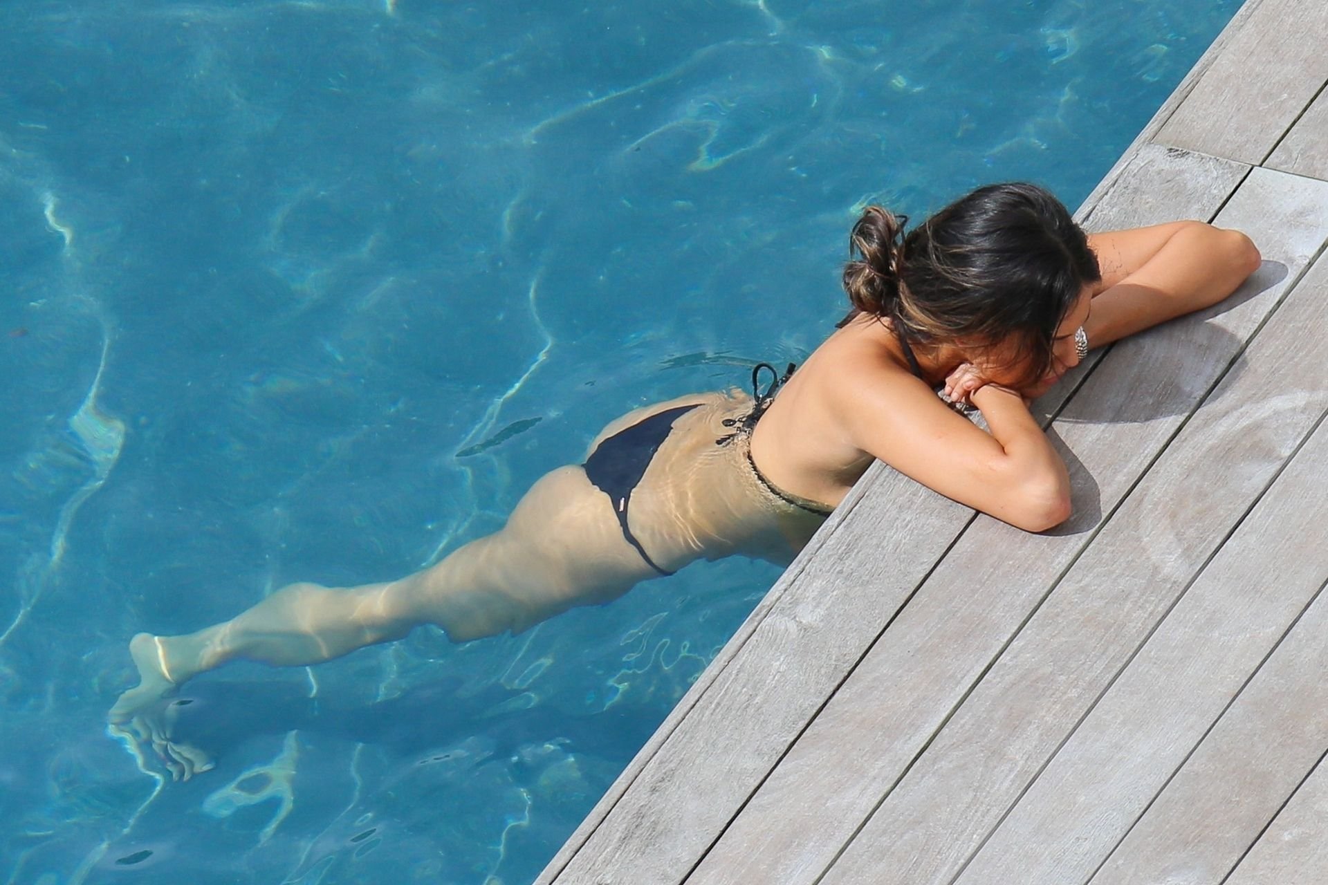 Мексиканская актриса Эйза Гонсалес наслаждается отдыхом у бассейна в Гонолулу, 12/08/2018.