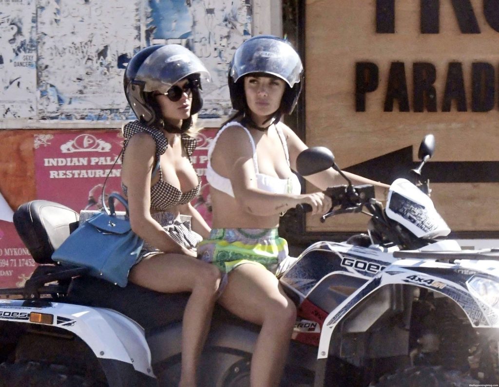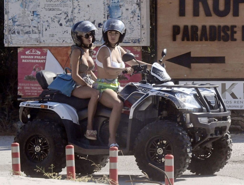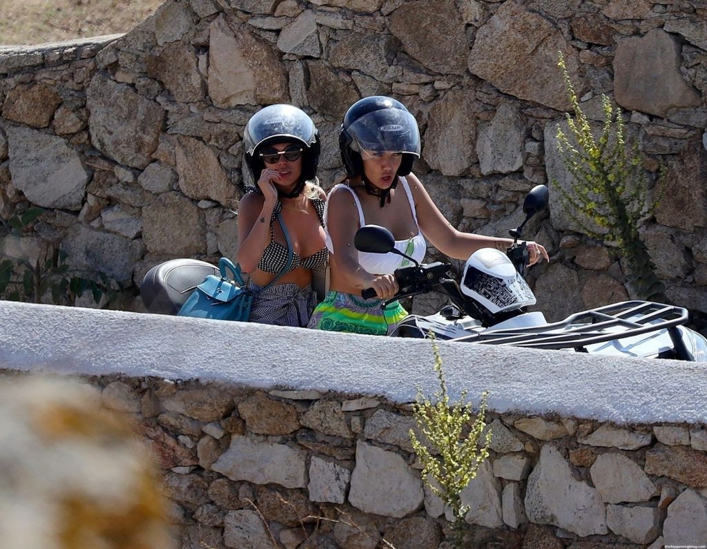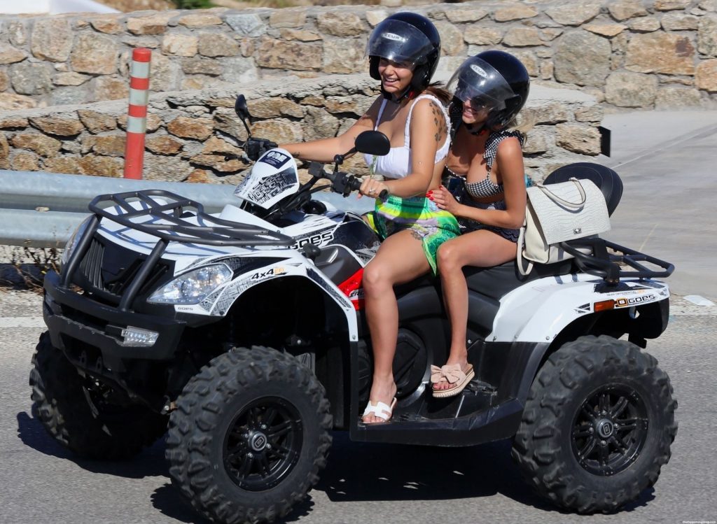 Итальянская певица Элеттра Ламборгини показывает небольшой фрагмент своей подгруди, наслаждаясь временем за управлением квадроцикла вместе с подругой Лудовикой Пагани на Миконосе, 15.06.2021.