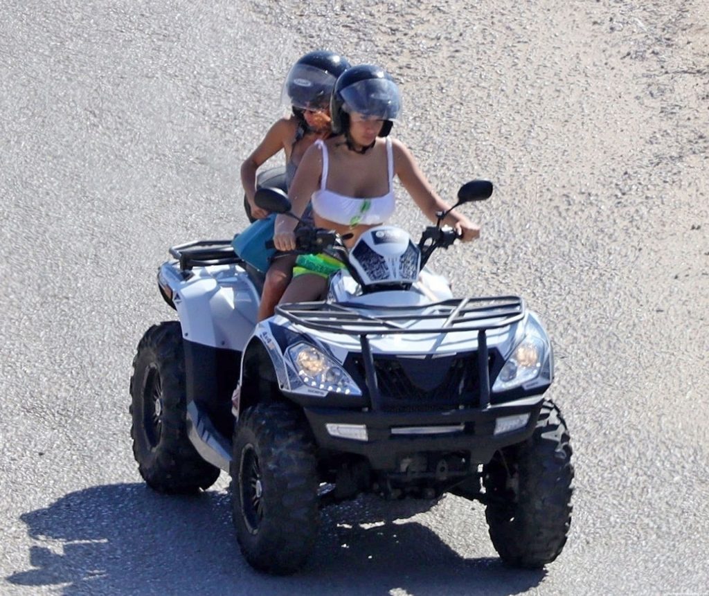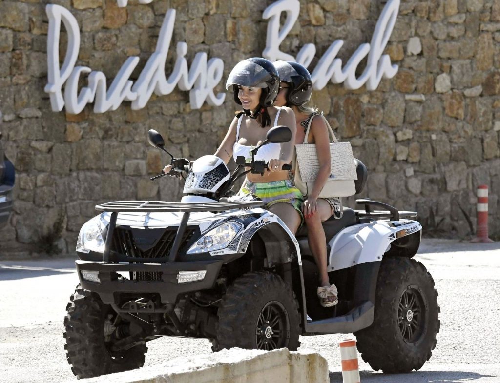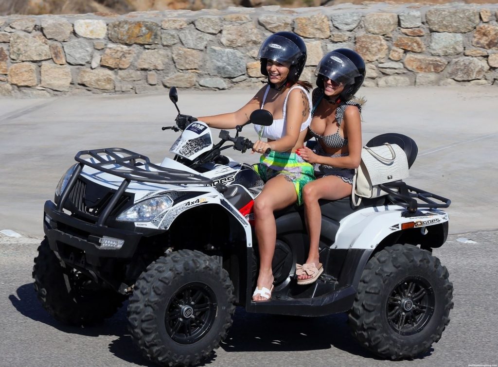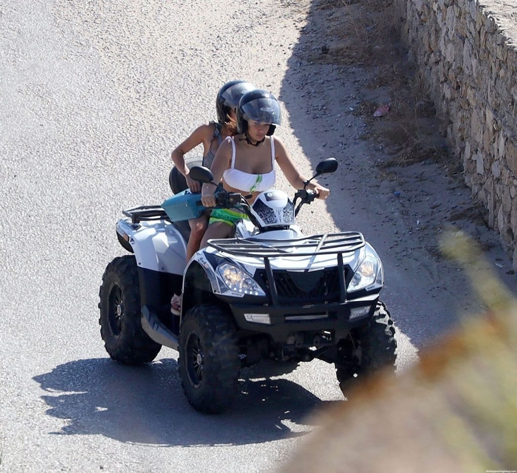 Итальянская певица Элеттра Ламборгини показывает небольшой фрагмент своей подгруди, наслаждаясь временем за управлением квадроцикла вместе с подругой Лудовикой Пагани на Миконосе, 15.06.2021.