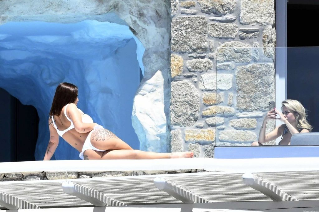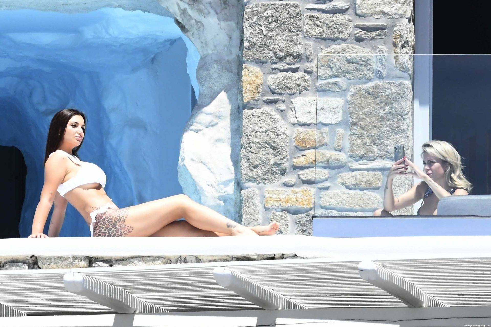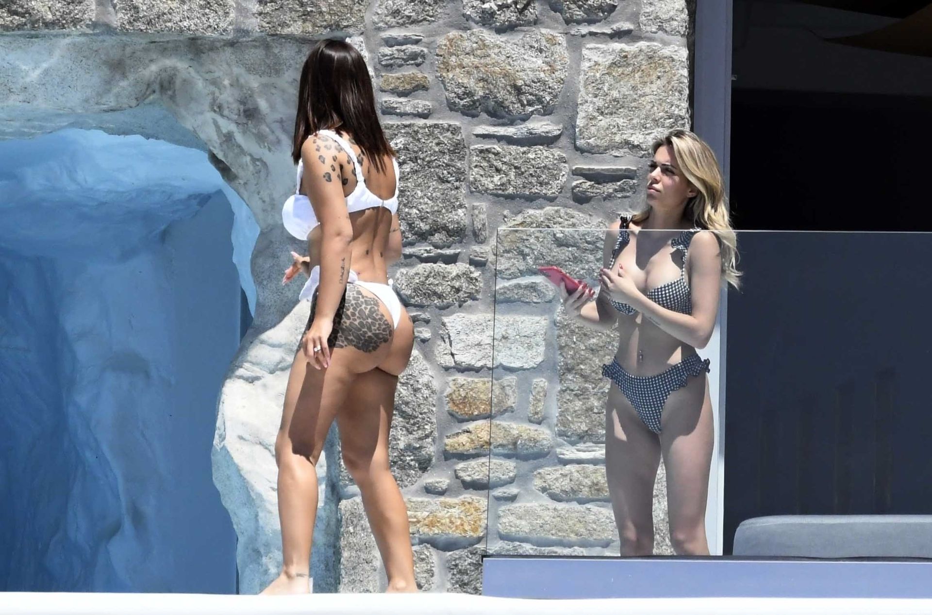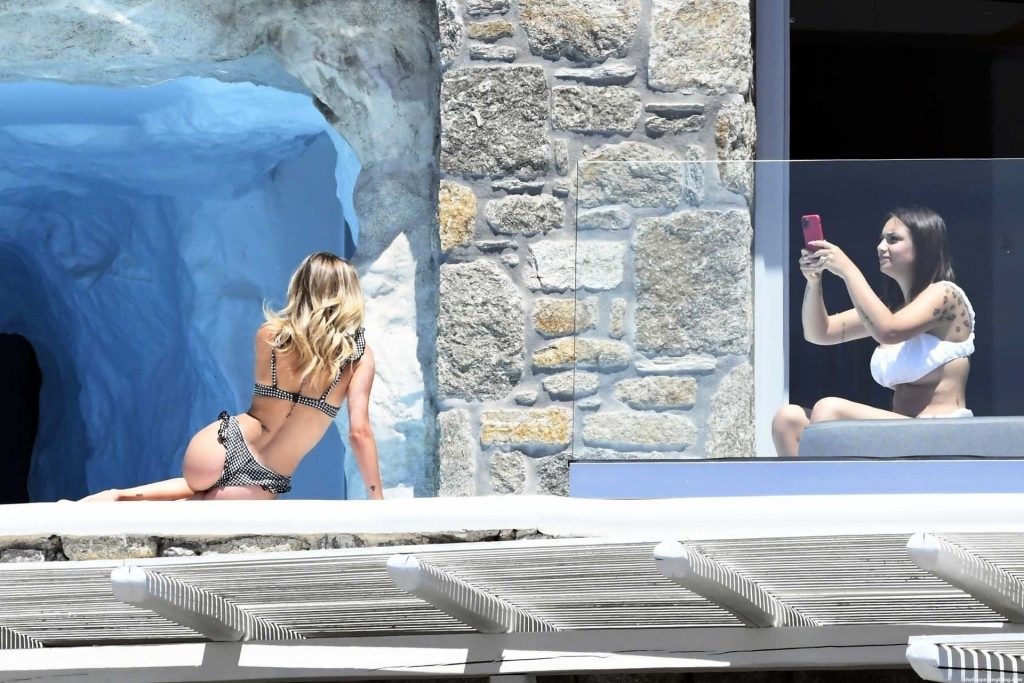 Жена диджея Afrojack, Элеттра Ламборгини, и её подруга Лудовика Пагани взяли несколько дней отдыха для женских каникул и устроили собственную фотосессию у бассейна под солнцем, 15.06.2021. Две соперничающие красавицы в сексуальных бикини разогревают лето на Миконосе.