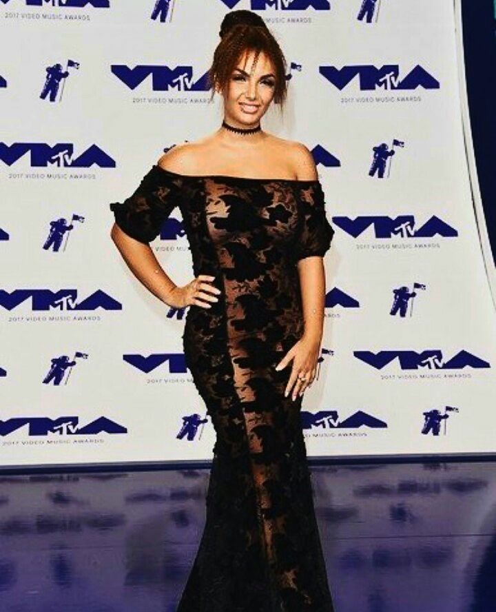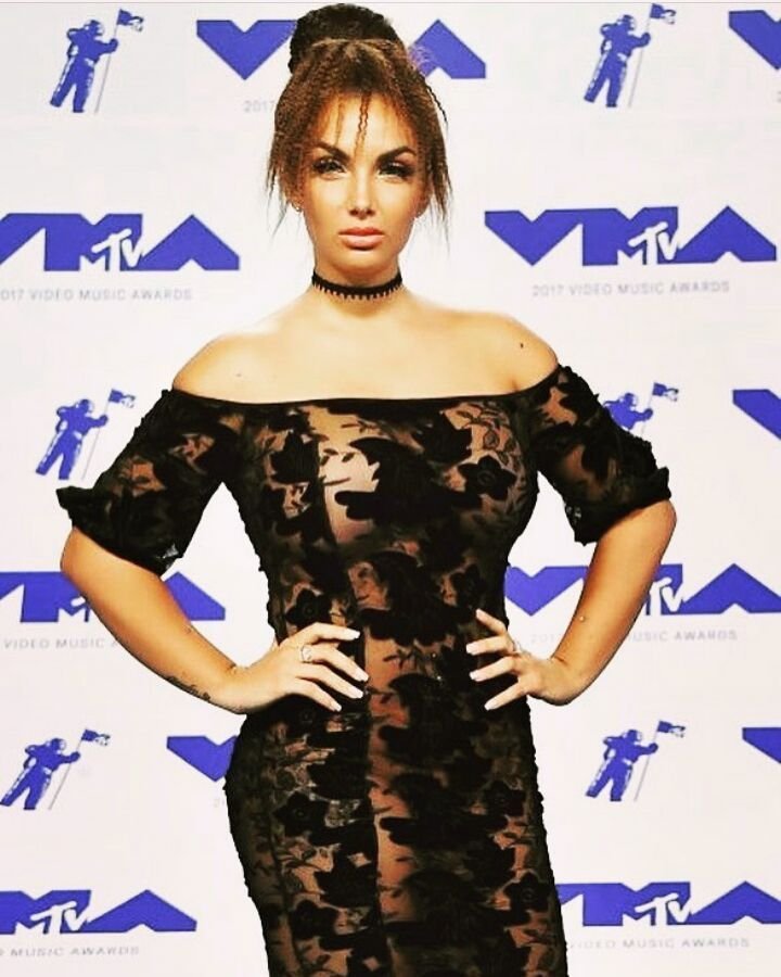 Пышногрудая Elettra Lamborghini носит прозрачное черное платье на церемонии MTV Video Music Awards в Лос-Анджелесе, 27.08.2017. Elettra Lamborghini — модель и звезда реалити-шоу (Super Shore) из Италии. Возраст: 23 года (17 мая 1994).