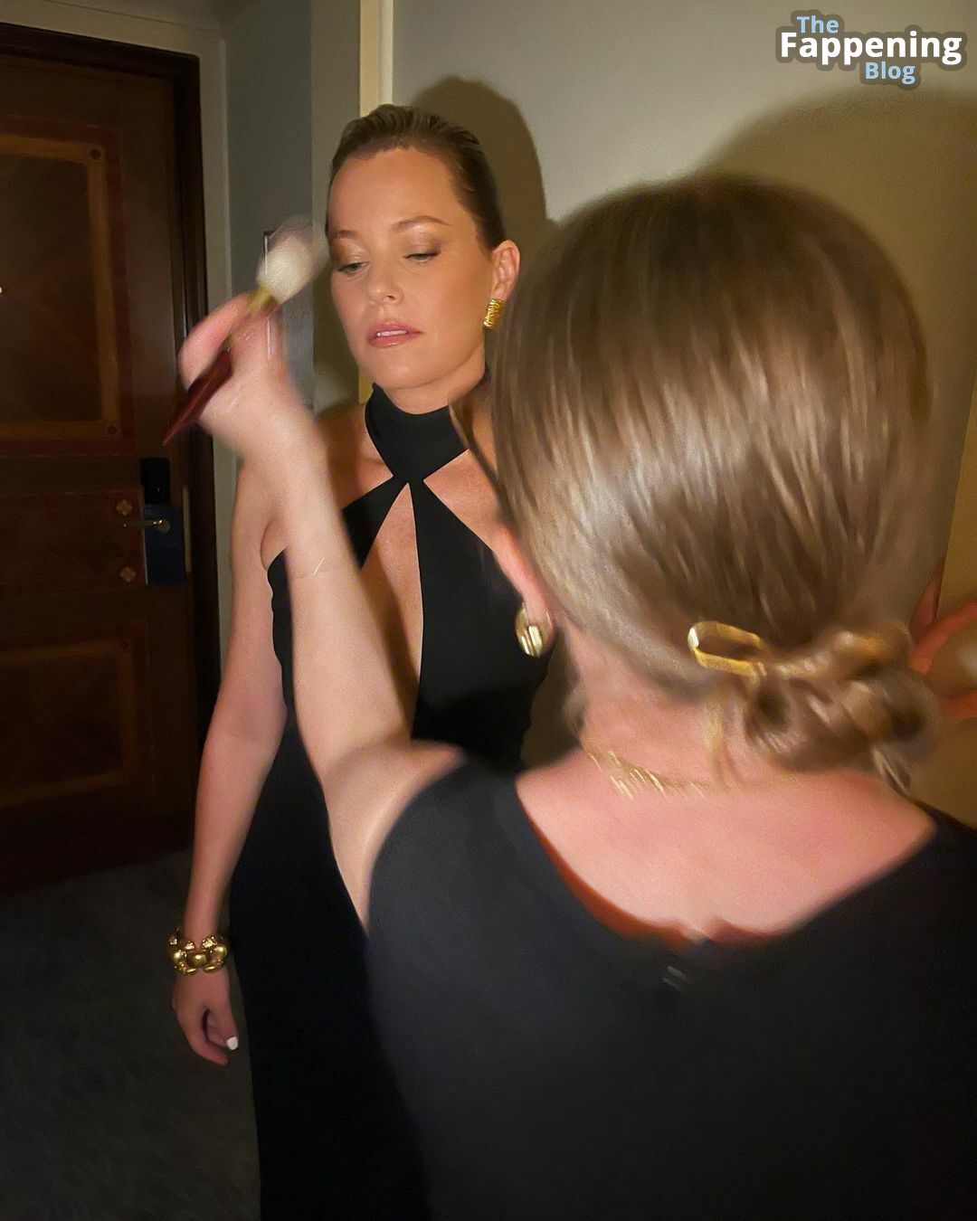 Элизабет Бэнкс дефилирует без бюстгальтера, демонстрируя потрясающее декольте в обворожительном черном платье с глубоким вырезом и показывая свои великолепные ноги после того, как она полностью подготовилась к показу Tom Ford Весна/Лето 2024 на Неделе моды в Милане.